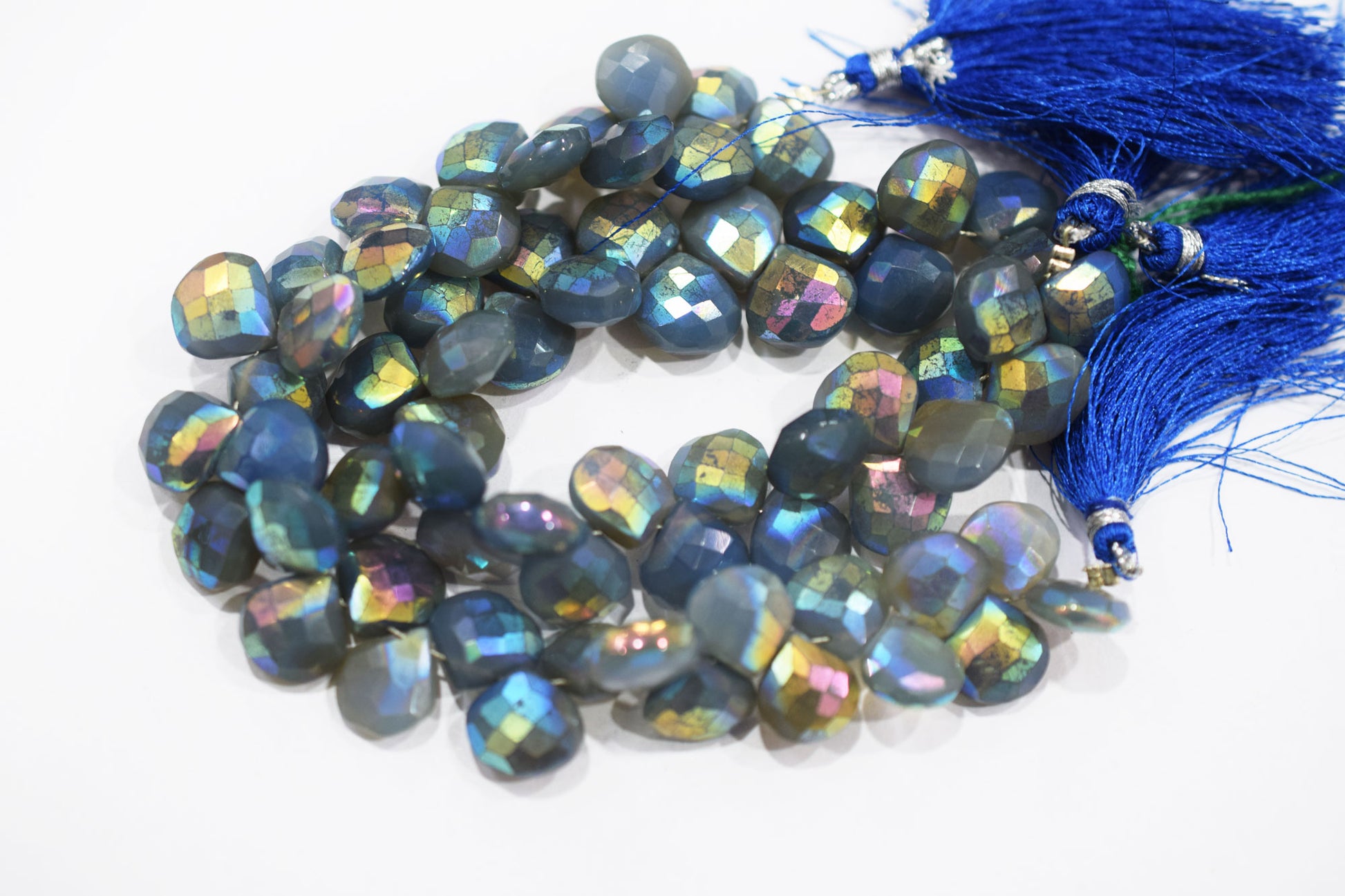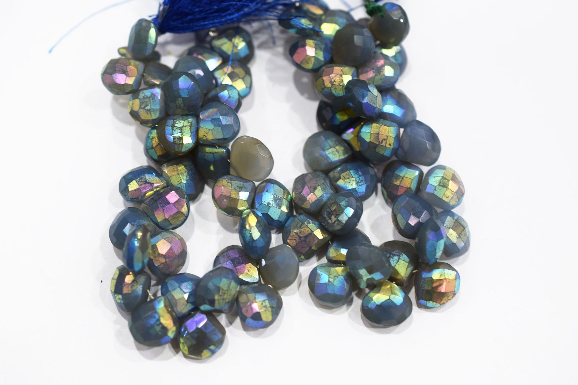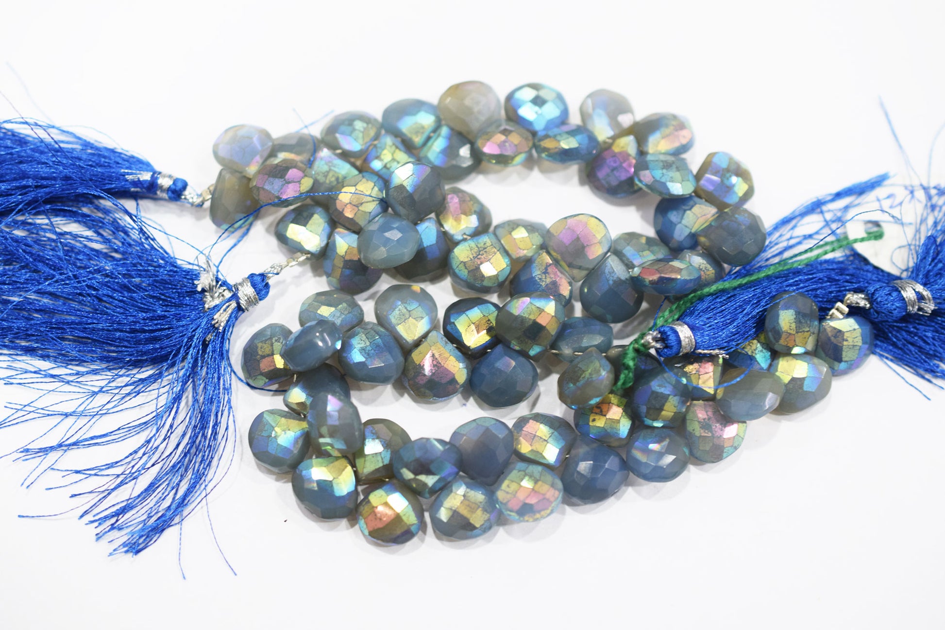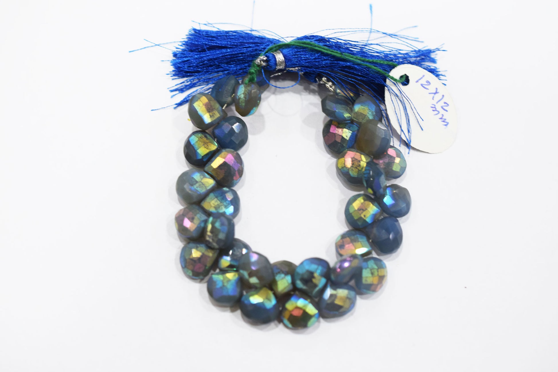 Mystic Metallic Coated Blue Chalcedony Heart Shape Beads , Blue Chalcedony Faceted Briolettes , Sold By Strand , 11.50 - 12 mm , 7" , 20390