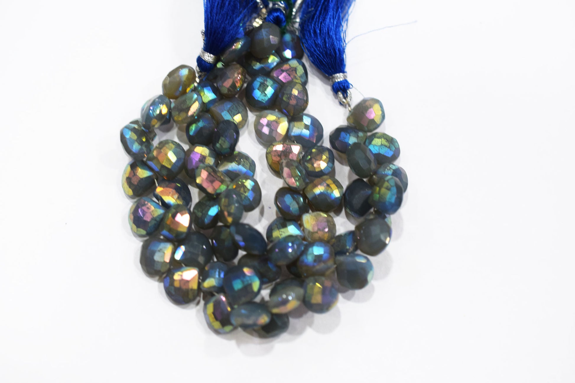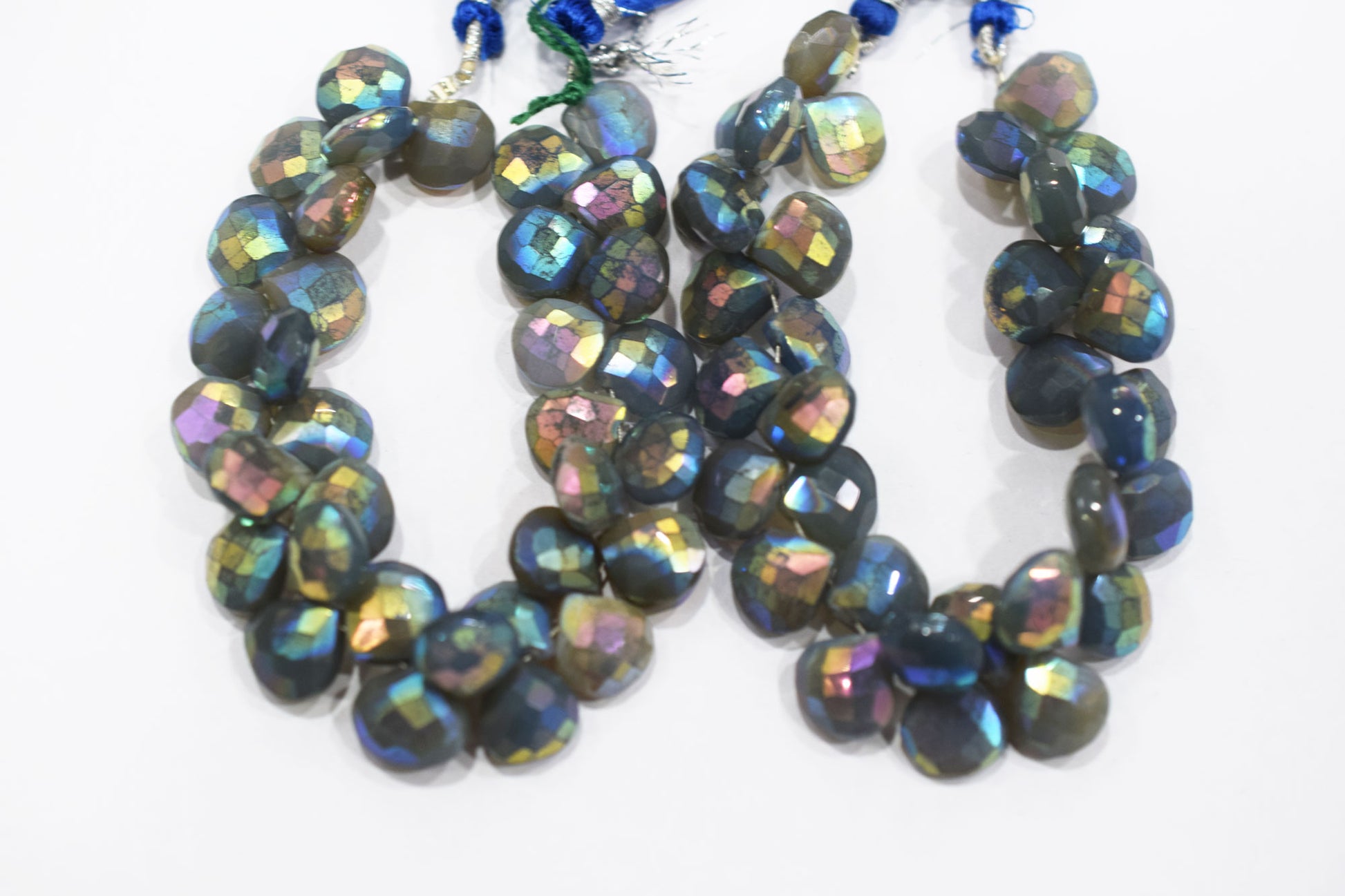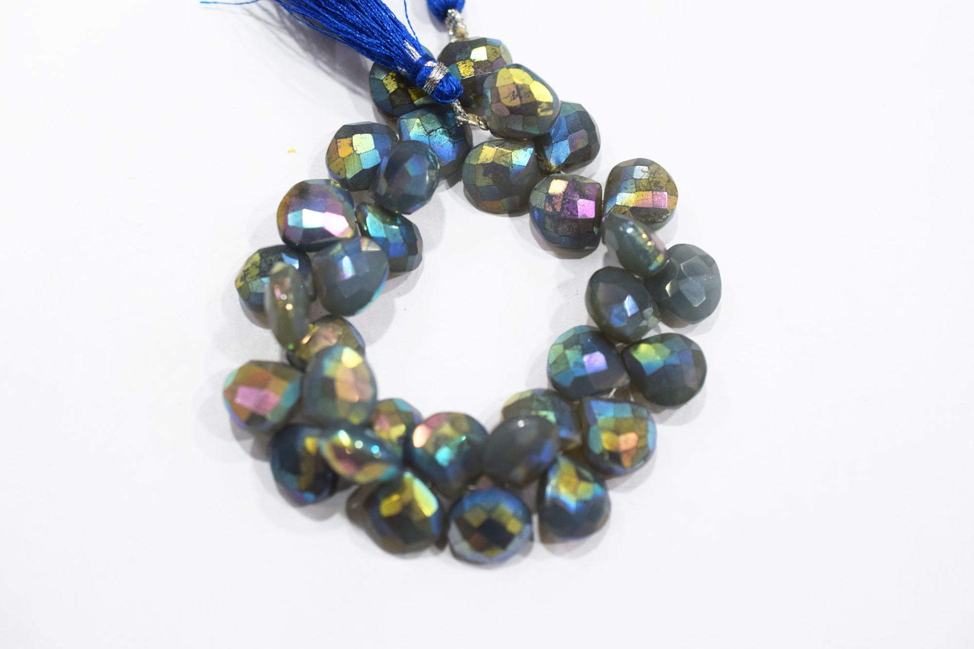 Mystic Metallic Coated Blue Chalcedony Heart Shape Beads , Blue Chalcedony Faceted Briolettes , Sold By Strand , 12 - 12.50 mm , 7" , 20391