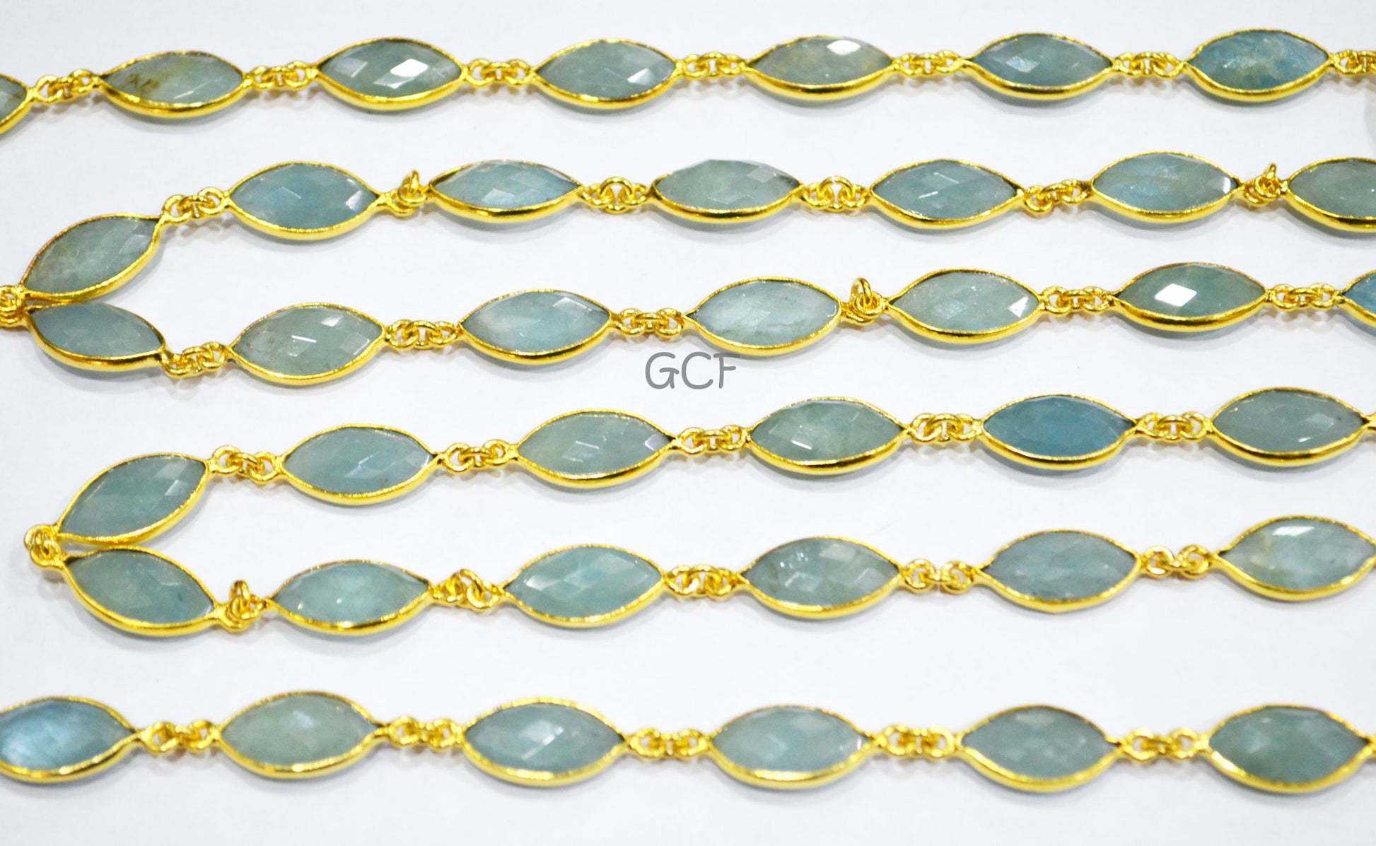 Milky Aquamarine Faceted Marquise Shape Connector Chain , Milky Aquamarine Marquise Shape Bezel Chain , 9x16 - 9x17 mm , 6885