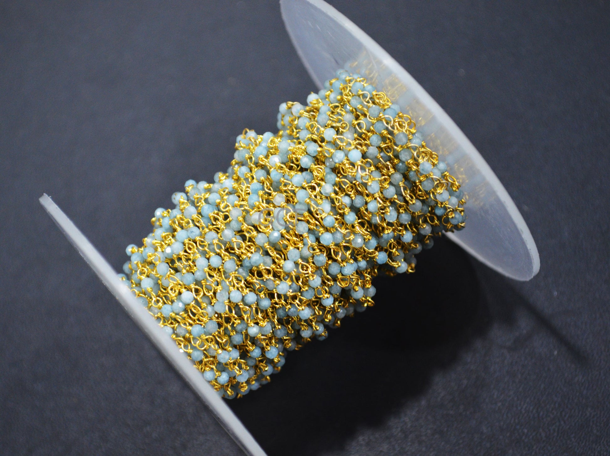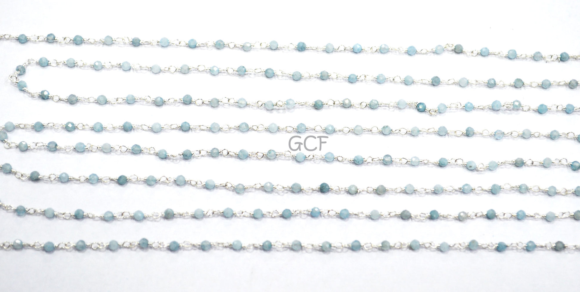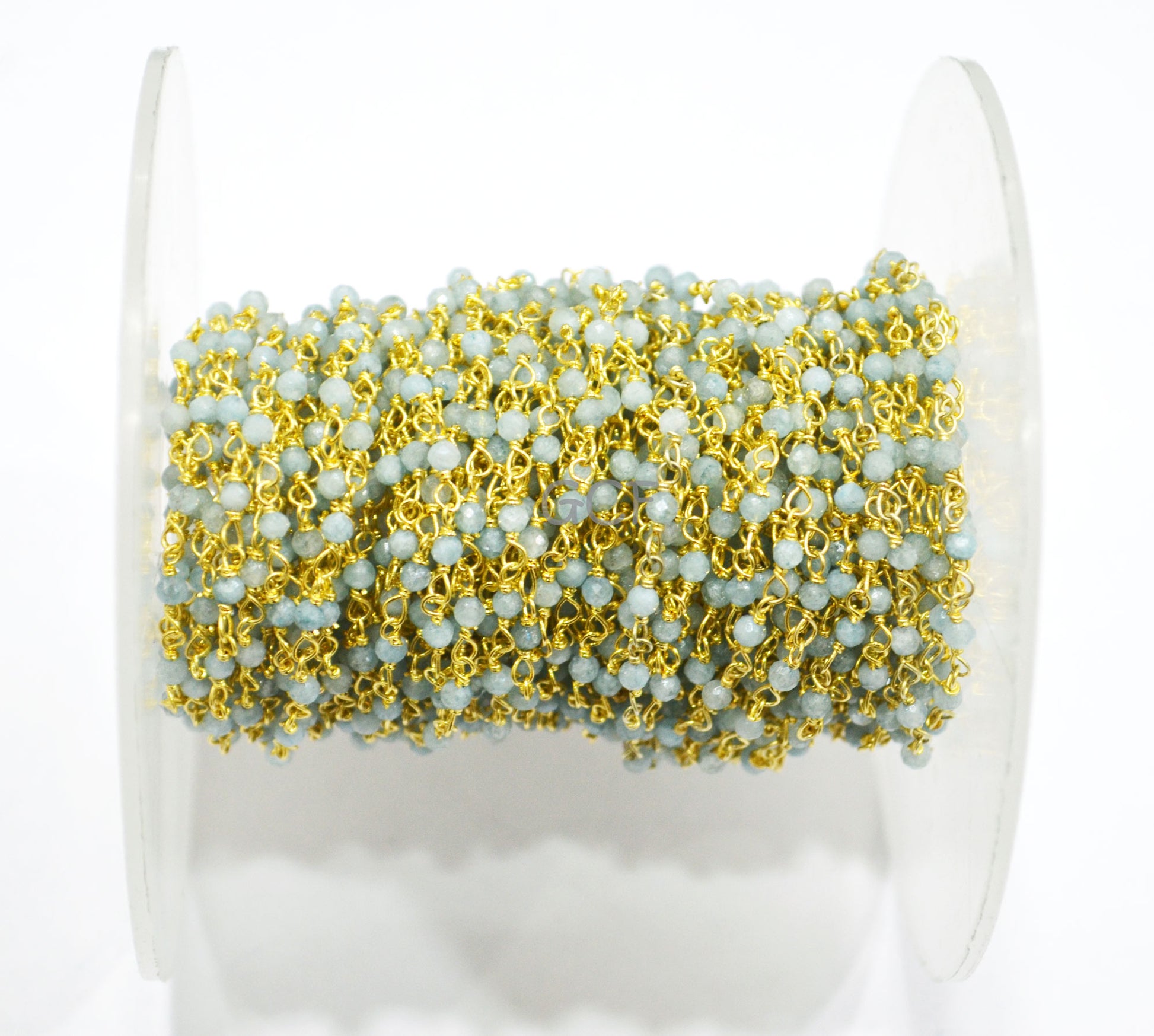 Milky Aquamarine Faceted Round Shape Rosary Beaded Chain , Milky Aquamarine Round Shape Wire Wrapped ChainΒ , 2 mm , RB-6989