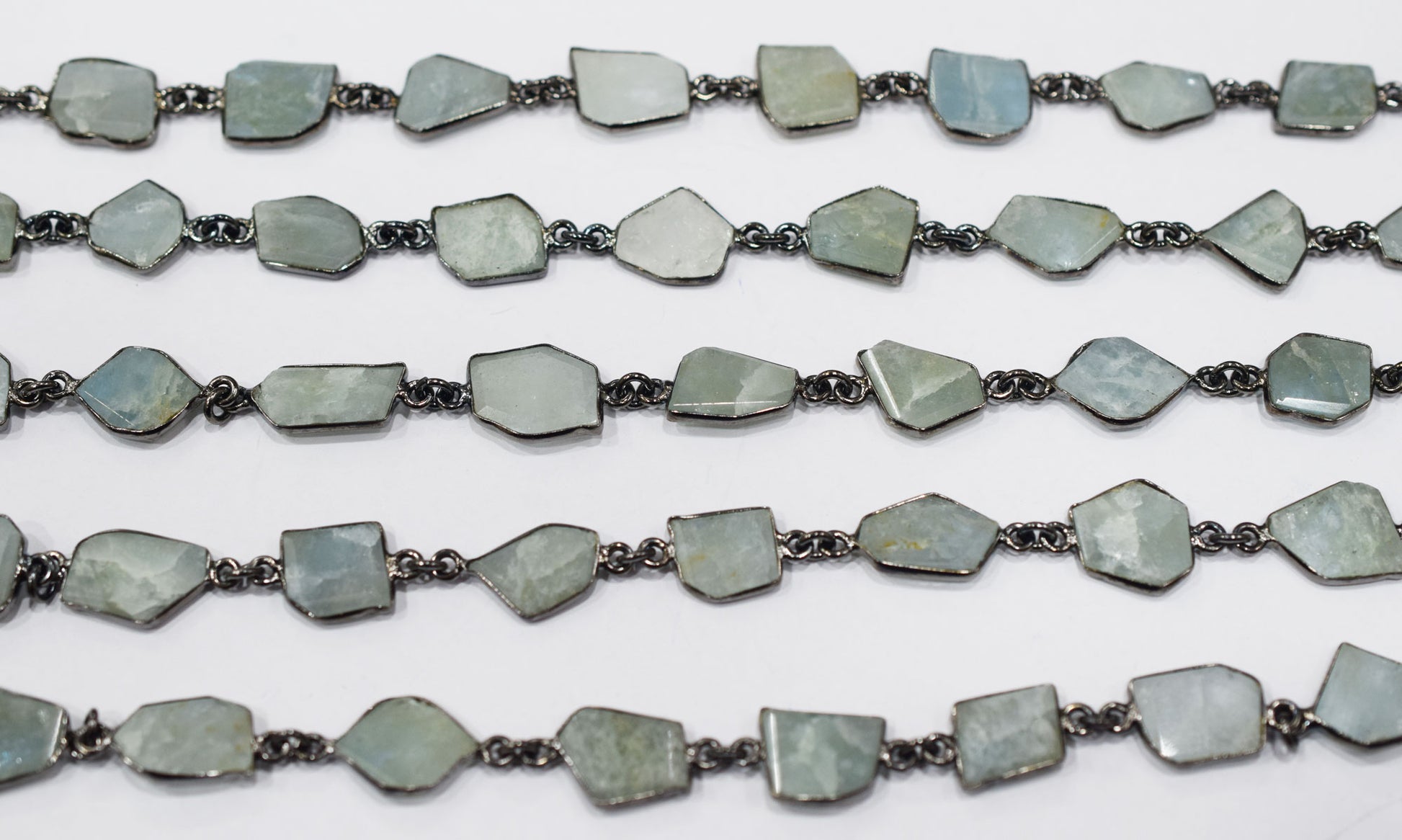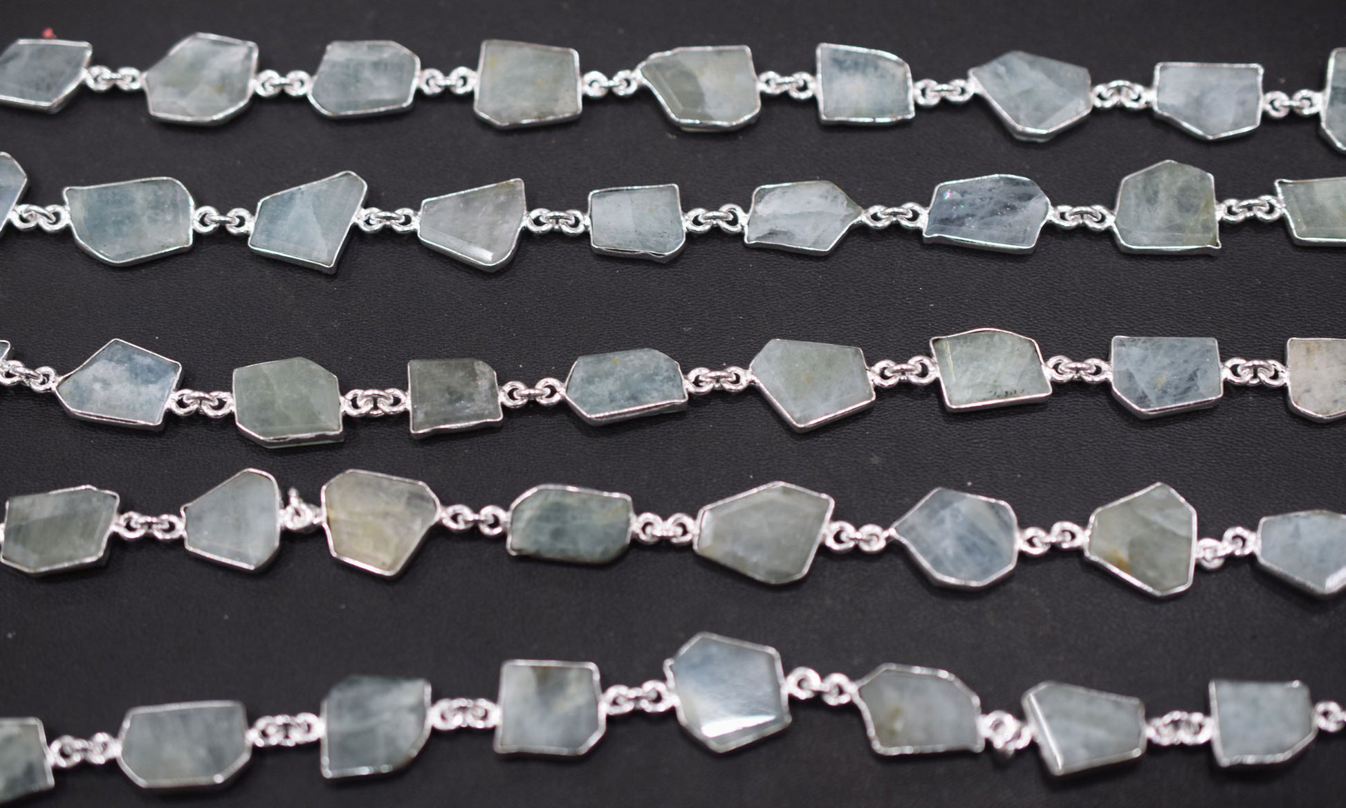 Milky Aquamarine Fancy Cut Shape Connector Chain , Milky Aquamarine Bezel Link ChainΒ , 8x14 - 11x14 mm , RB-6697