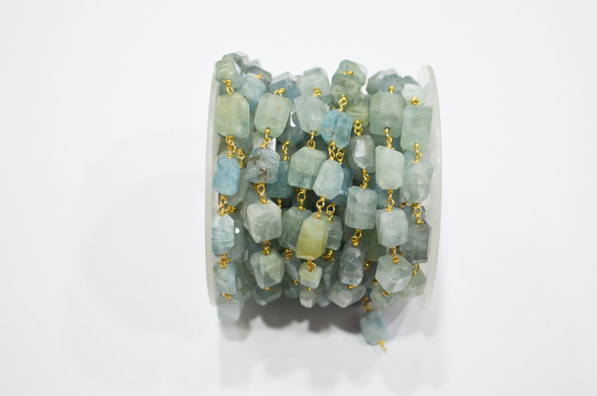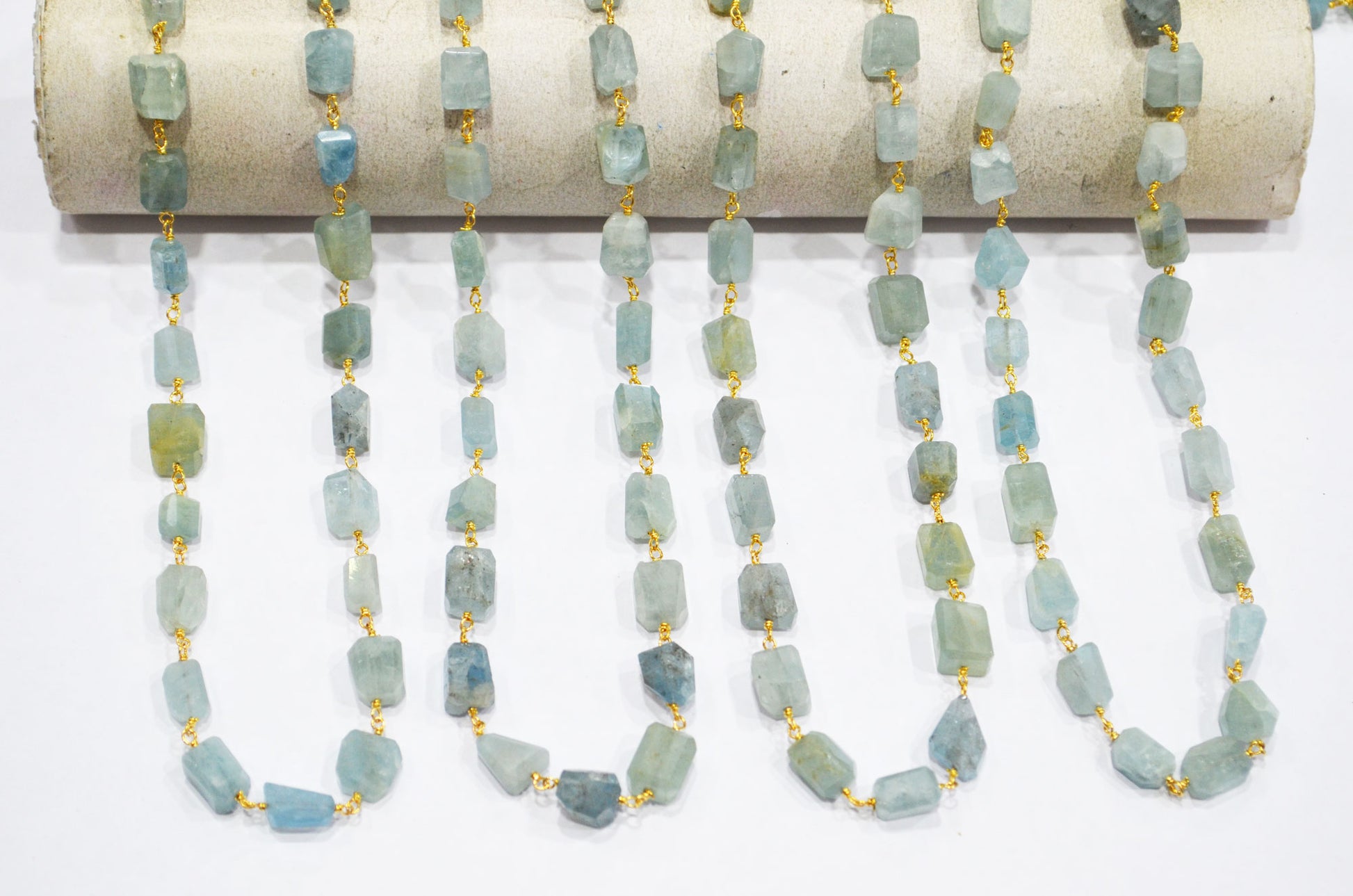 Milky Aquamarine Laser Cut Nuggets Shape Rosary Beaded Chain , Milky Aquamarine Wire Wrapped Chain , 9 - 12 mm , RB-7389