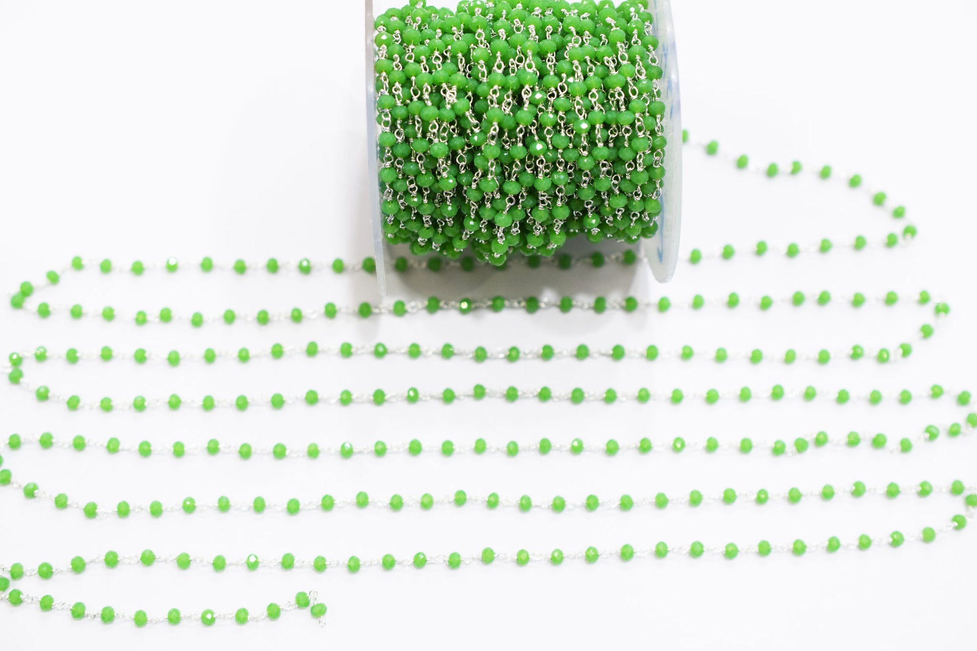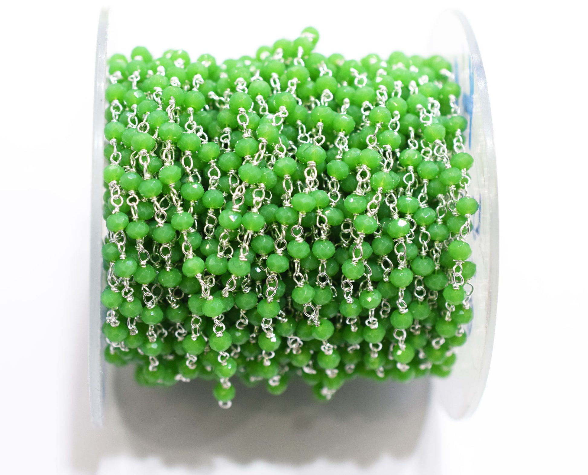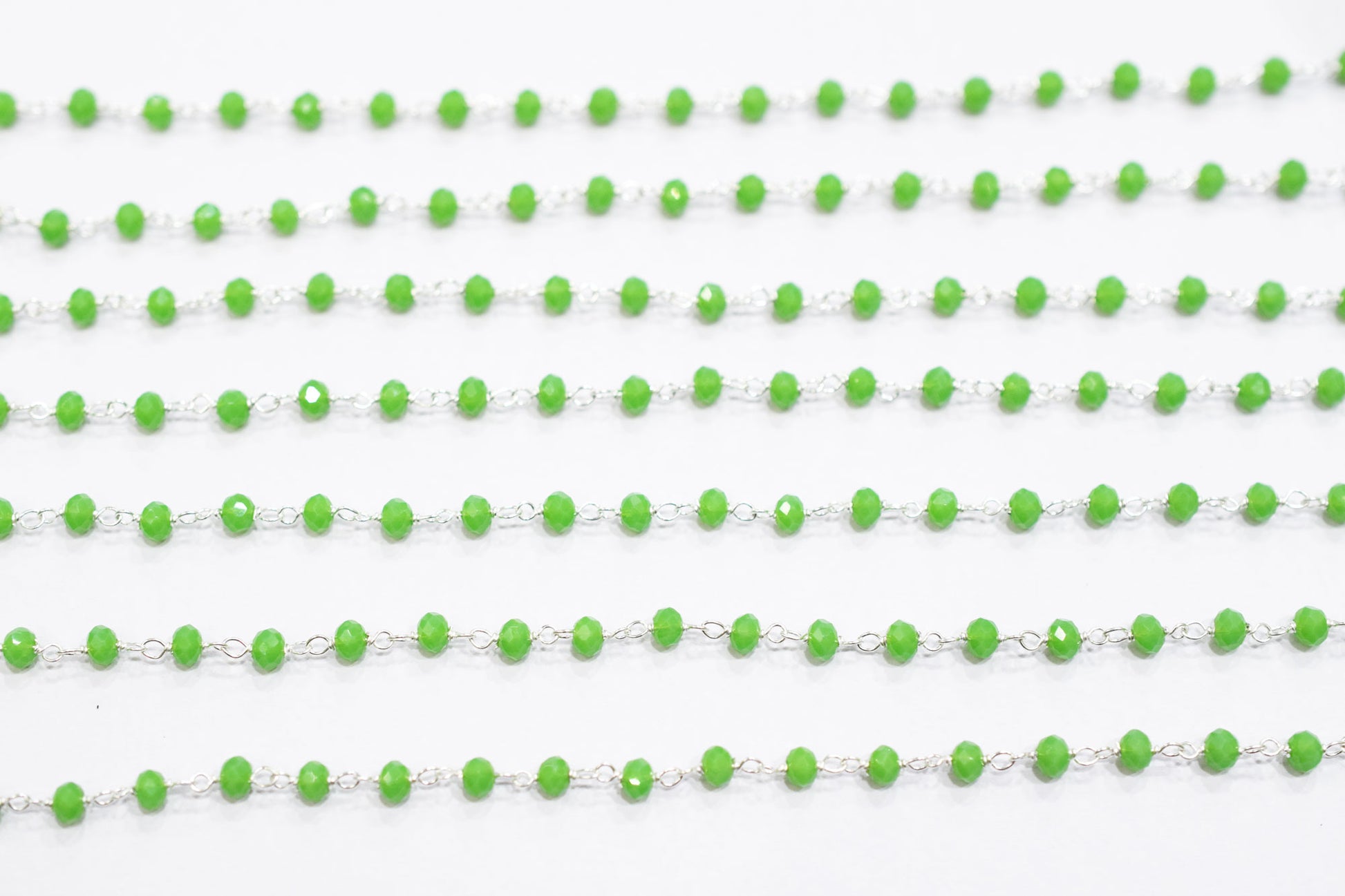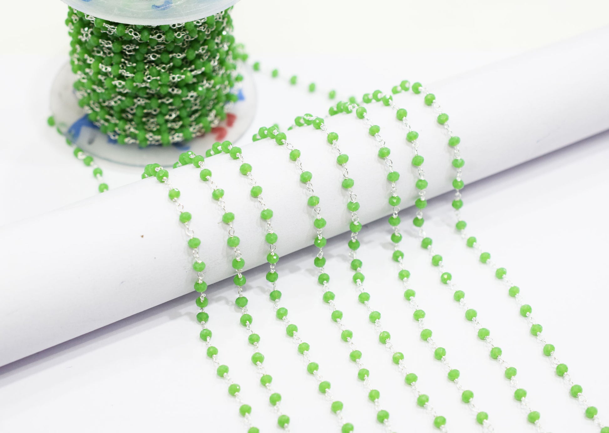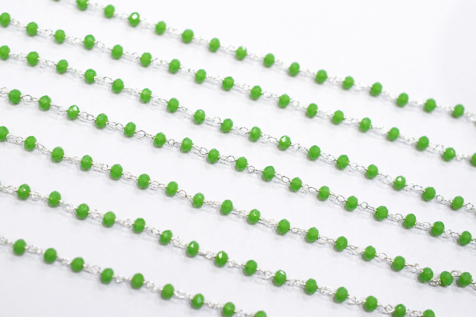 Mint Chrysoprase Hydro Quartz Faceted Rondelle Shape Rosary Beaded Chain , Mint Chrysoprase Hydro Quartz Wire Wrapped Chain , Sold By Foot , 3.50 - 4 mm , RB-6671