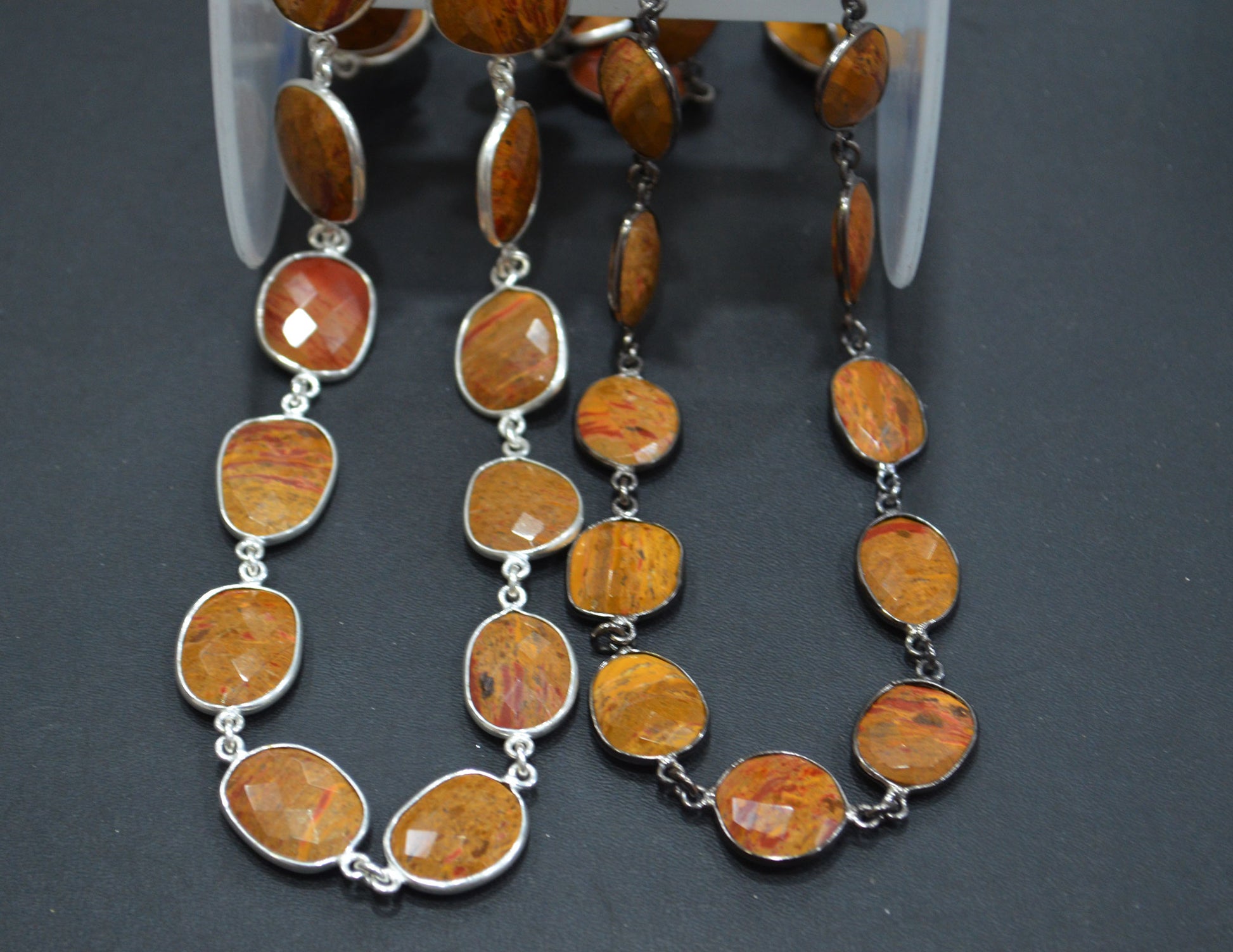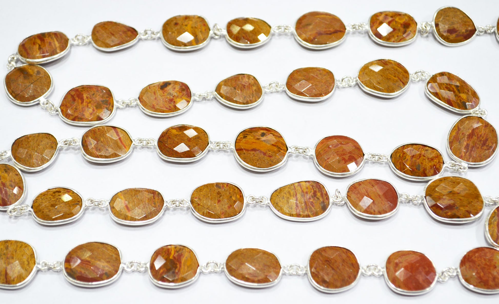 Mookaite Slice Shape Connector Chain , Mookaite Faceted Free Form Shape Bezel Link Chain , 15 - 19 mm , RB-6327