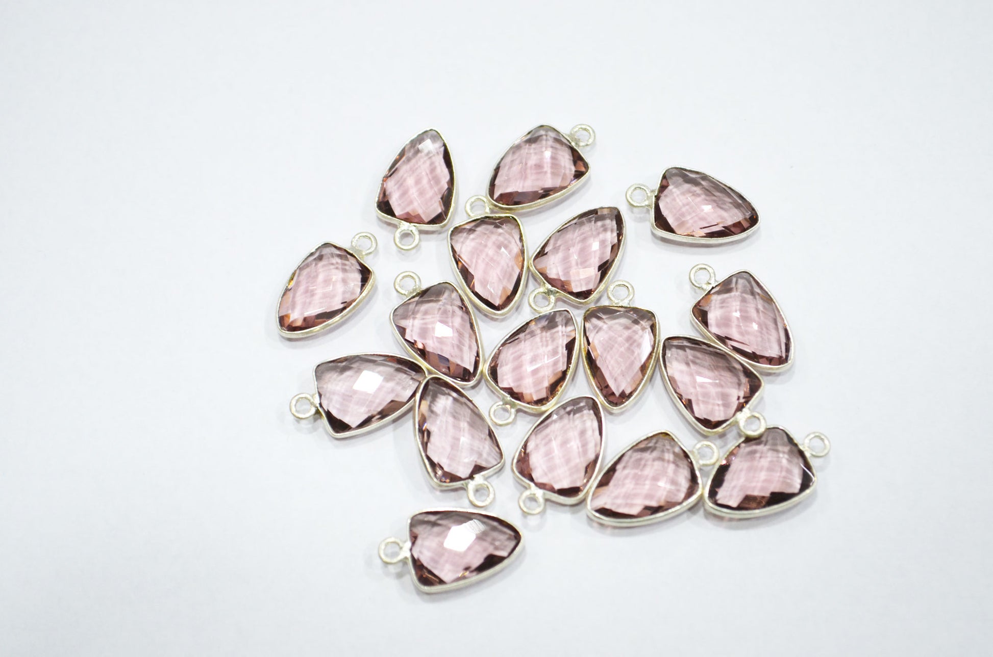 Morganite Hydro Quartz Trillion Shape Connector , Morganite Hydro Quartz Faceted Single Bail Bezel Connector , Sold By Piece , 10x13 mm , RB-5856A