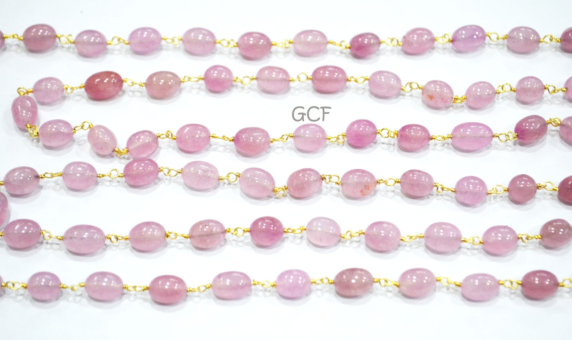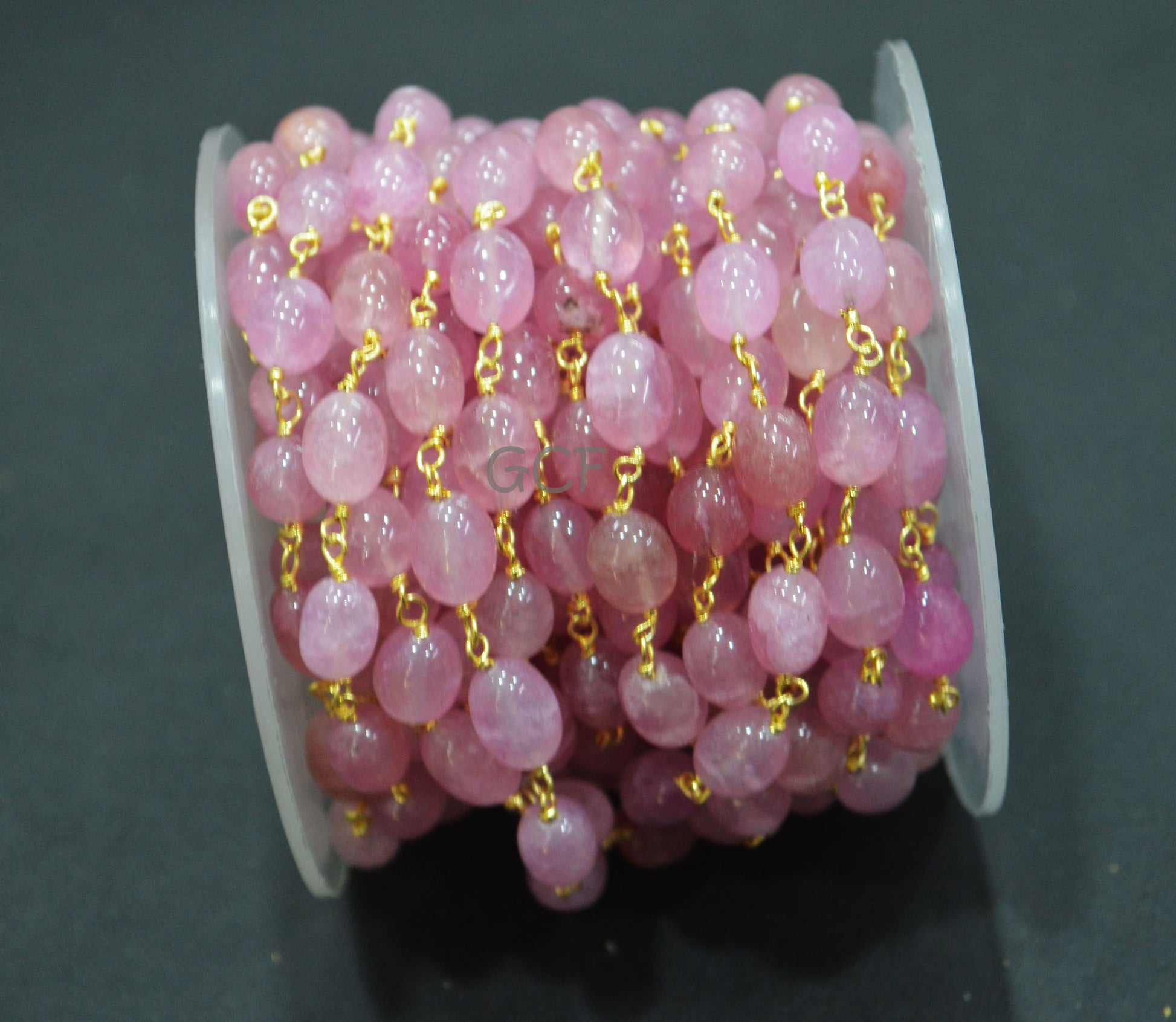 Morganite Smooth Oval Nuggets Rosary Beaded Chain , Morganite Wire Wrapped Chain , 7x8 - 7x12 mm , RB-6978