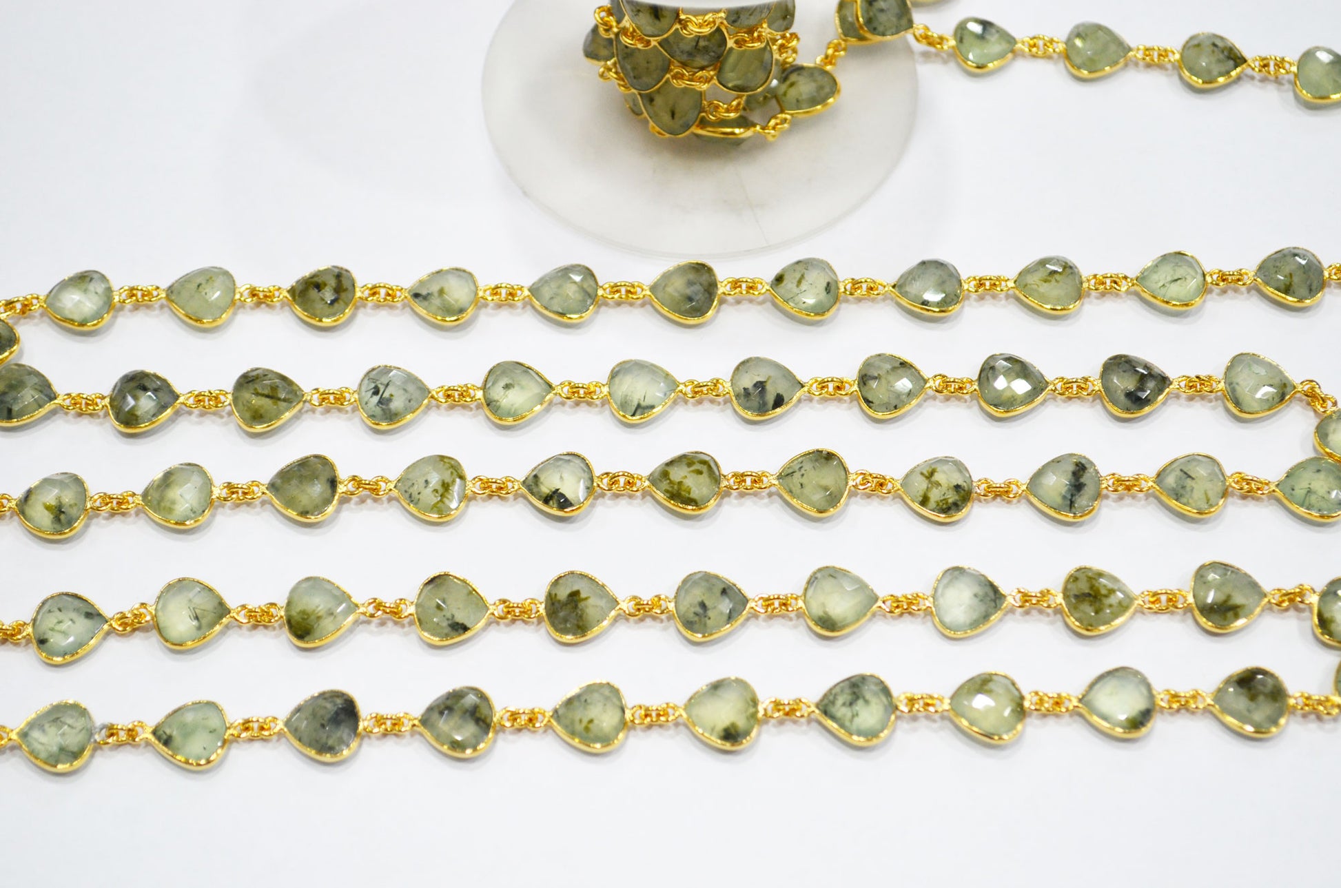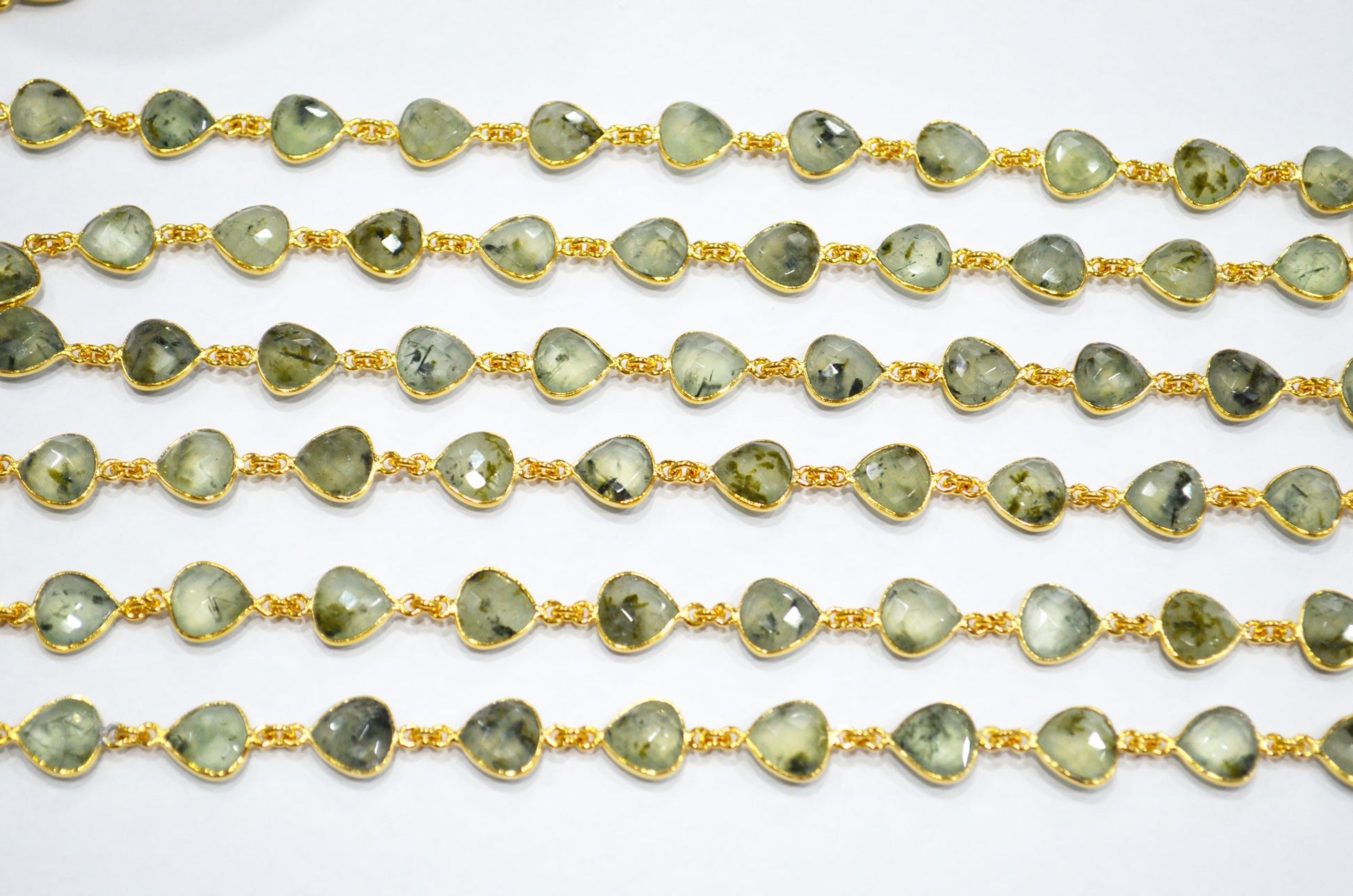 Moss Prehnite Heart Shape Connector Chain , Moss Prehnite Bezel Link Chain , 10 - 11 mm , RB-7382