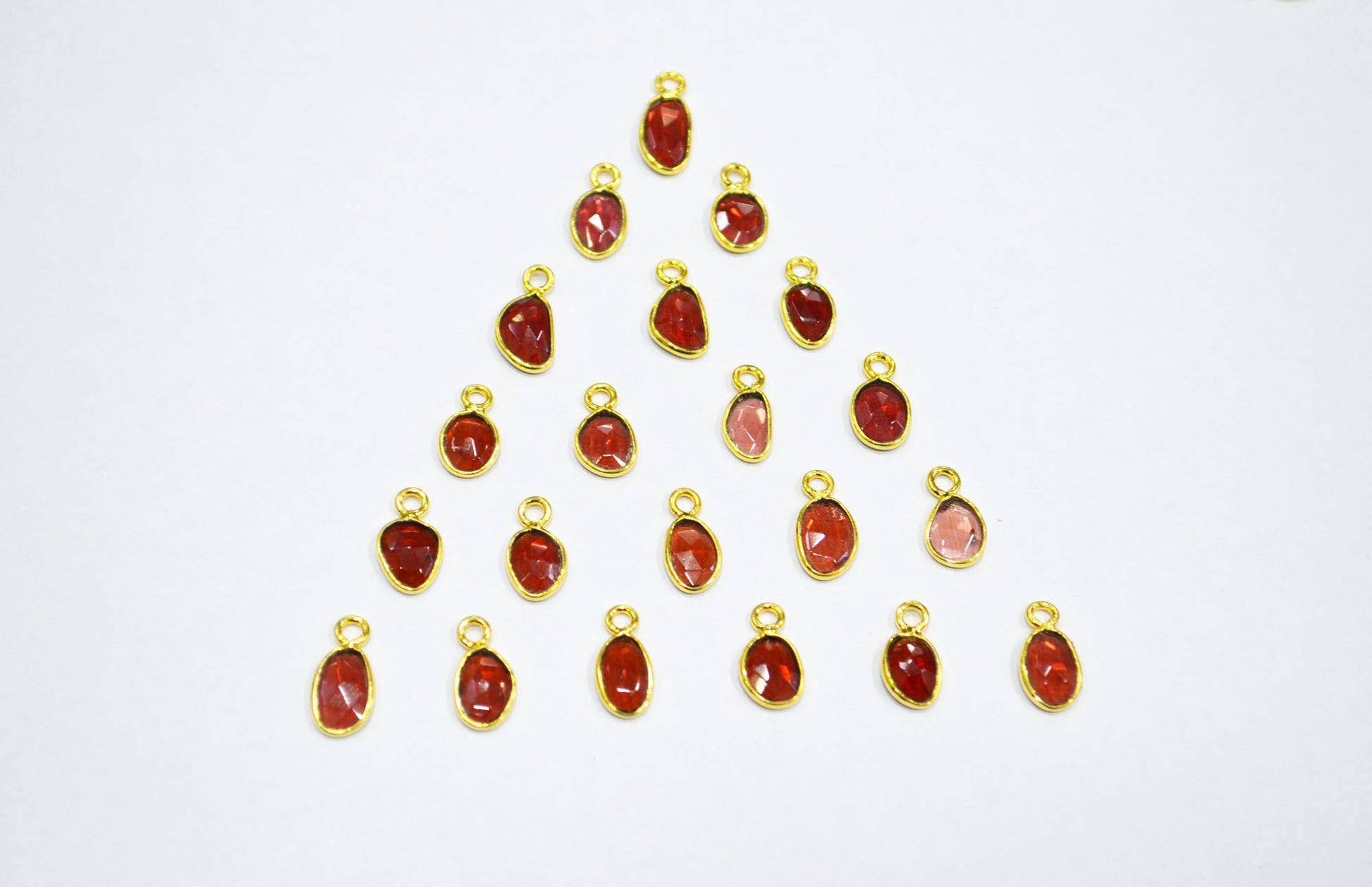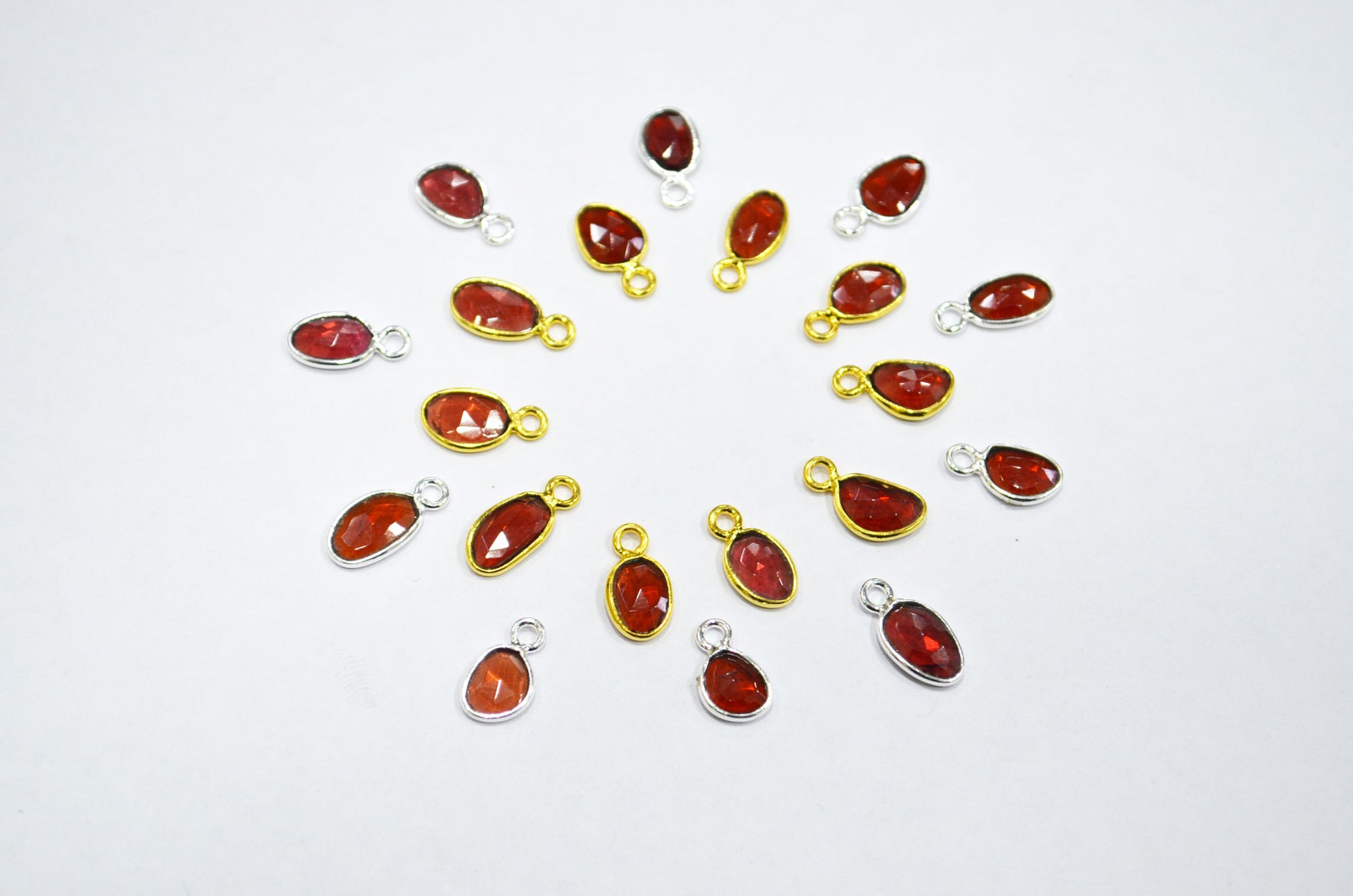 Mozambique Garnet Faceted Free Form Shape Connector , Mozambique Garnet Slice Shape Single Bail Bezel Connector , Sold By Piece , 6x8 - 7x9 mm , RB-7403
