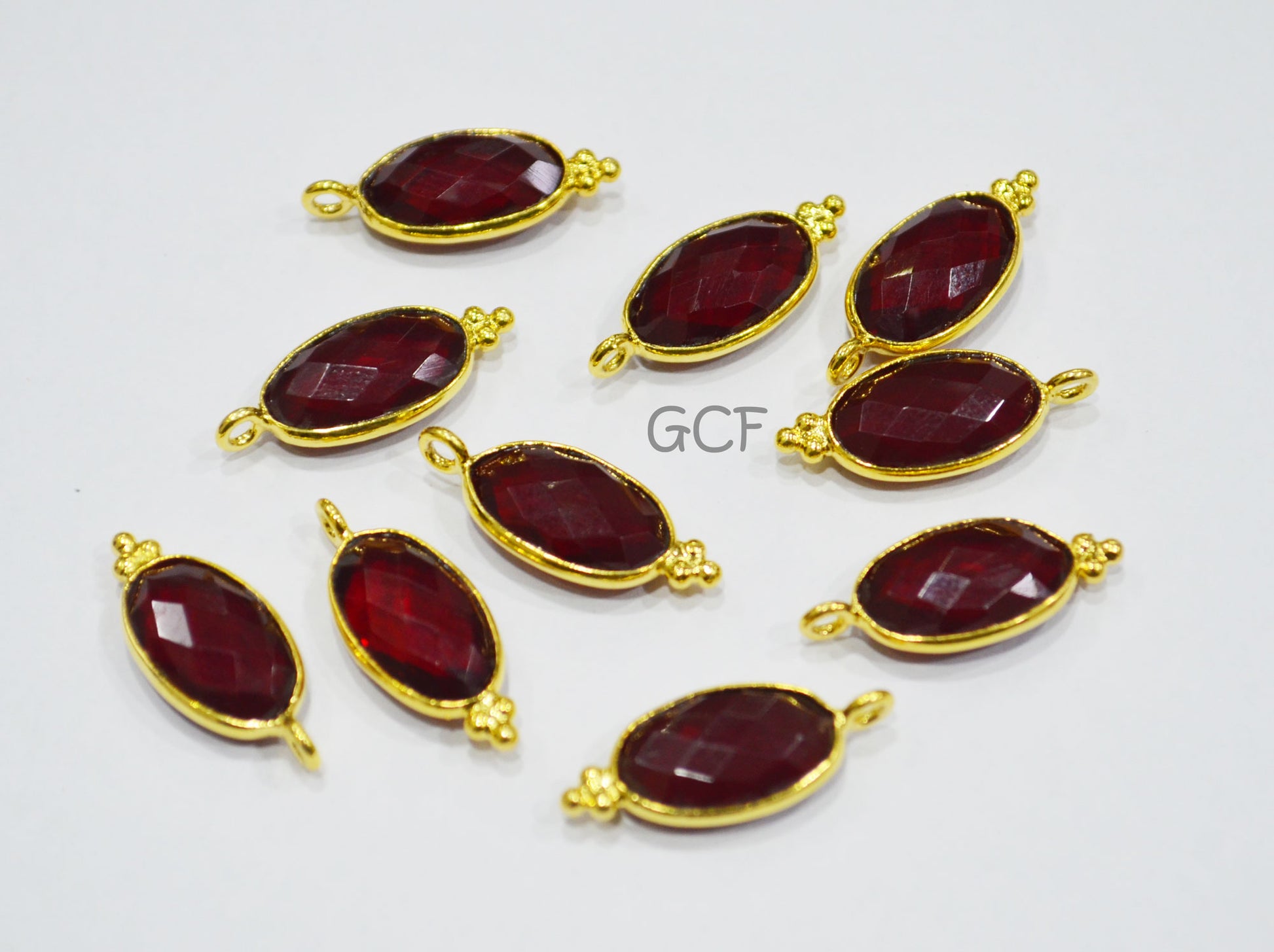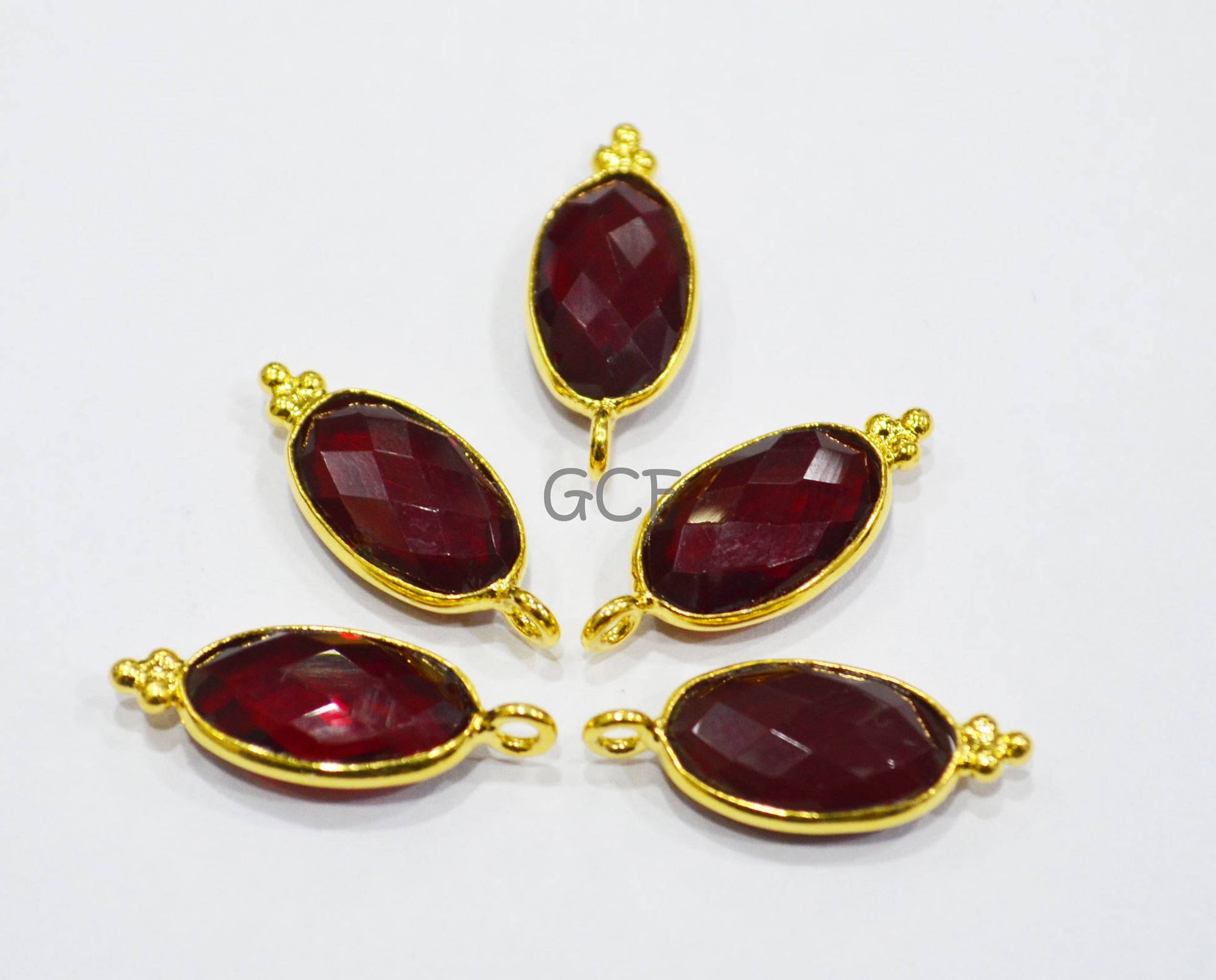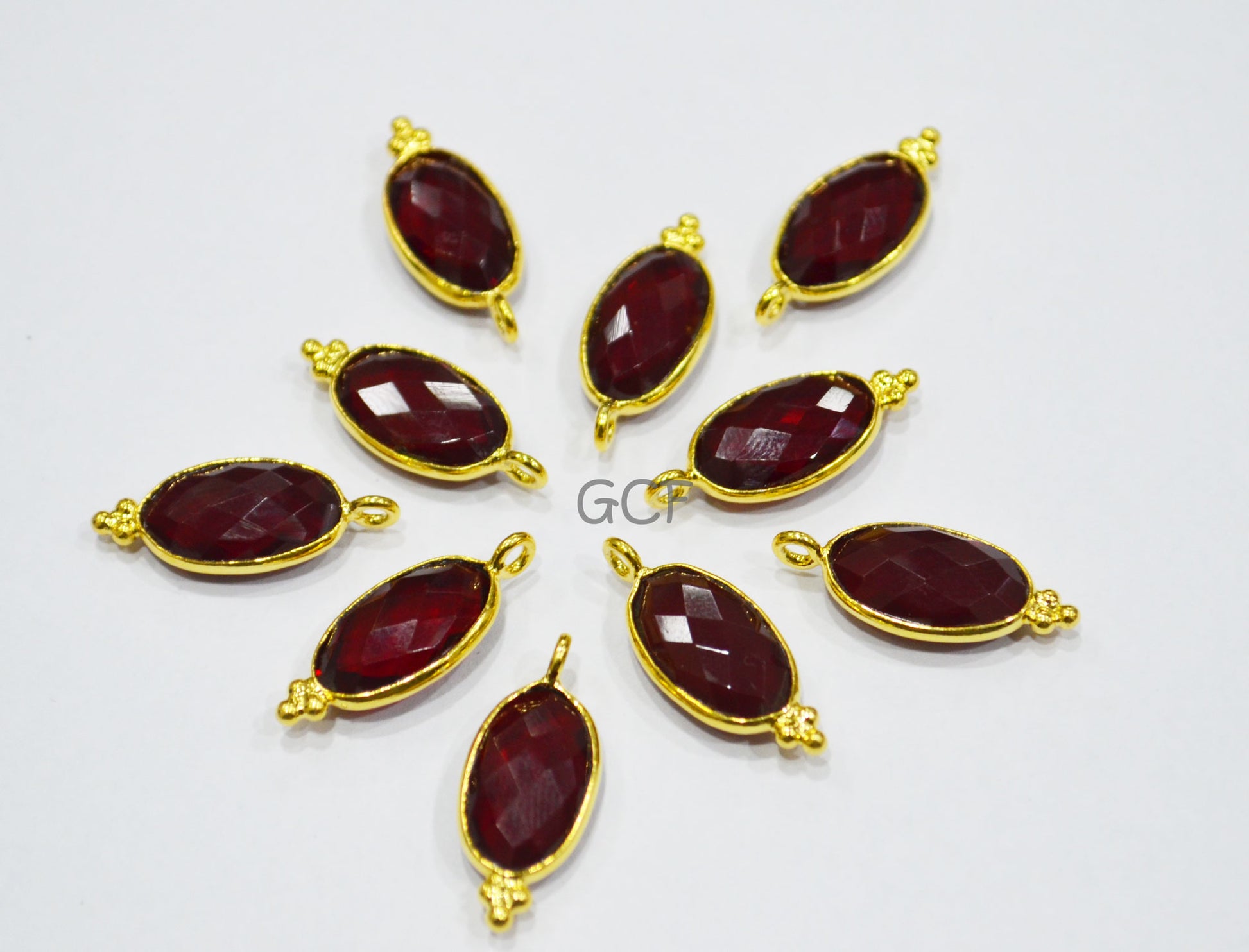 Mozambique Garnet Faceted Oval Shape Connector , Mozambique Garnet Single Bail Oval Shape Bezel Connector , Sold By Piece , 9x22 mm ,RB-7012