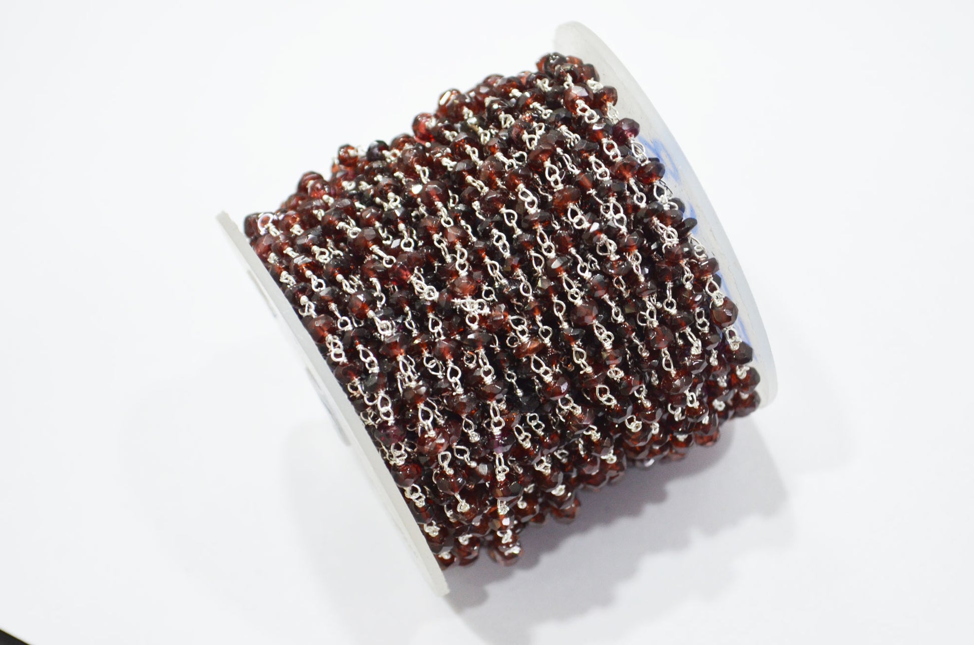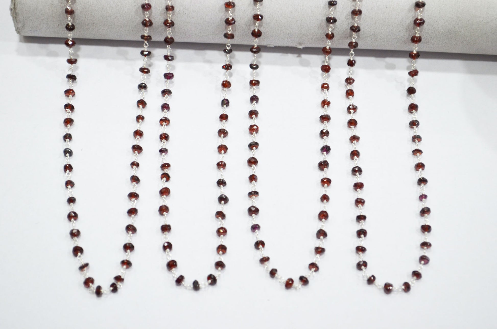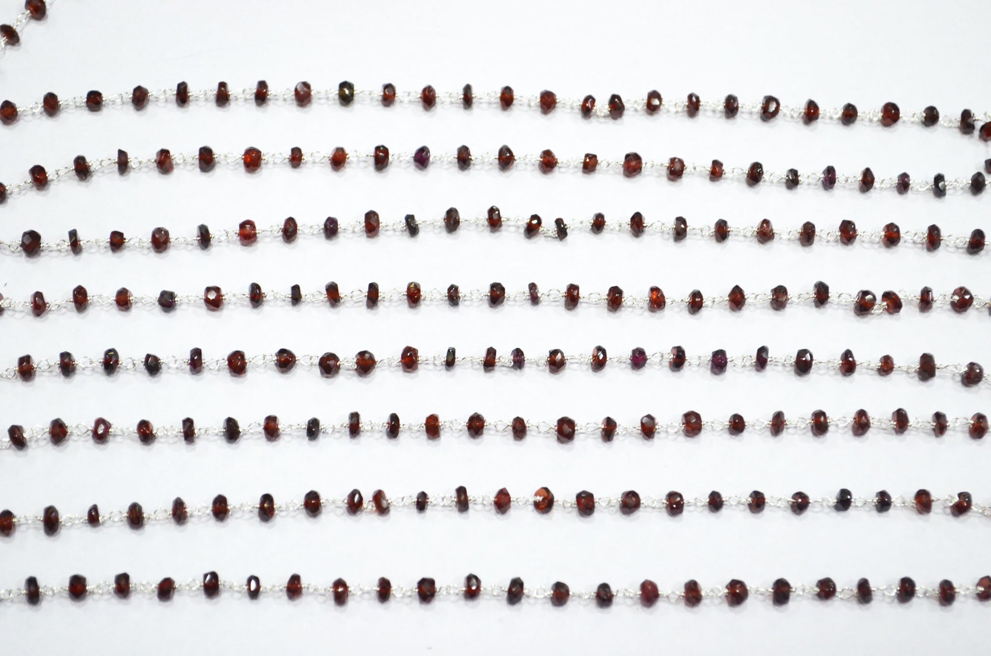 Mozambique Garnet Rondelle Shape Rosary Beaded Chain , Mozambique Garnet Faceted Wire Wrapped Chain , 3.50 - 4 mm , RB-5768
