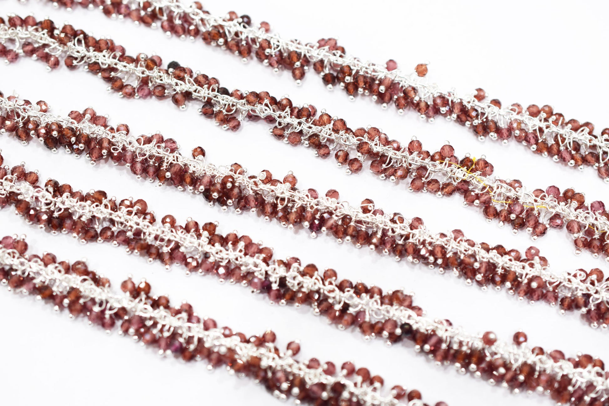 Mozambique Garnet Faceted Round Shape Grape Chain , Mozambique Garnet Angoori Cluster Wire Wrapped Chain , 3 mm , RB-6584