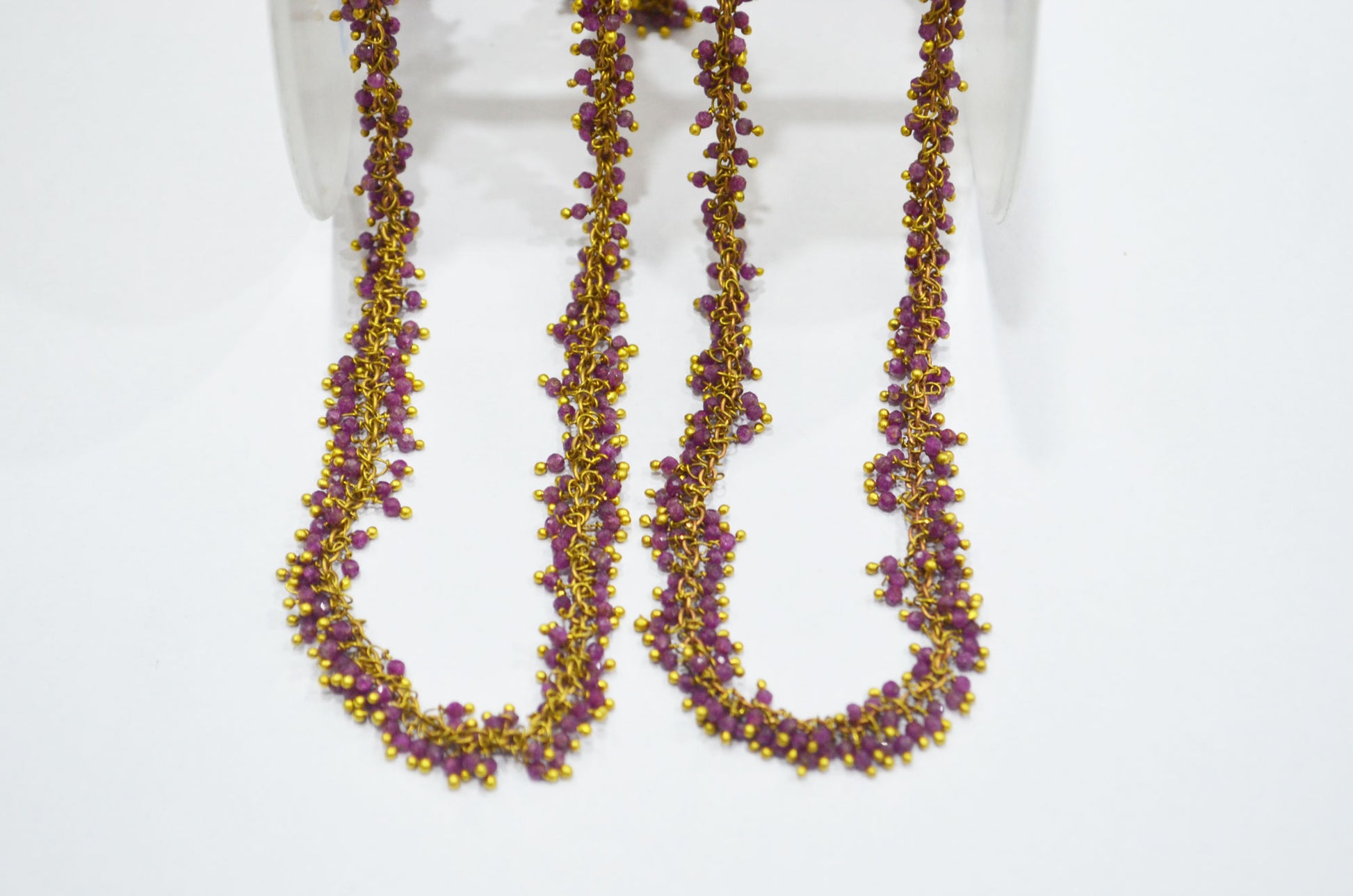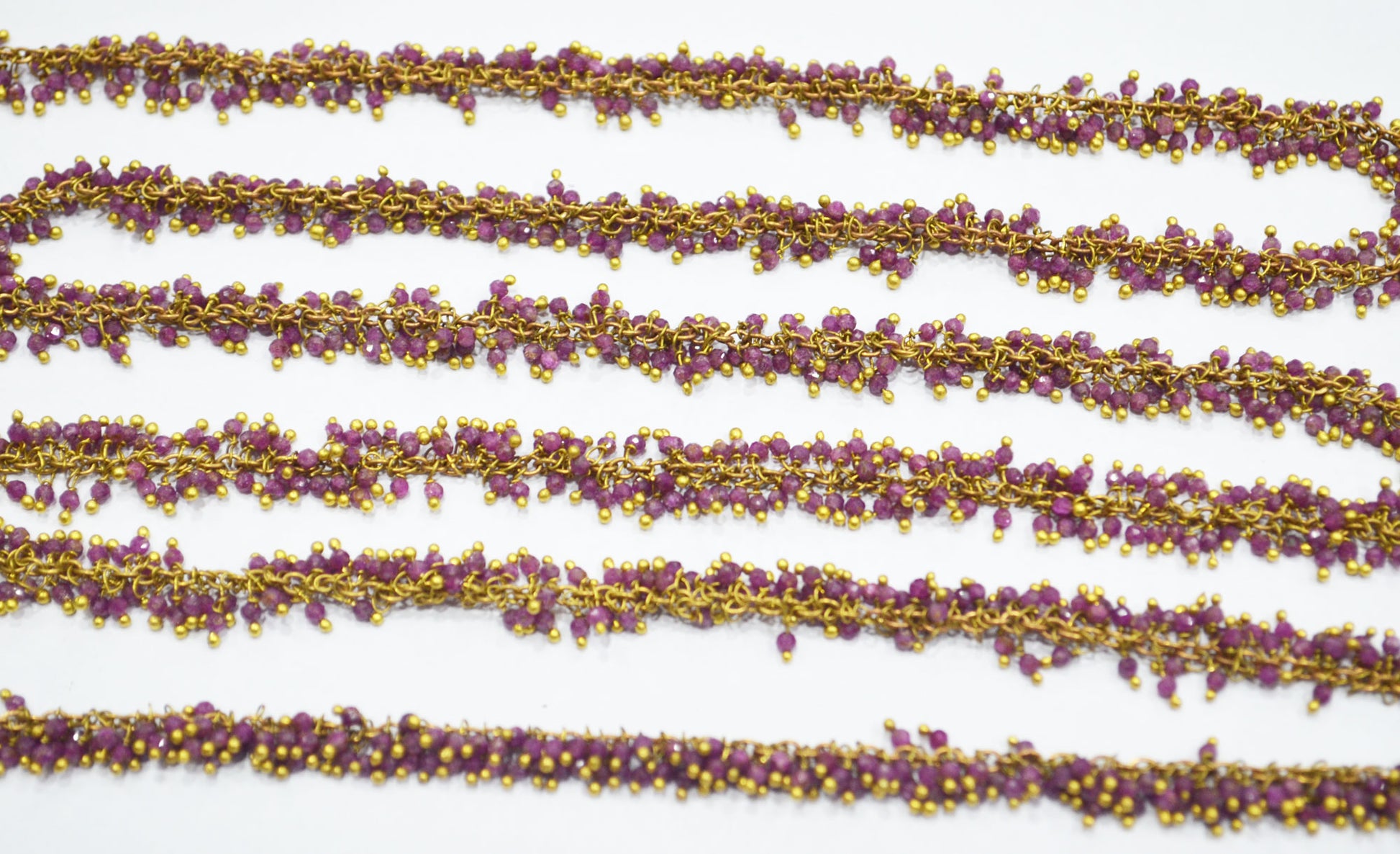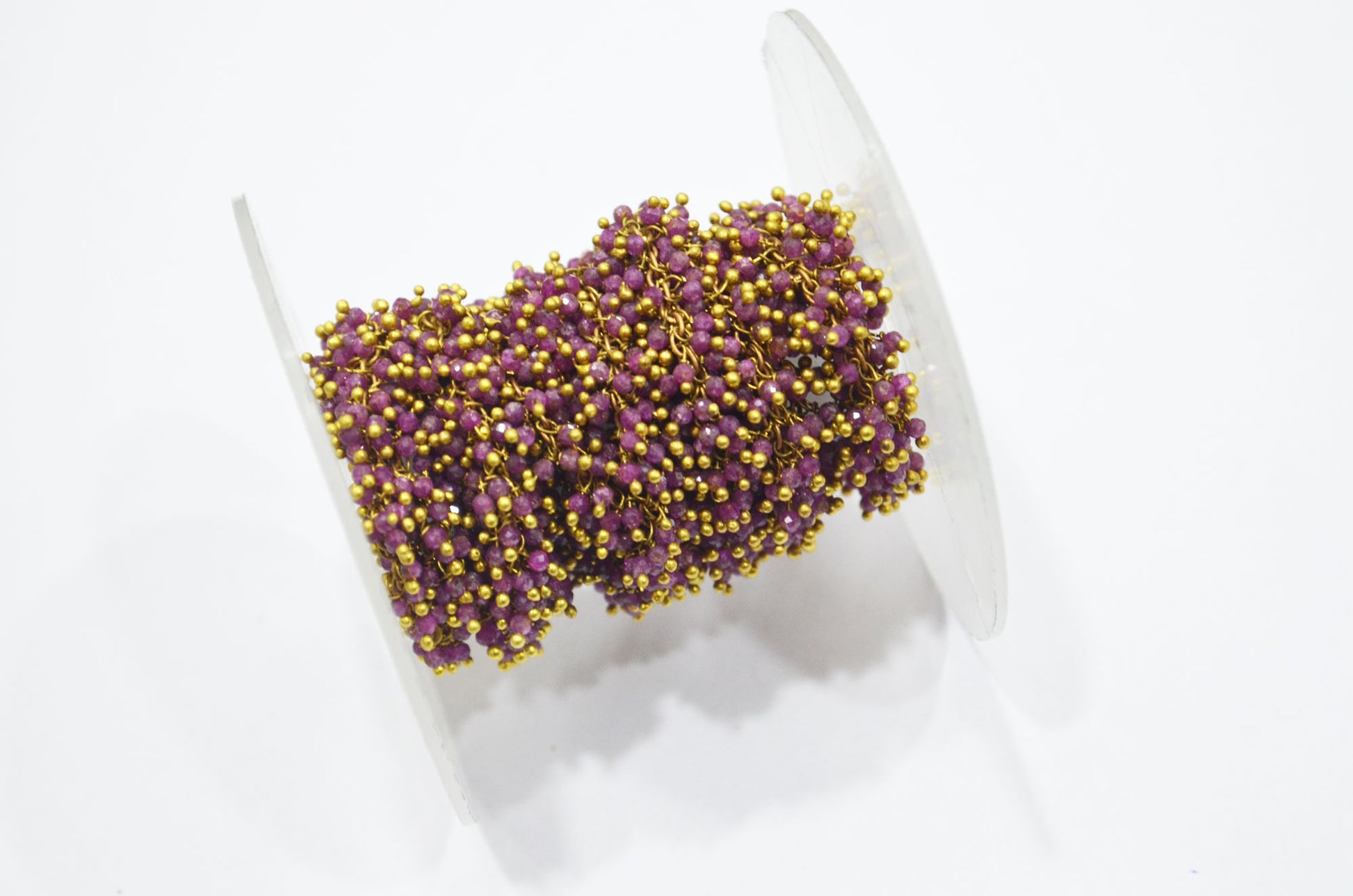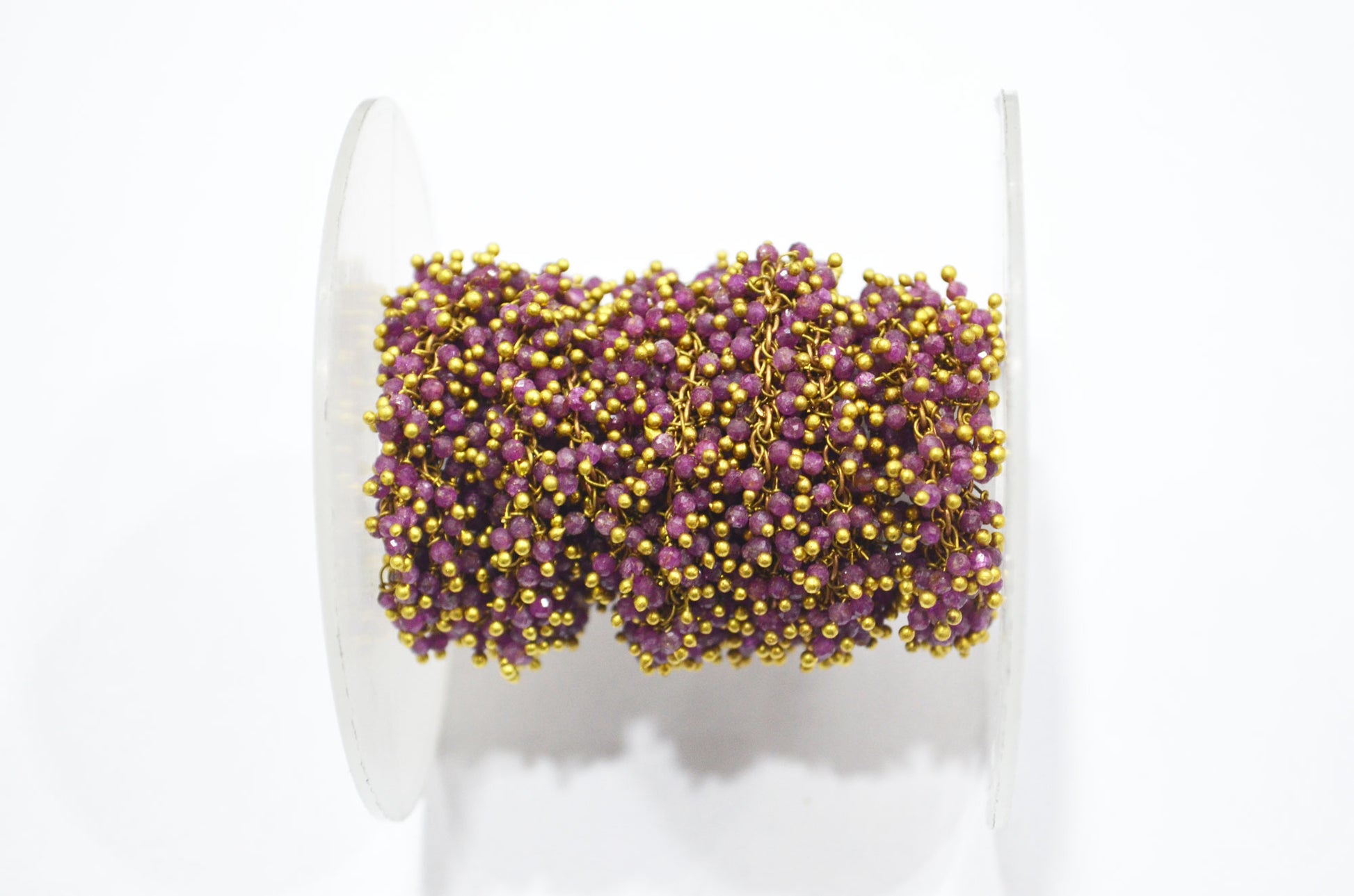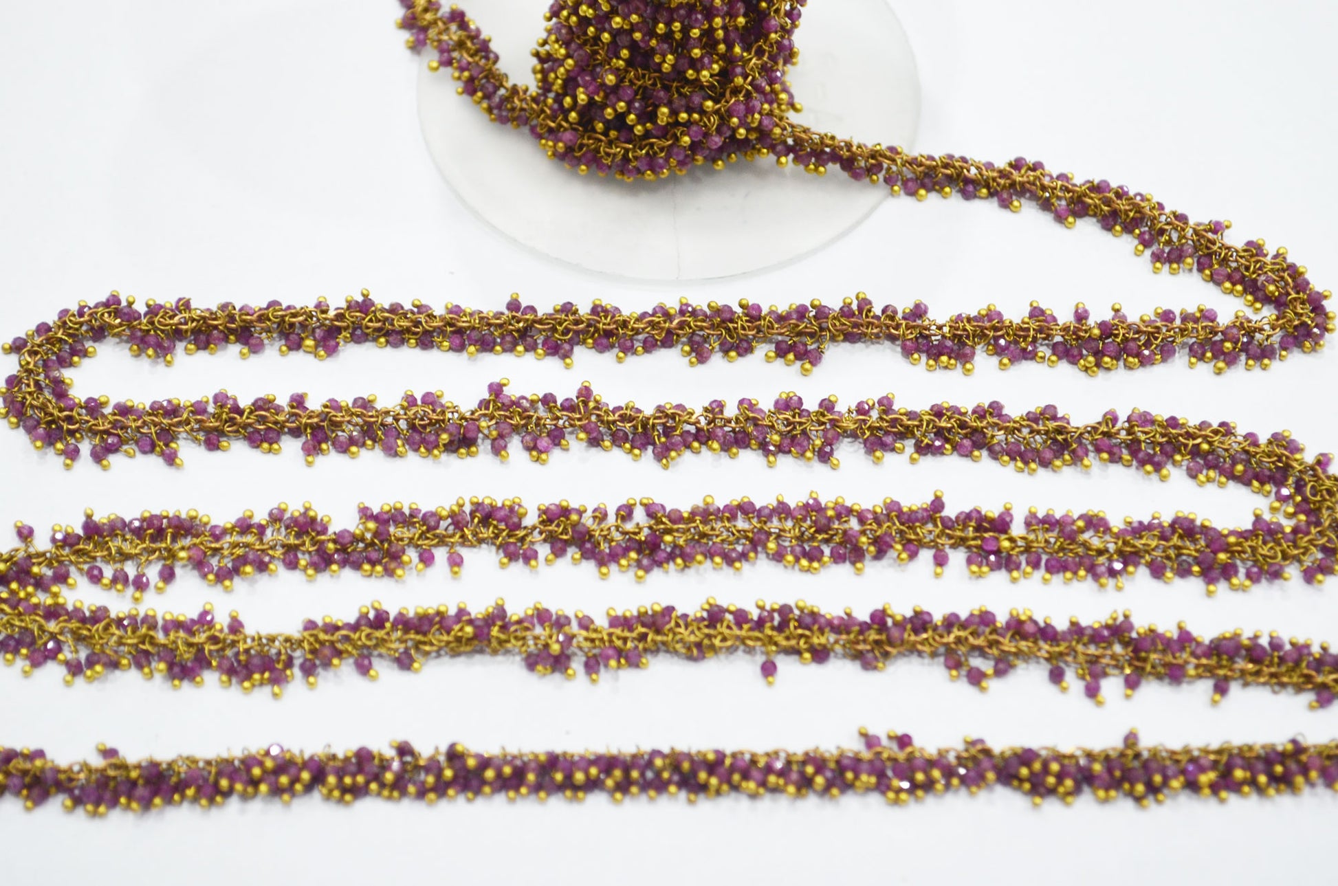 Mozambique Ruby Faceted Round Shape Grape Chain , Mozambique Ruby Angoori Cluster Wire Wrapped Chain , 2 mm , RB-6346