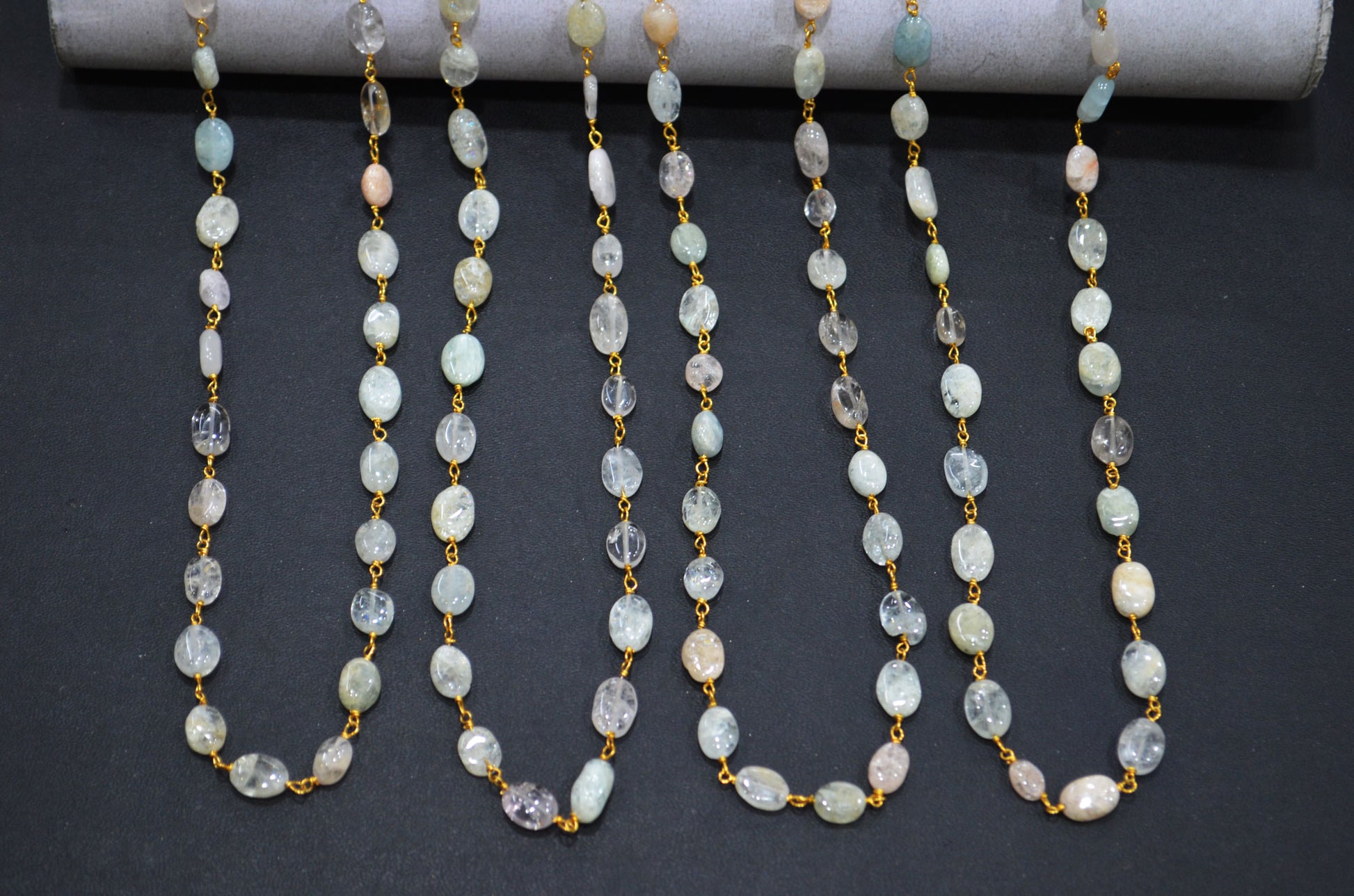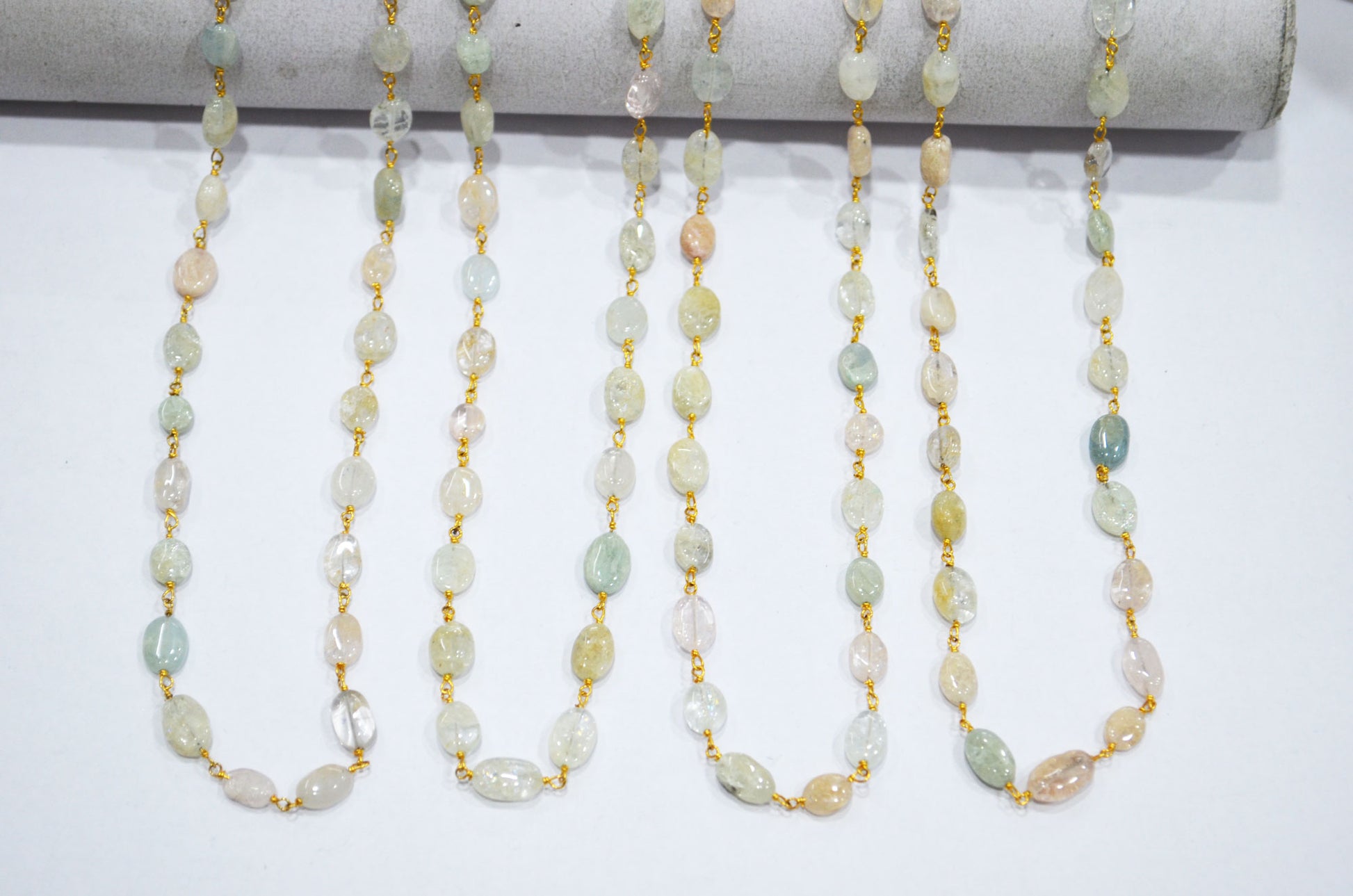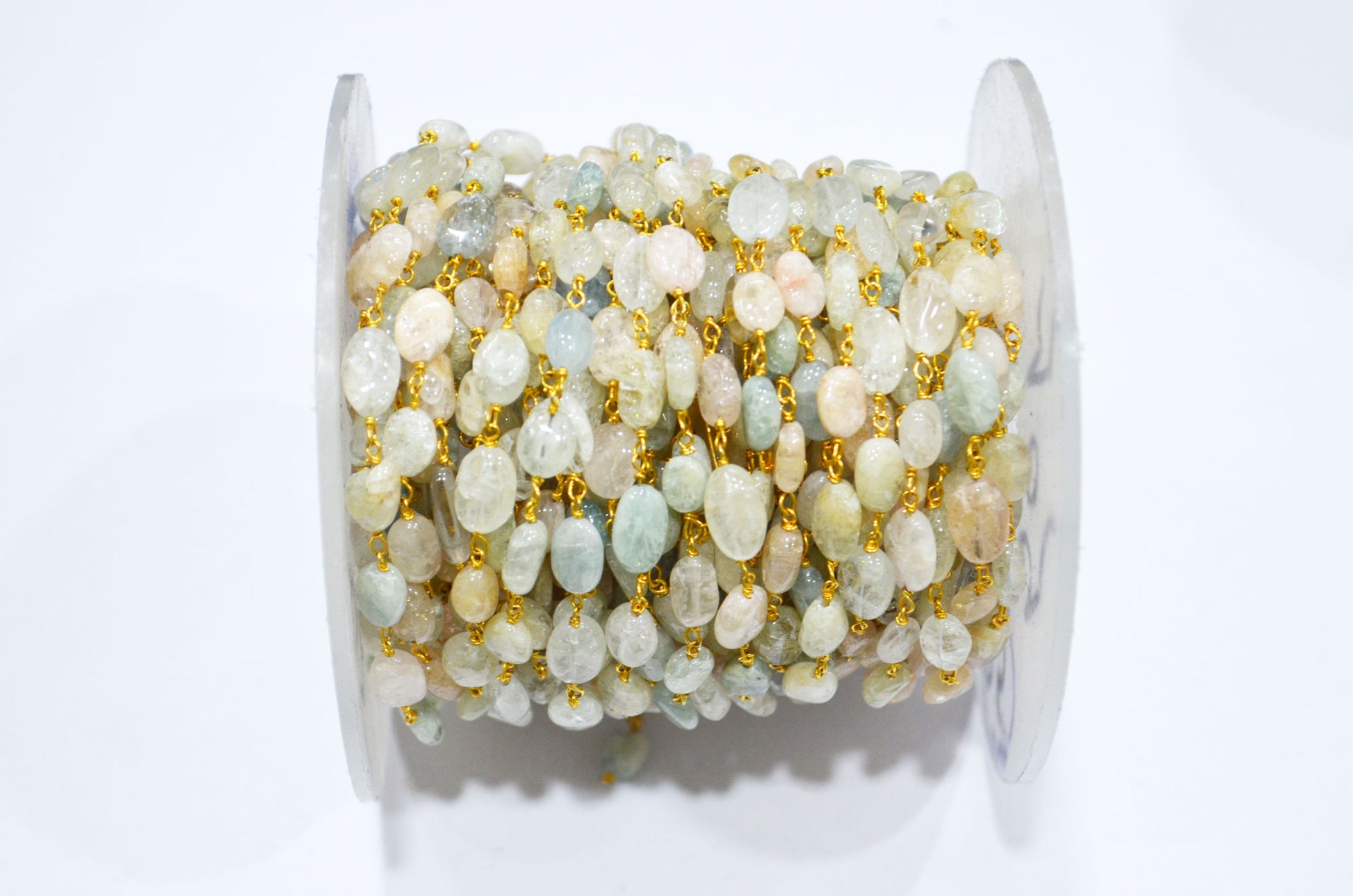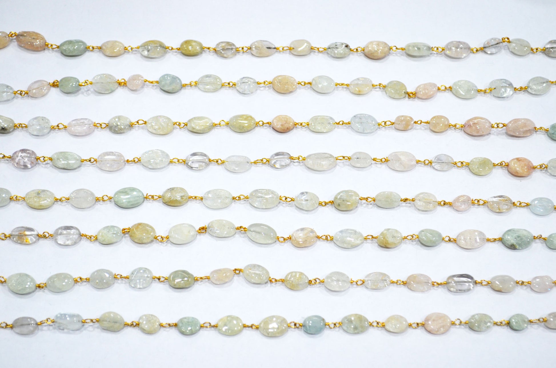 Multi Aquamarine Smooth Oval Shape Rosary Beaded Chain , Multi Aquamarine Wire Wrapped Chain , 6 - 13 mm , RB-5749