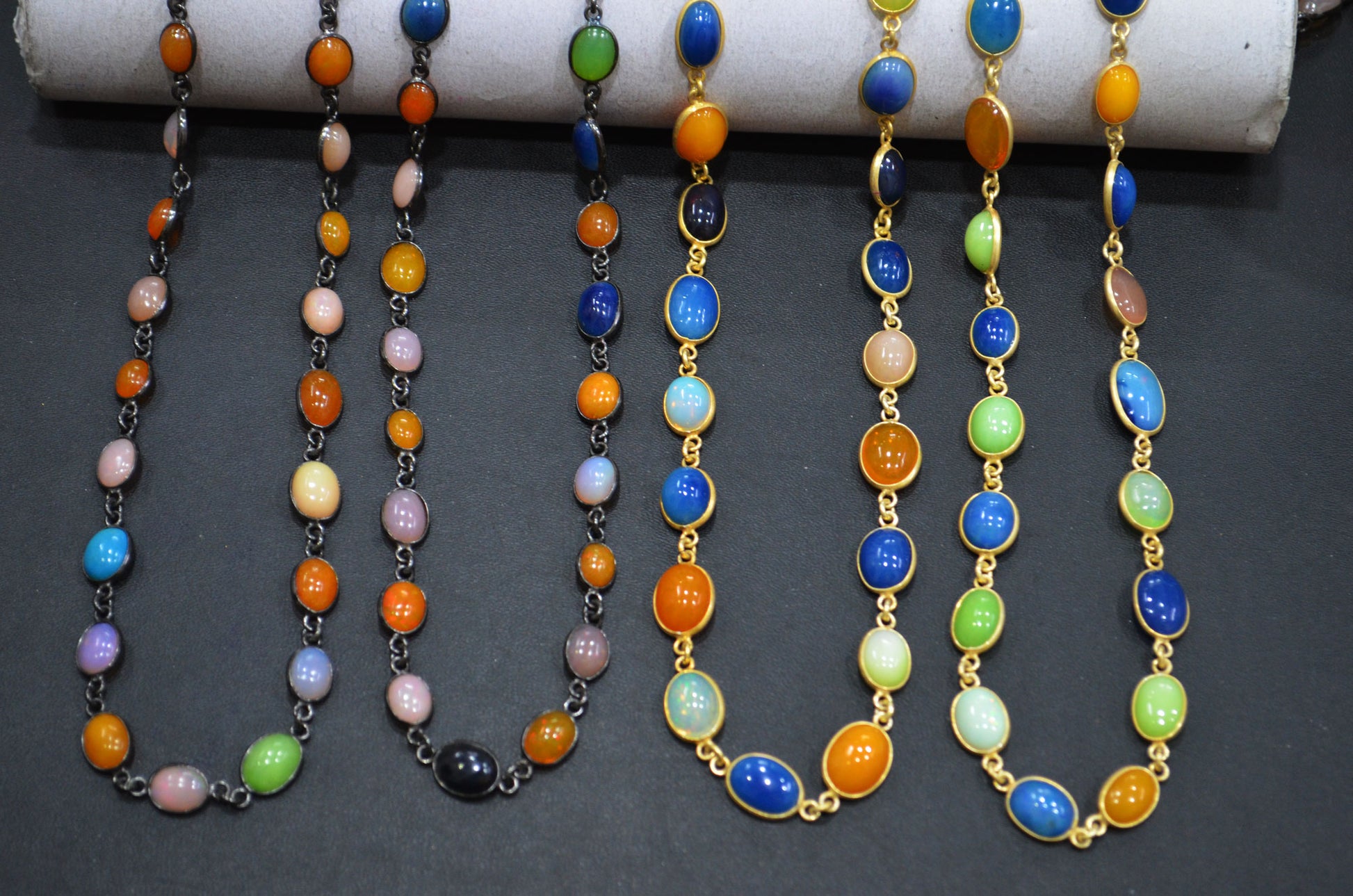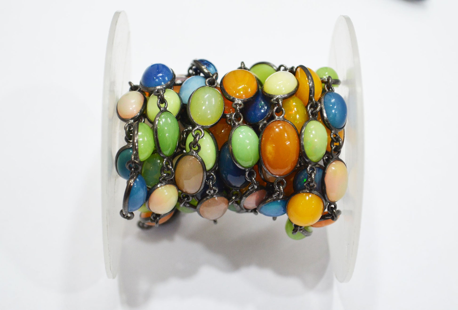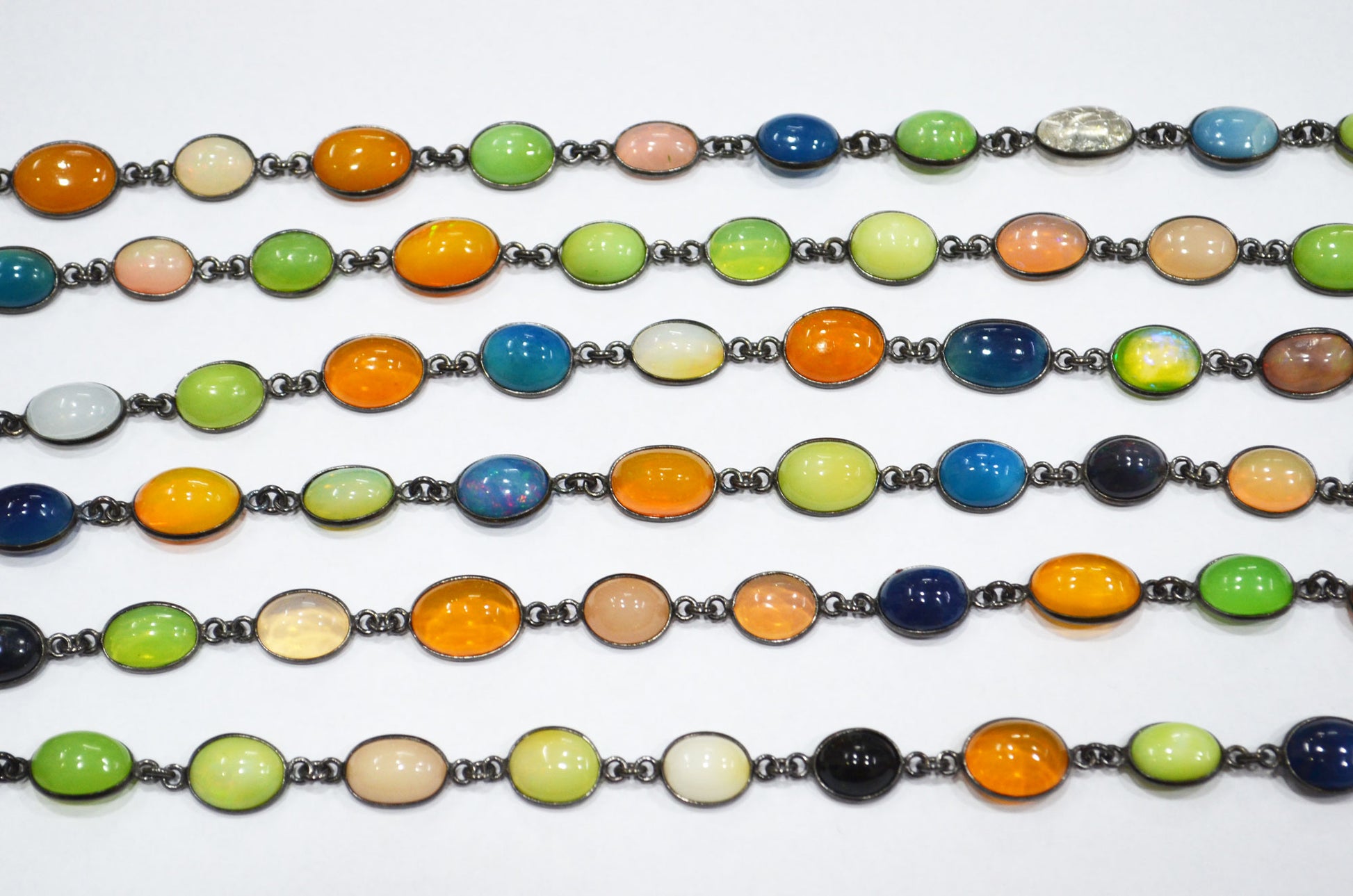 Multi Colored Ethiopian Opal Smooth Connector Chain , Multi Colored Ethiopian Opal Oval Shape Bezel Link Chain , 6x8 - 9x13Β mm , RB-5874