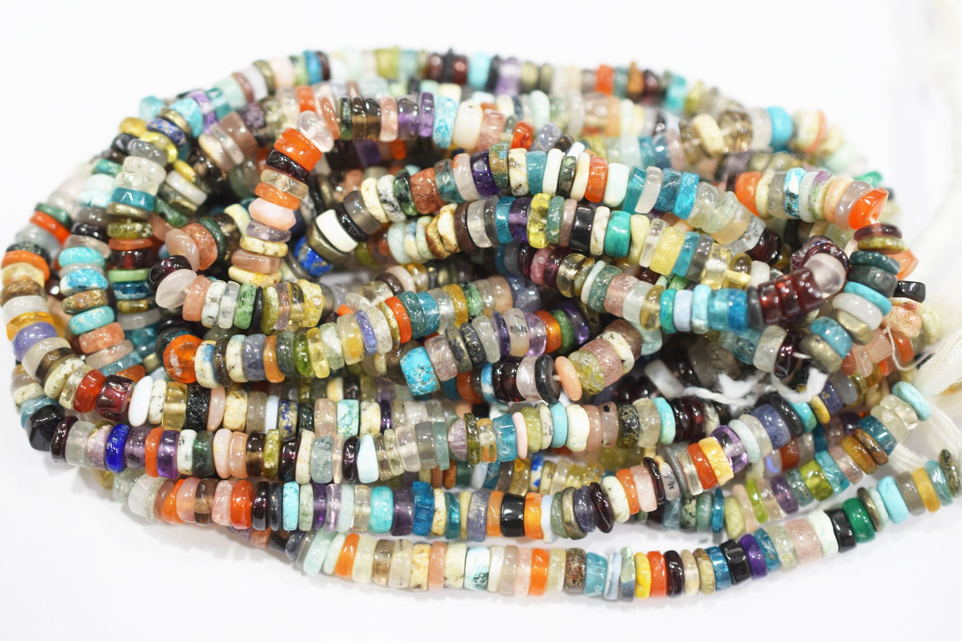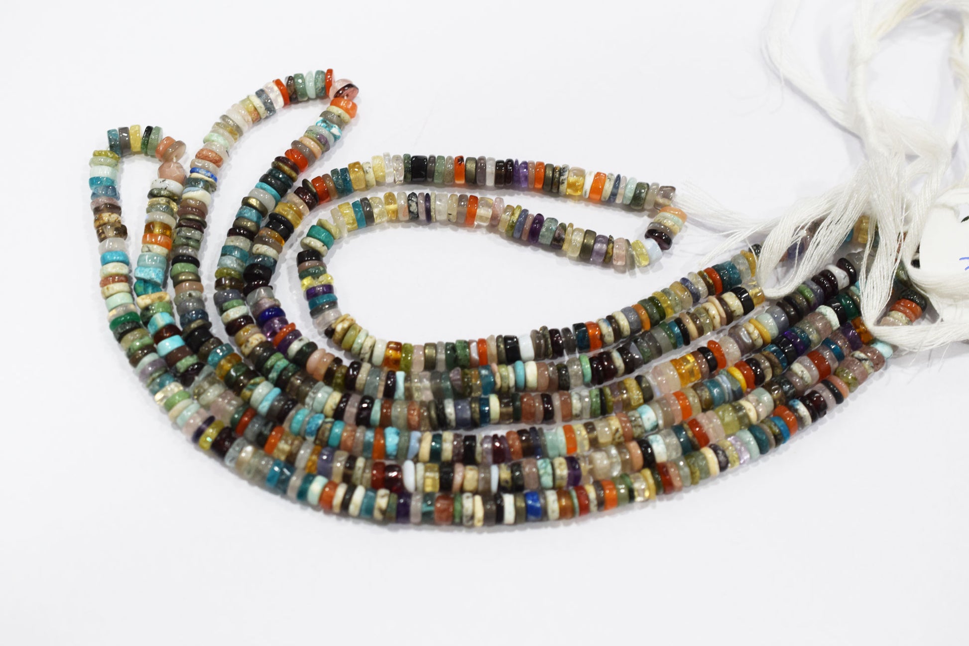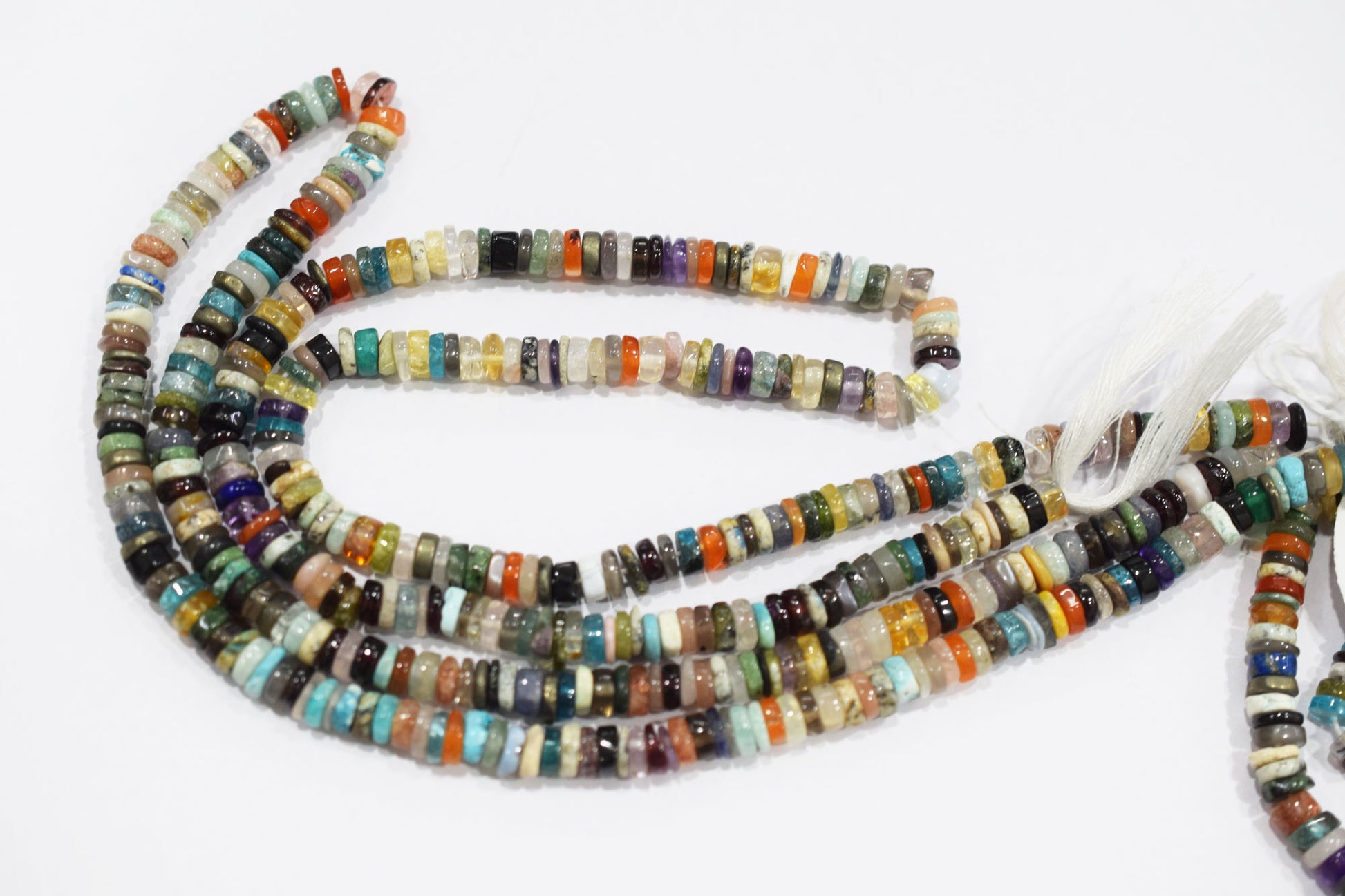 Multi Semi Precious Gemstone Smooth Beads , Multi Jungle Mix Tyre Shape Beads , Sold By Strand , 5.50 - 6.50 mm , 16" , Β 19784