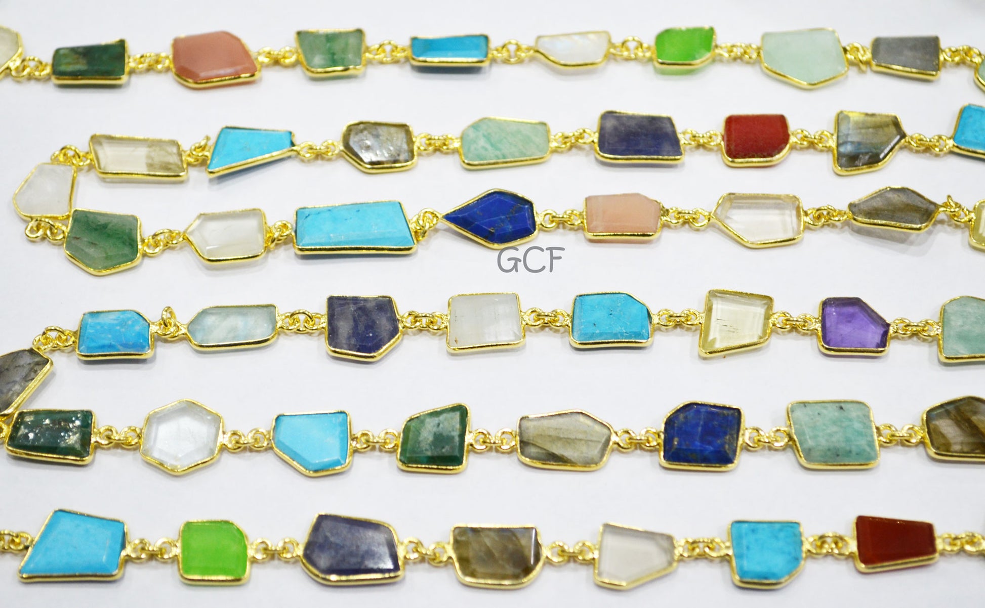 Multi Mix Gemstone Slice Cut Fancy Connector Chain , Multi Mix Gemstone Fancy Bezel Link Chain , 10x13 - 11x16 mm , 6896