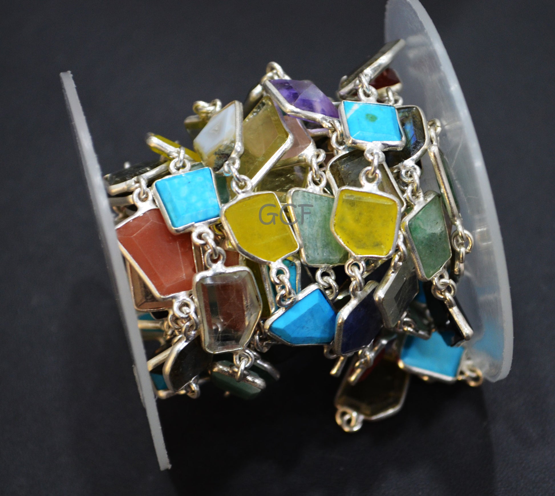 Multi Mix Gemstone Slice Cut Fancy Connector Chain , Multi Mix Gemstone Fancy Bezel Link ChainΒ  , 10x13 - 11x16 mm , 6896