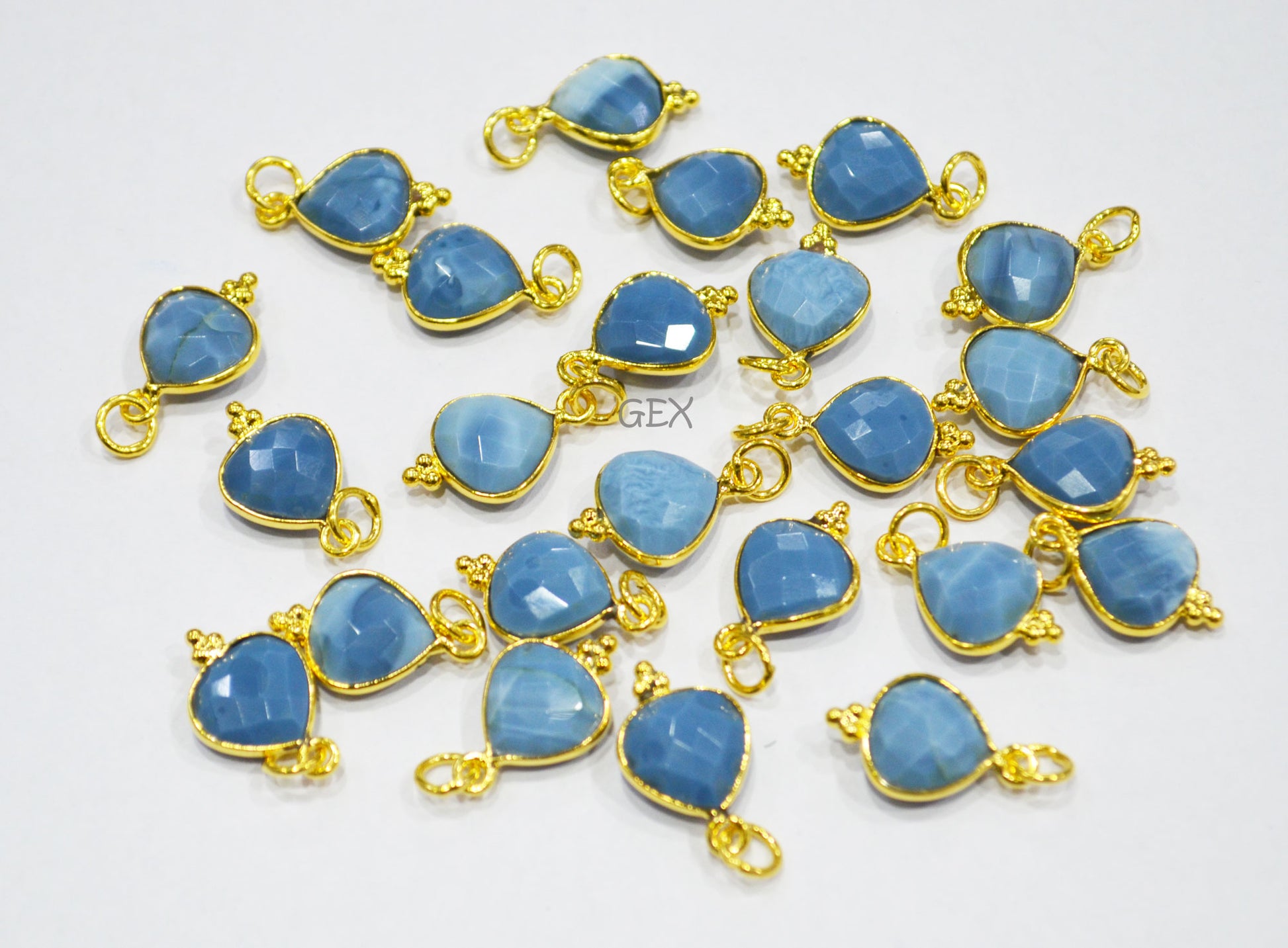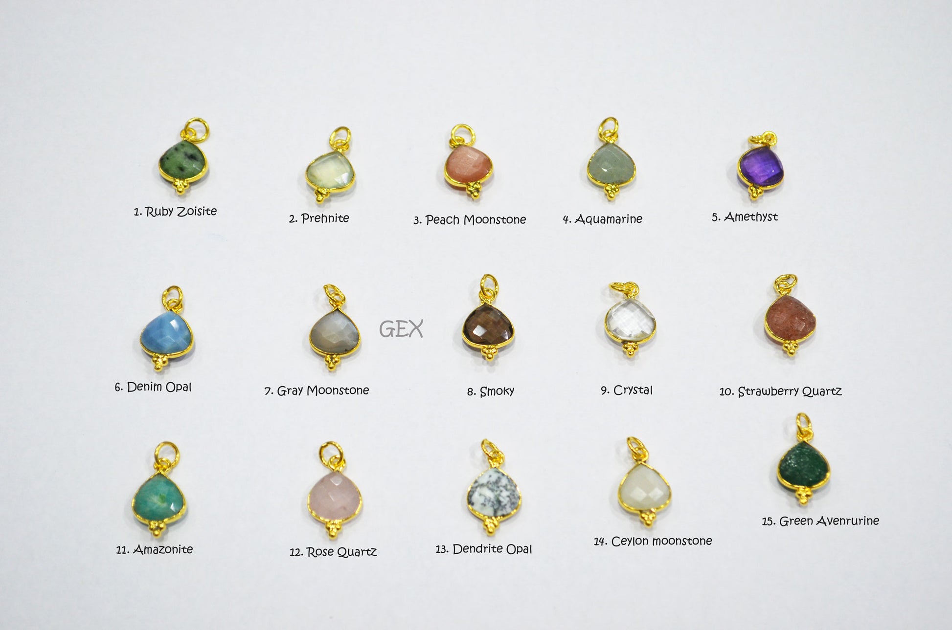 Multi Semi Precious Faceted Heart Shape Connector ,Multi Semi Precious Gemstone Single Bail Bezel Pendant , Sold By Piece , 10 - 11 mm ,7256