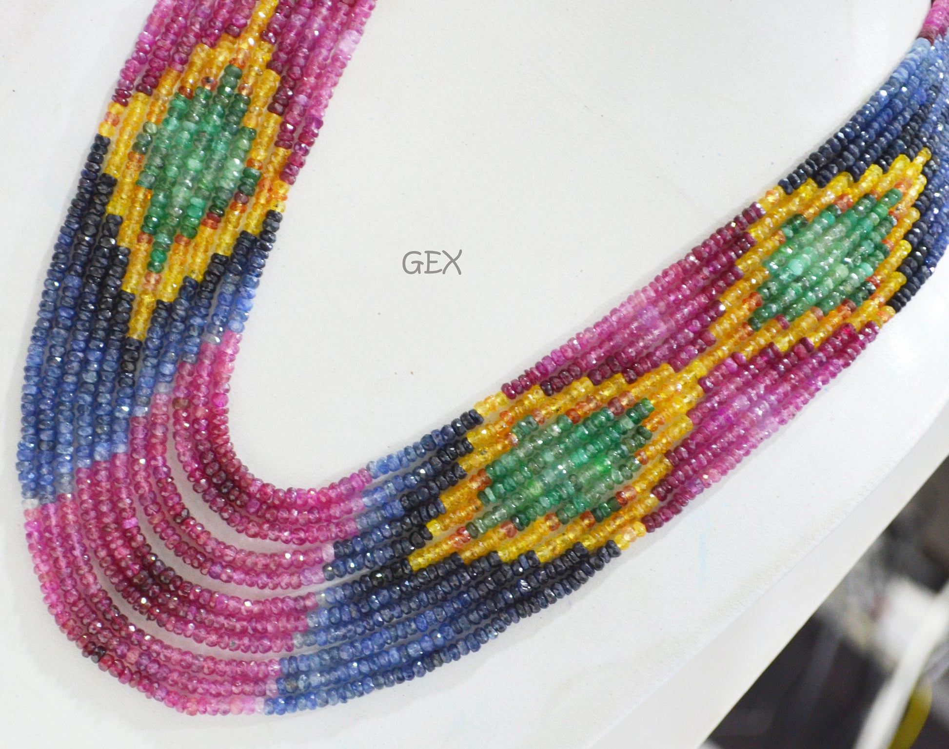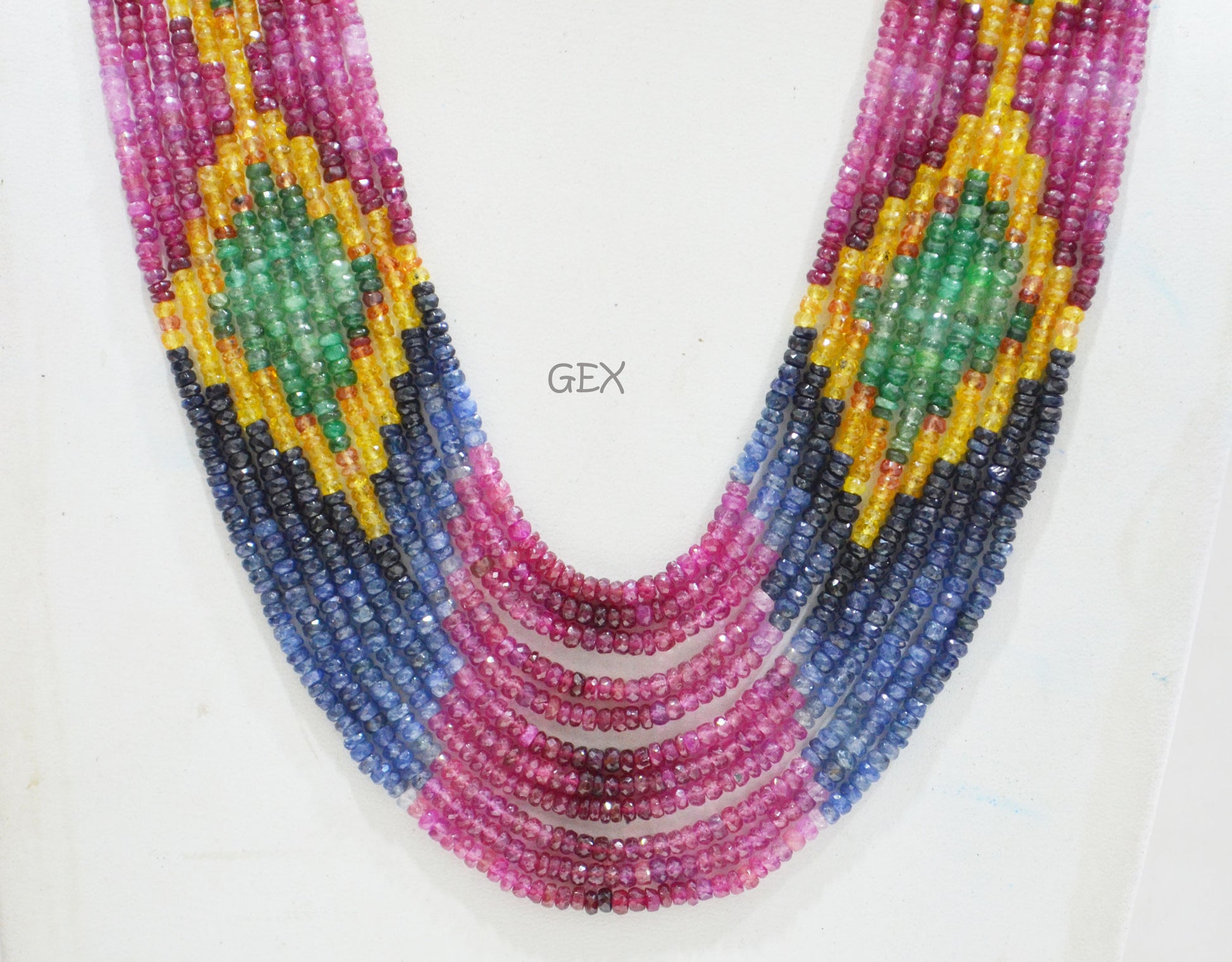 Multi Semi Precious Faceted Rondelle Shape Necklace , Multi Semi Precious Gemstone 11 Line Necklace 16 - 21 Inches Long With Adjustable Tussle , 3.50 - 4 mm , 32051