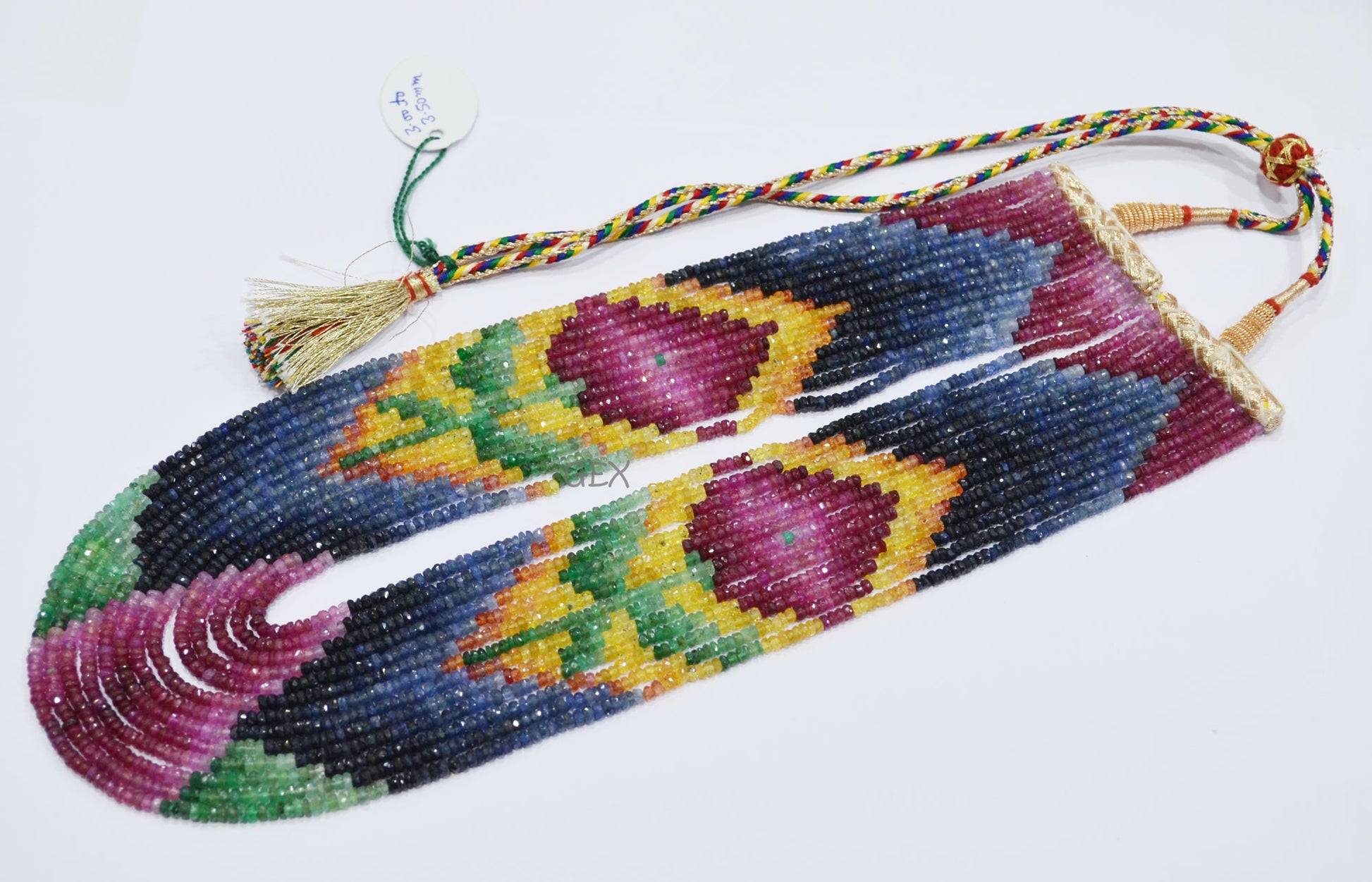 Multi Semi Precious Faceted Rondelle Shape Necklace , Multi Semi Precious Gemstone 13 Line Necklace 16 - 21 Inches Long With Adjustable Tussle , 3 - 3.50 mm , 32052