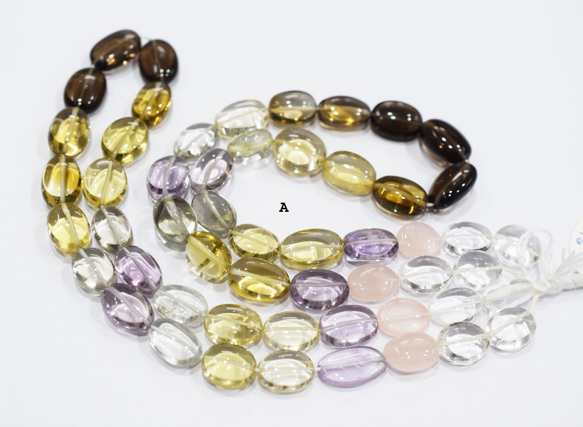 Natural Multi Semi Precious Smooth Beads , Multi Semi Precious Oval Nuggets Shape Beads , Sold By Strand , 11x15 - 12x21 mm , 19744