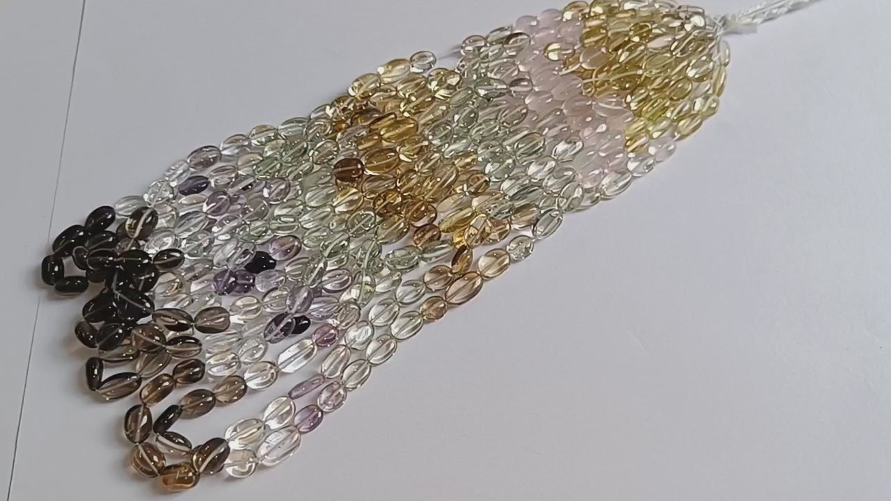 Natural Multi Semi Precious Smooth Beads , Multi Semi- Precious Oval Nuggets Shape Beads , Sold By Strand , 6x7 - 10x12 mm , 16", 19736