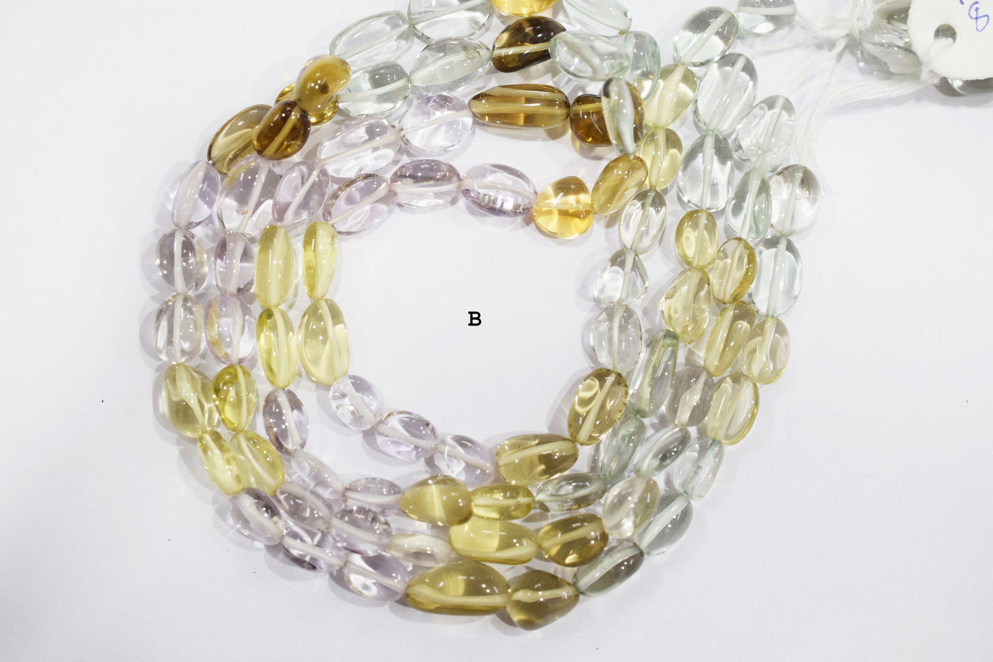 Natural Multi Semi Precious Smooth Beads , Multi Semi- Precious Oval Nuggets Shape Beads , Sold By Strand , 8x10 - 9x20 mm , 19743