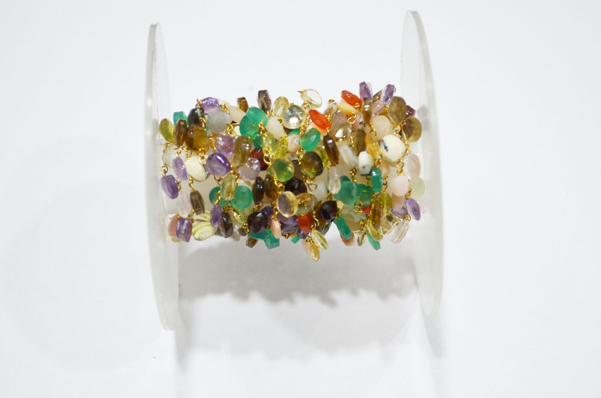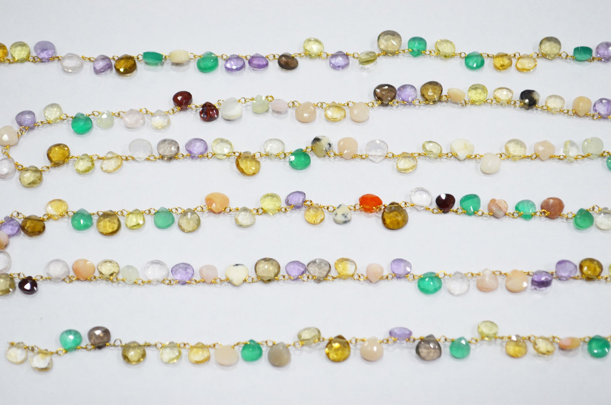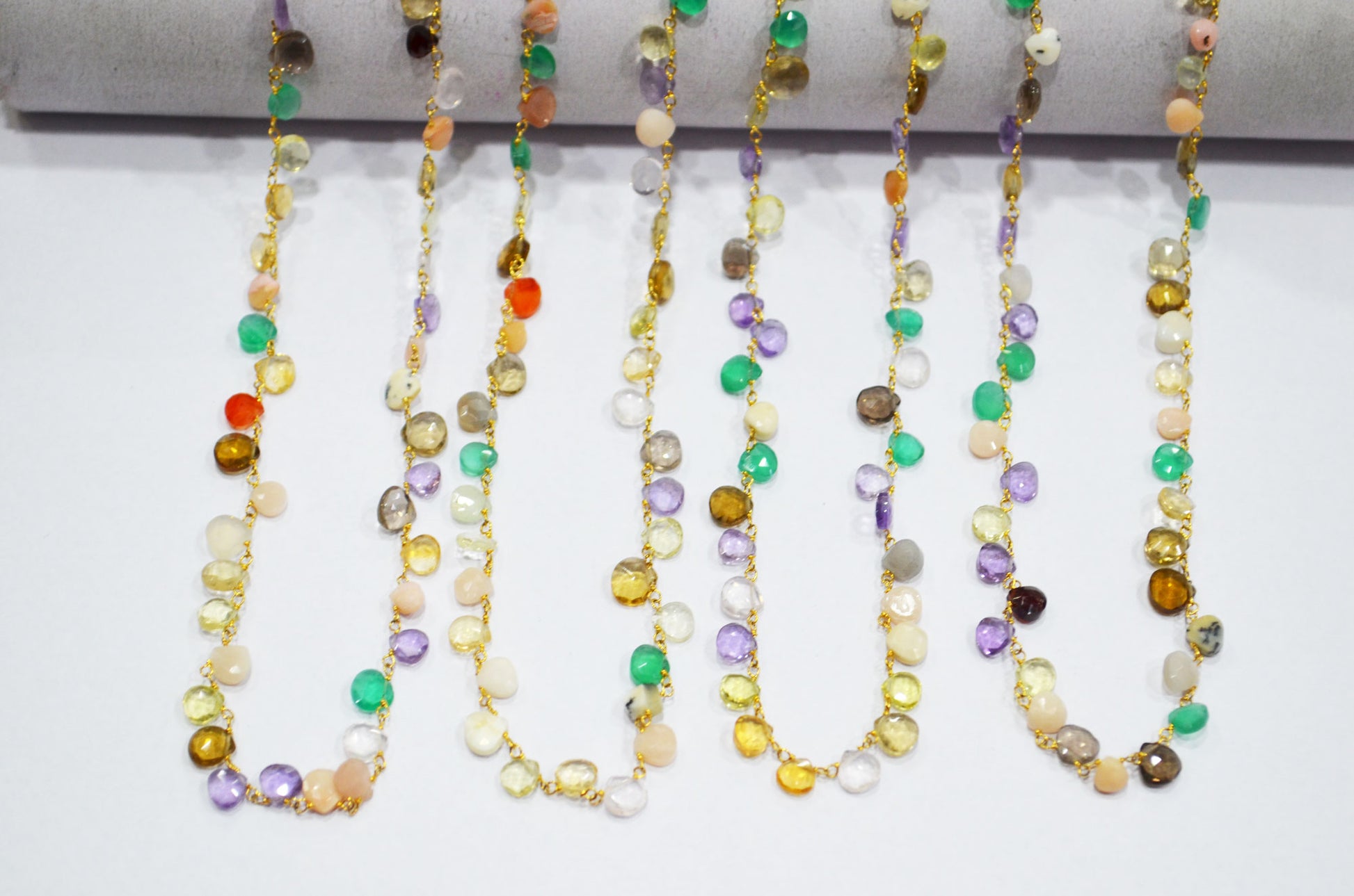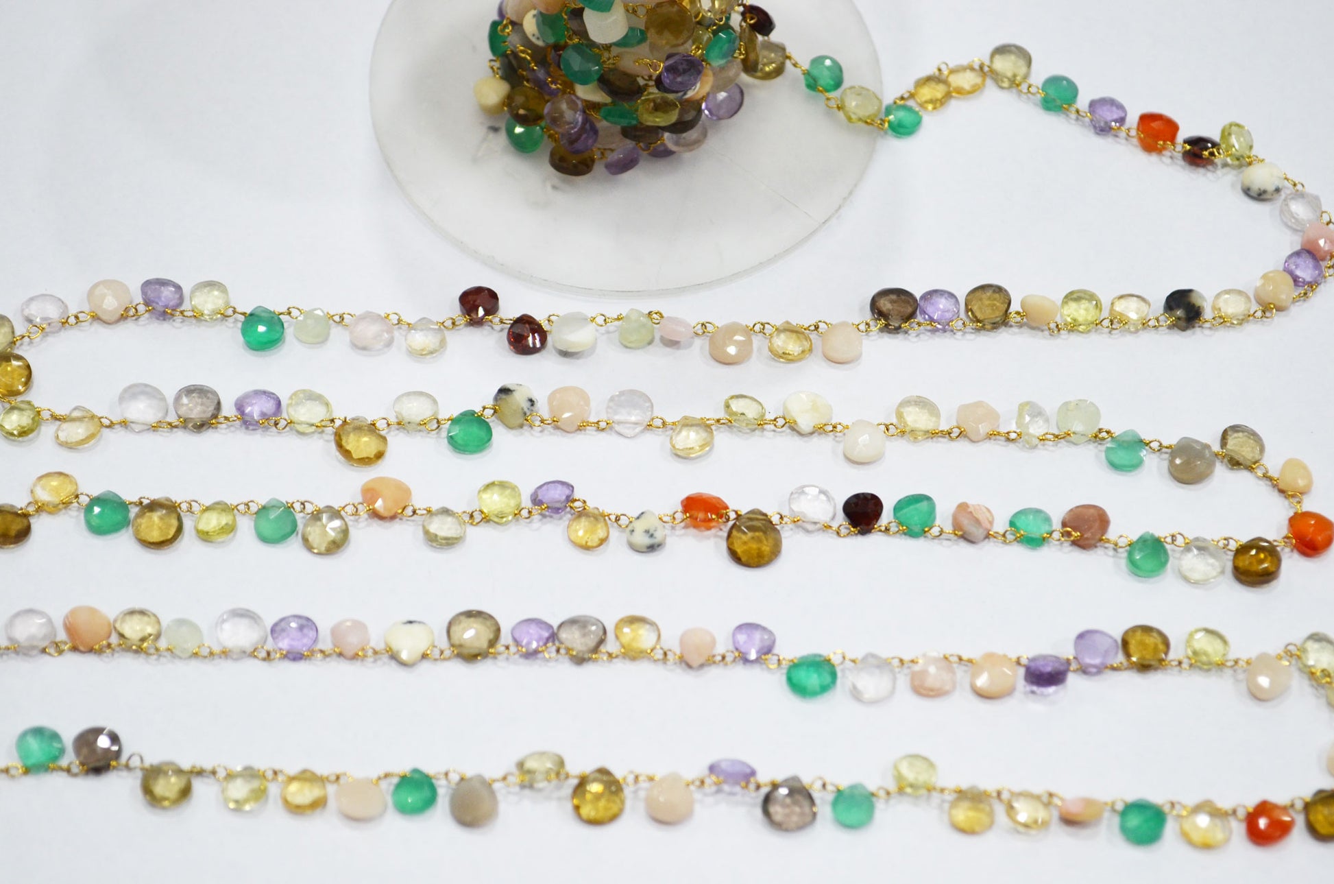 Multi Semi Precious Stone Heart Shape Chain , Multi Semi Precious Faceted Heart Rosary Beaded Chain , 5x5 - 7x7 mm , RB-6106