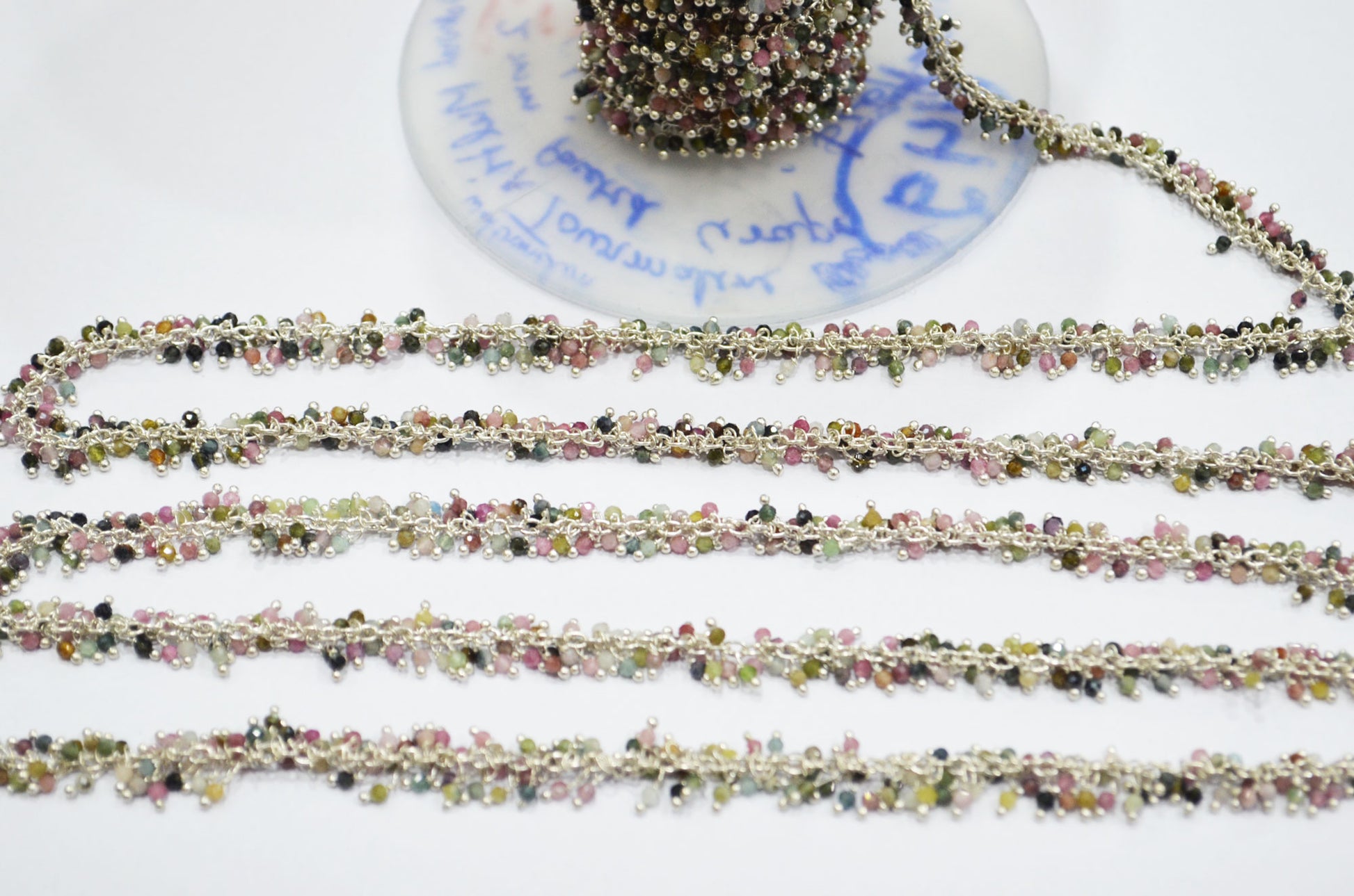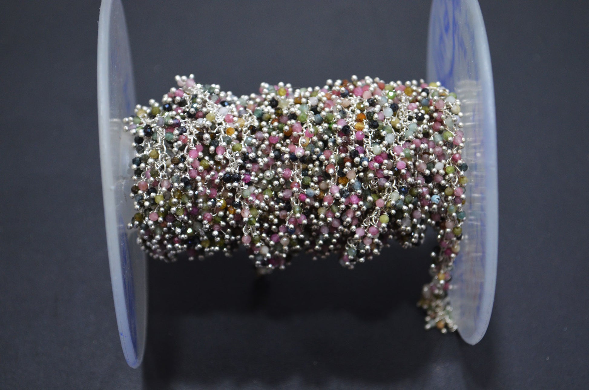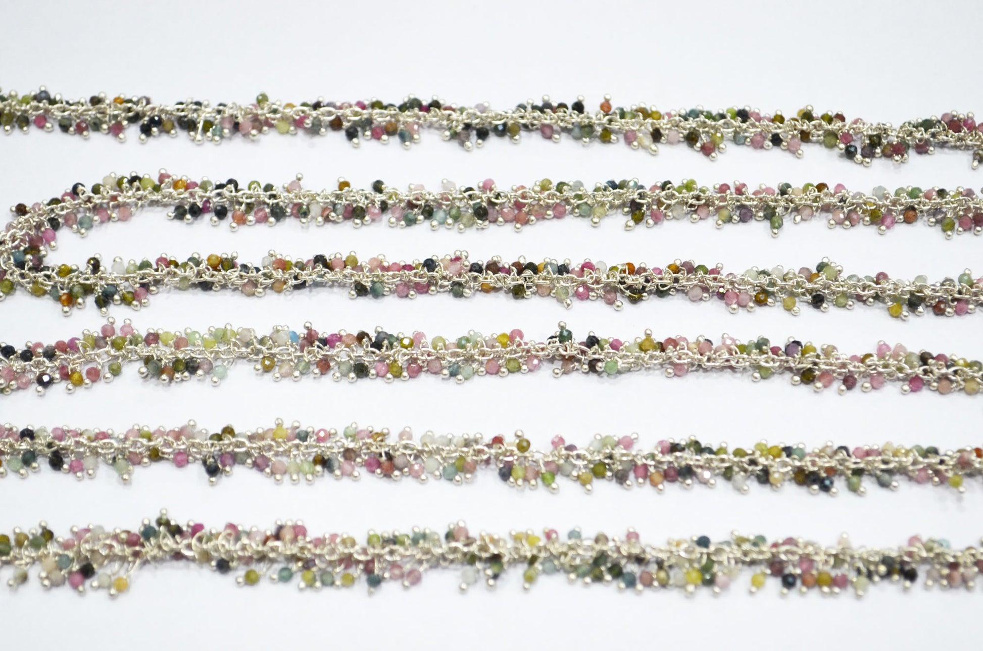 Multi Tourmaline Faceted Round Shape Grape Chain , Multi Tourmaline Angoori Cluster Wire Wrapped Chain , 2 mm , RB-6344
