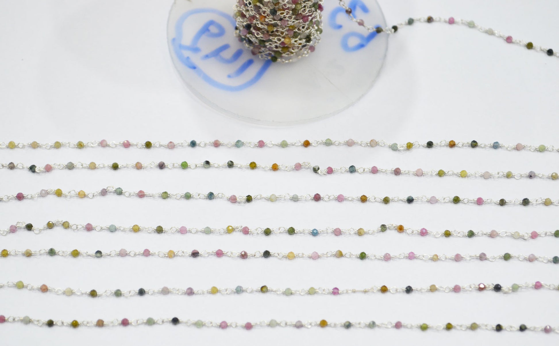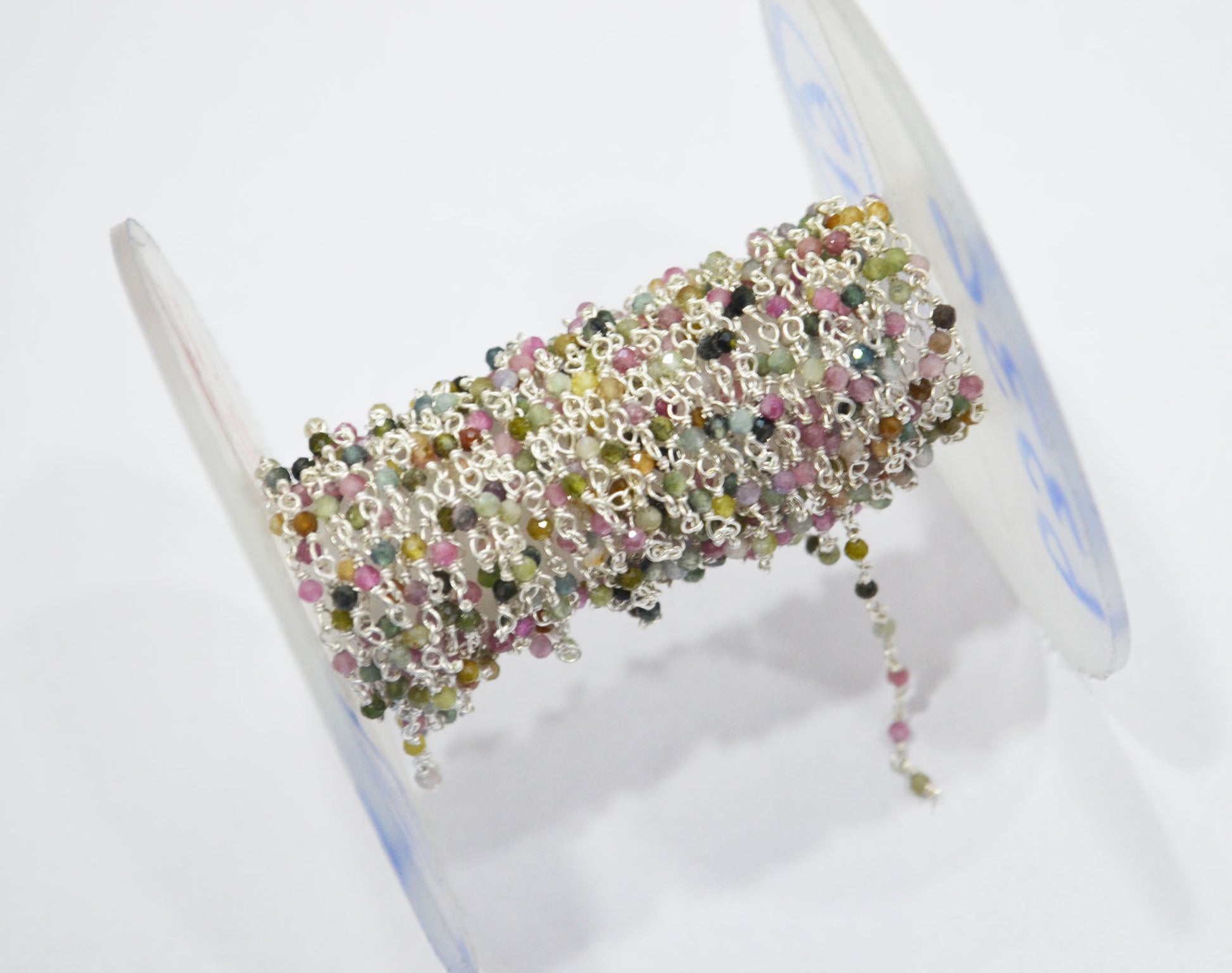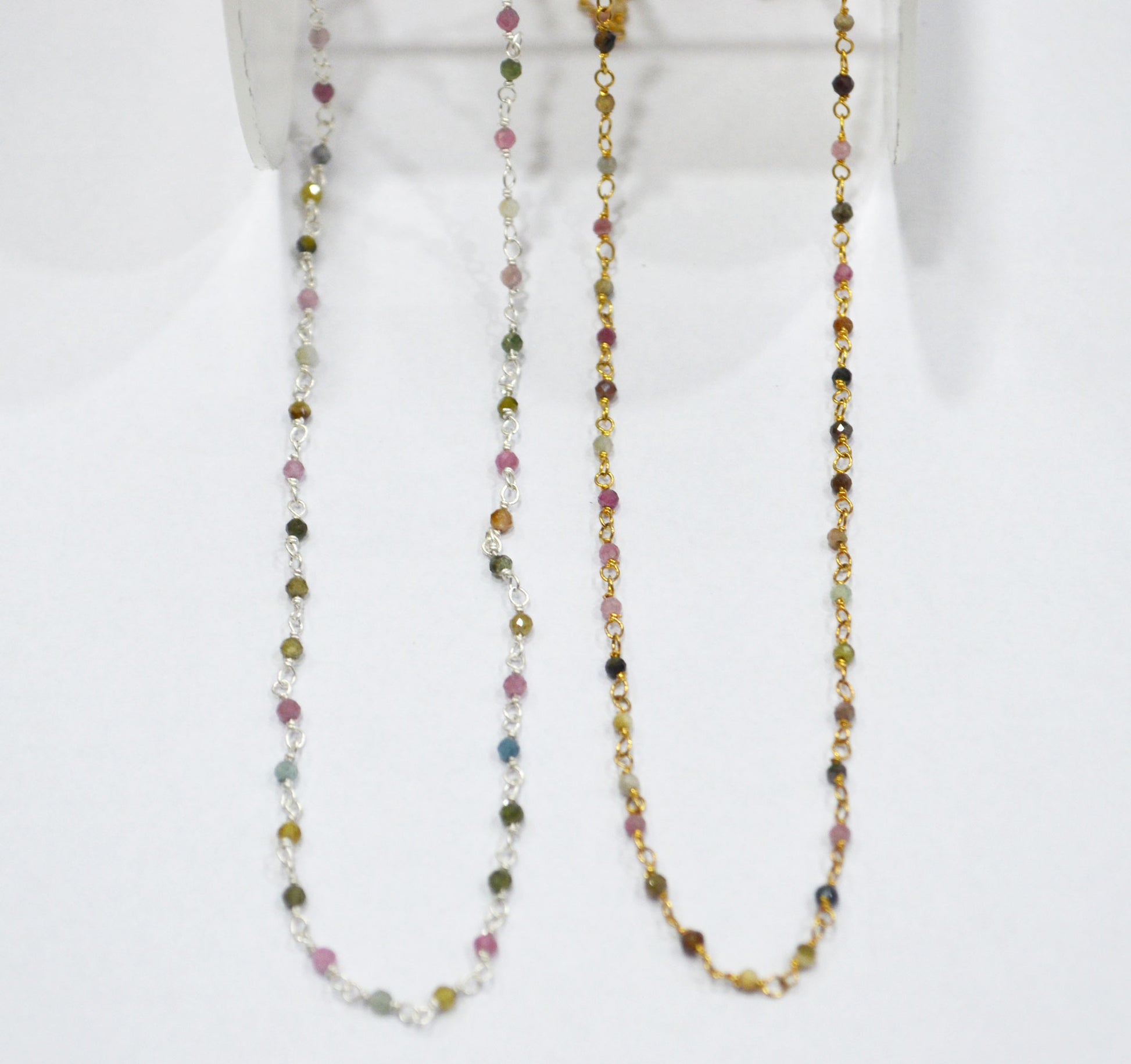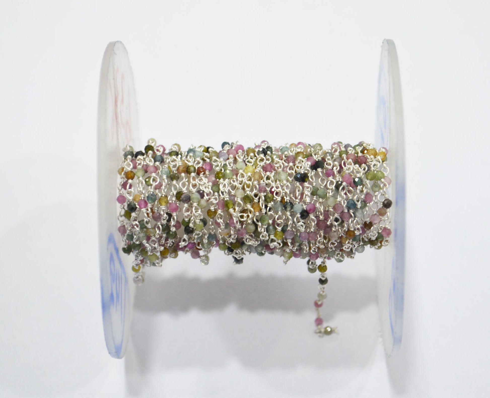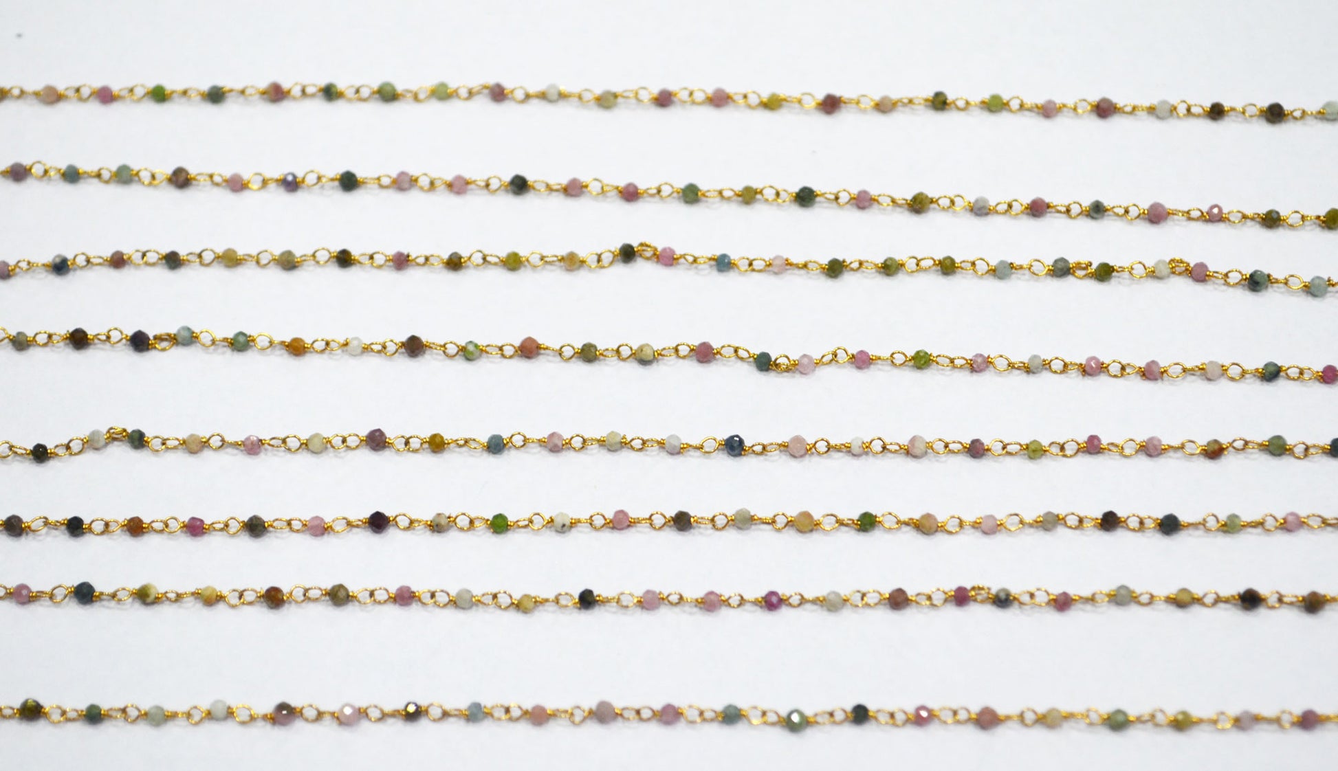 Multi Tourmaline Faceted Round Shape Rosary Beaded Chain , Multi Tourmaline Wire Wrapped Chain , Sold By Foot , 2 mm , RB-6336