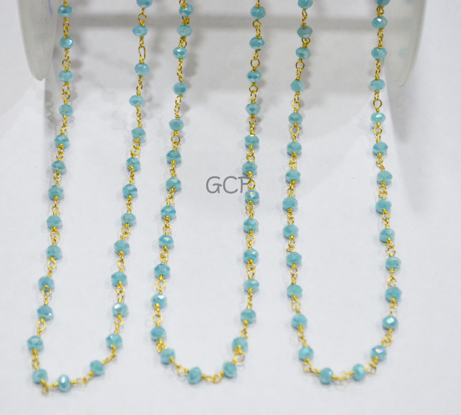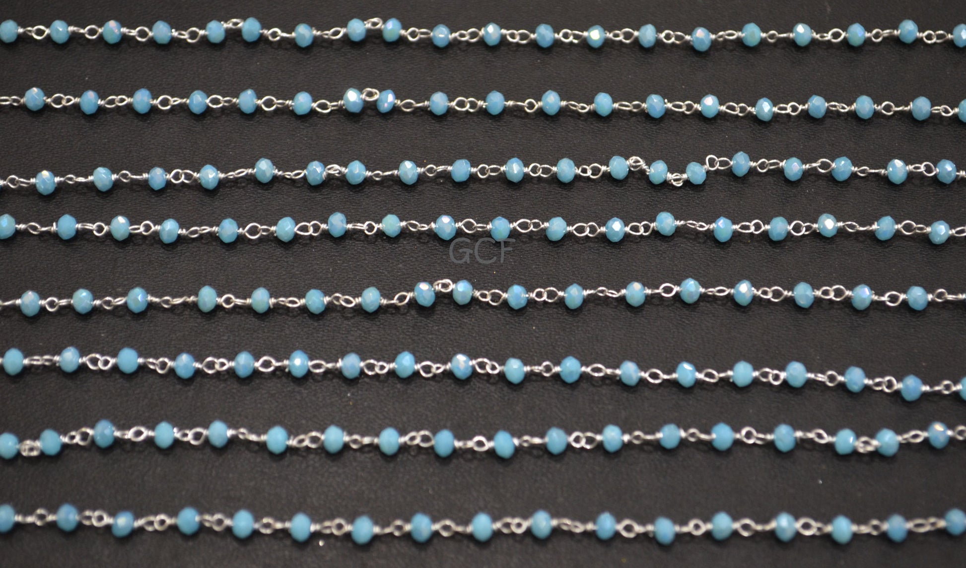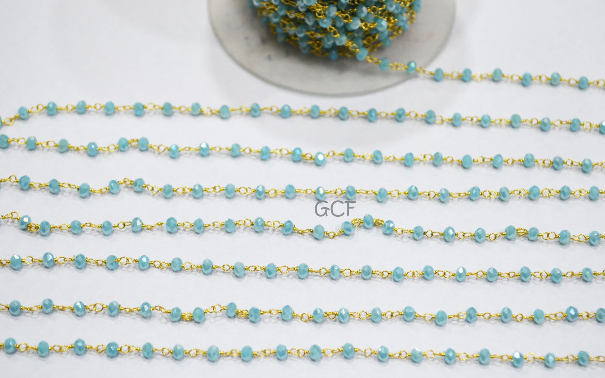 Mystic AB Coated Aqua Hydro Glass Faceted Rondelle Rosary Beaded Chain , Aqua Quartz Wire Wrapped ChainΒ , 3 - 3.50 mm , 6871