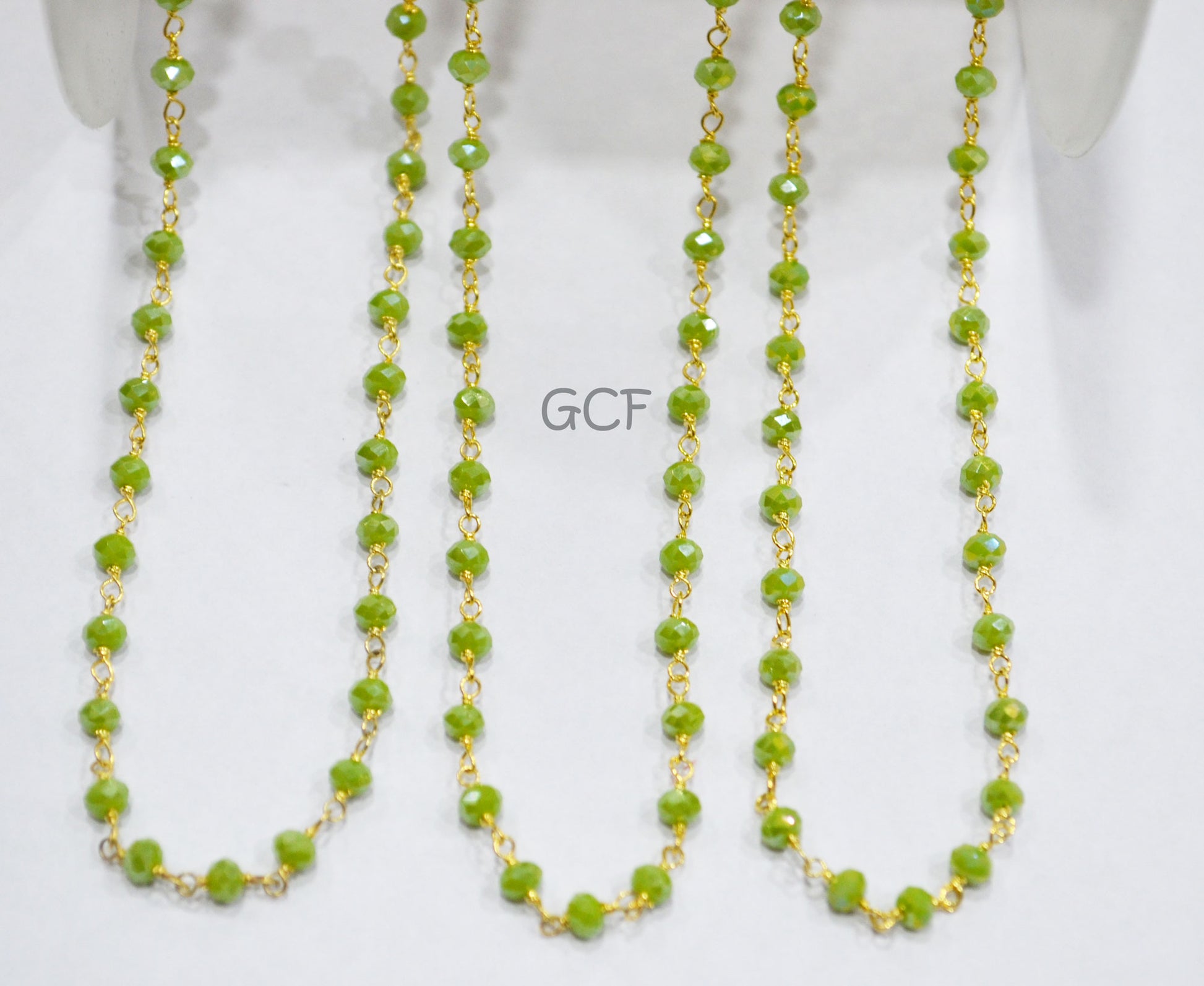 Mystic AB Coated Grossular Green Hydro Glass Faceted Rondelle Rosary Chain ,Green Quartz Wire Wrapped Chain ,3 - 3.50 mm ,6870