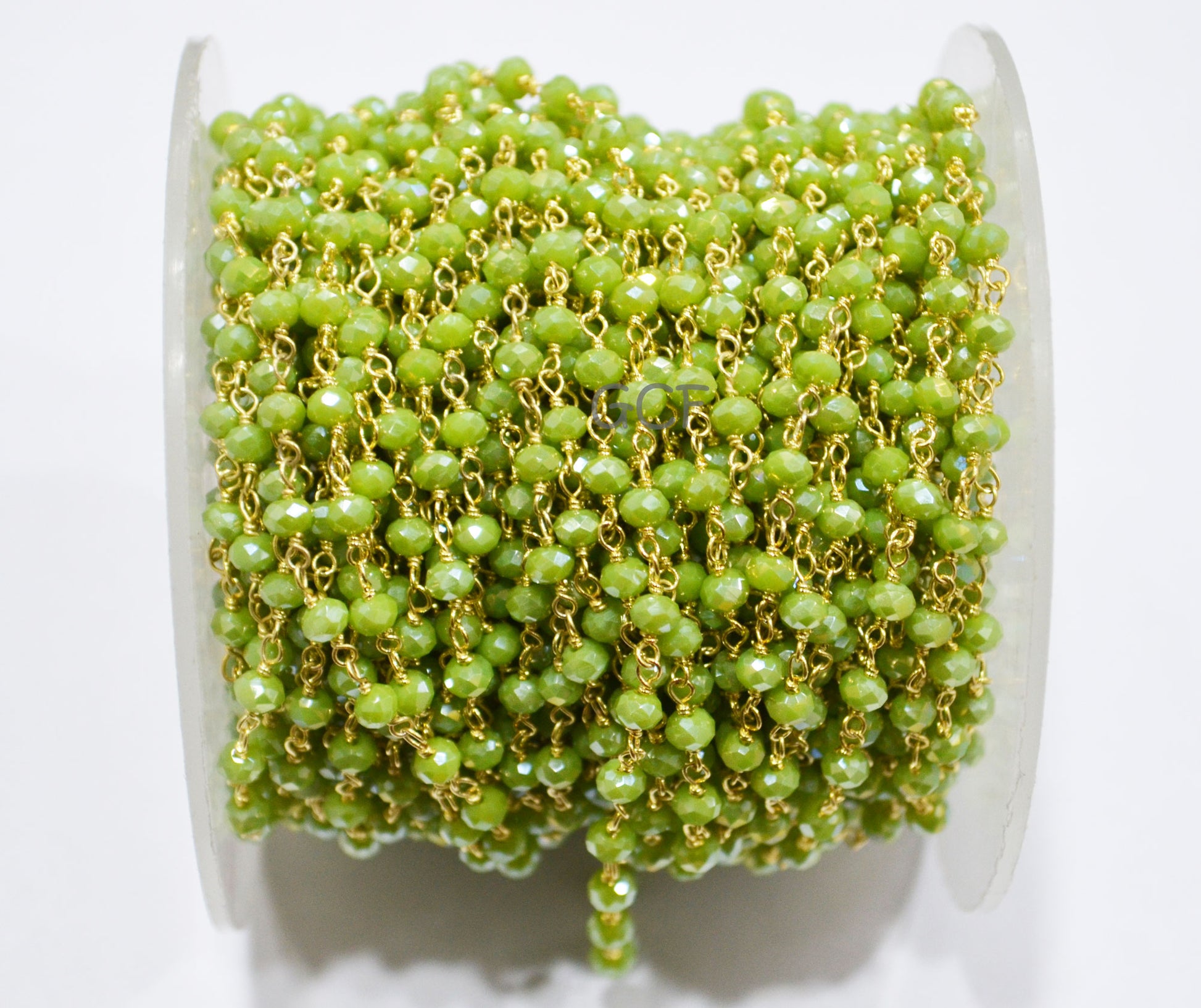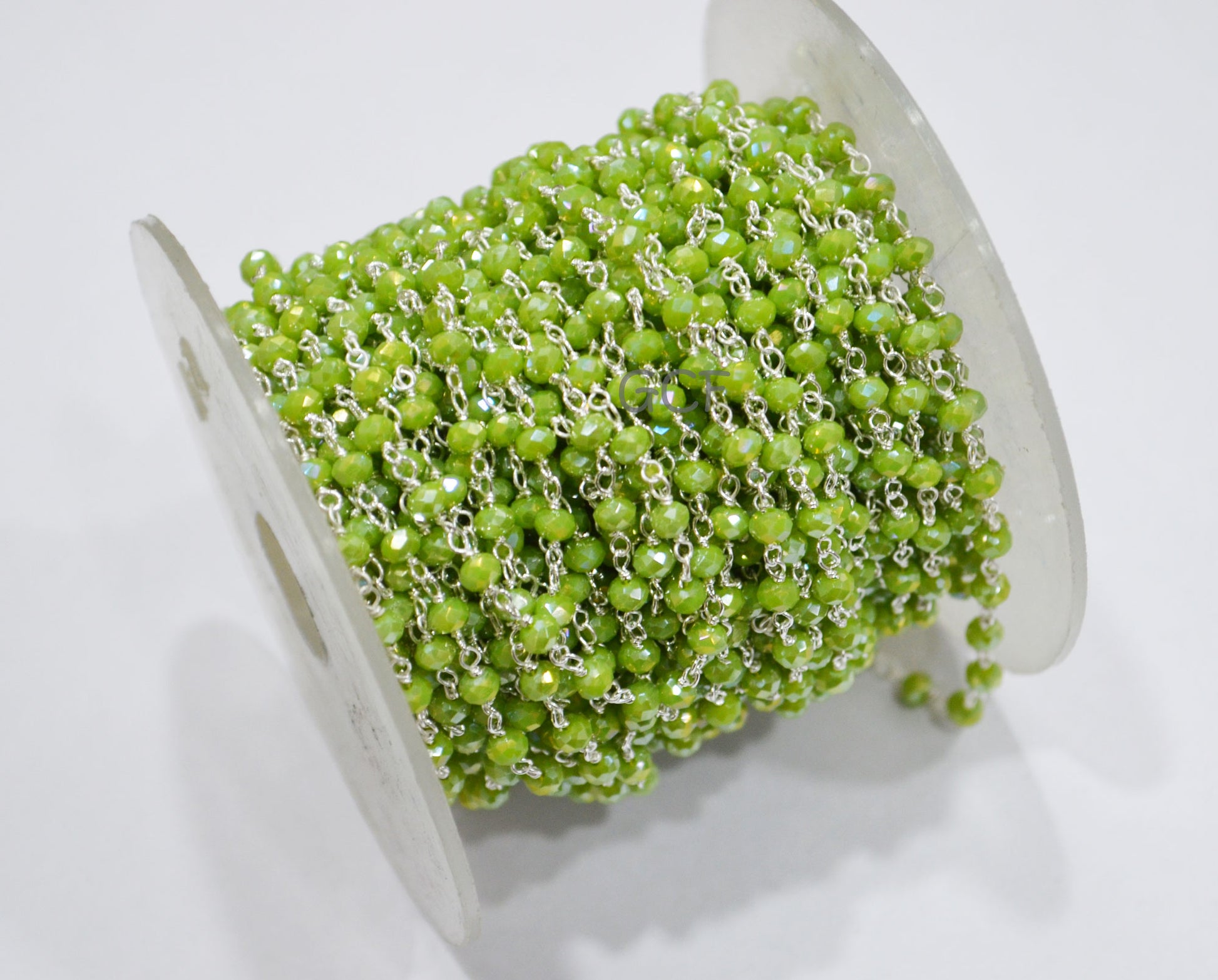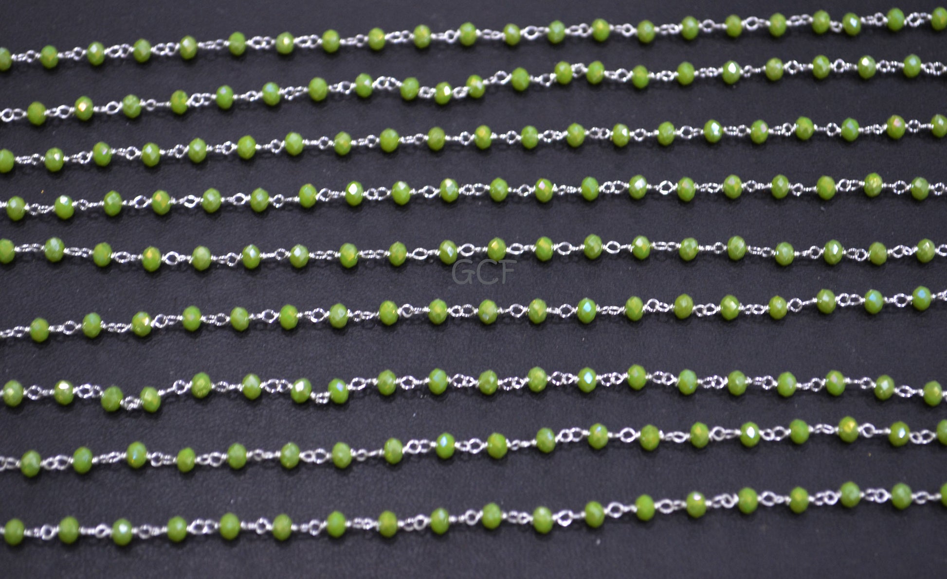 Mystic AB Coated Grossular Green Hydro Glass Faceted Rondelle Rosary Chain ,Green Quartz Wire Wrapped Chain ,Sold By Foot ,3 - 3.50 mm ,6870
