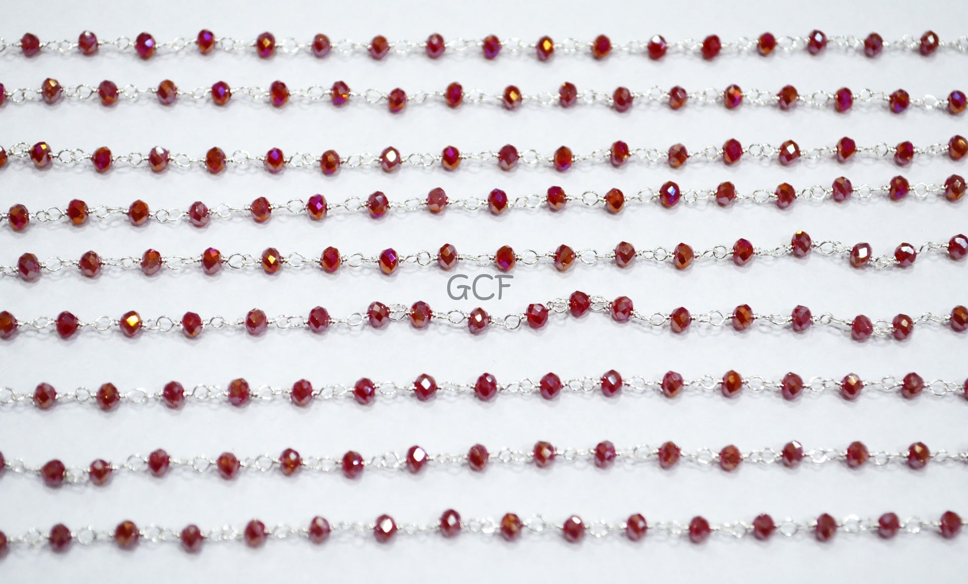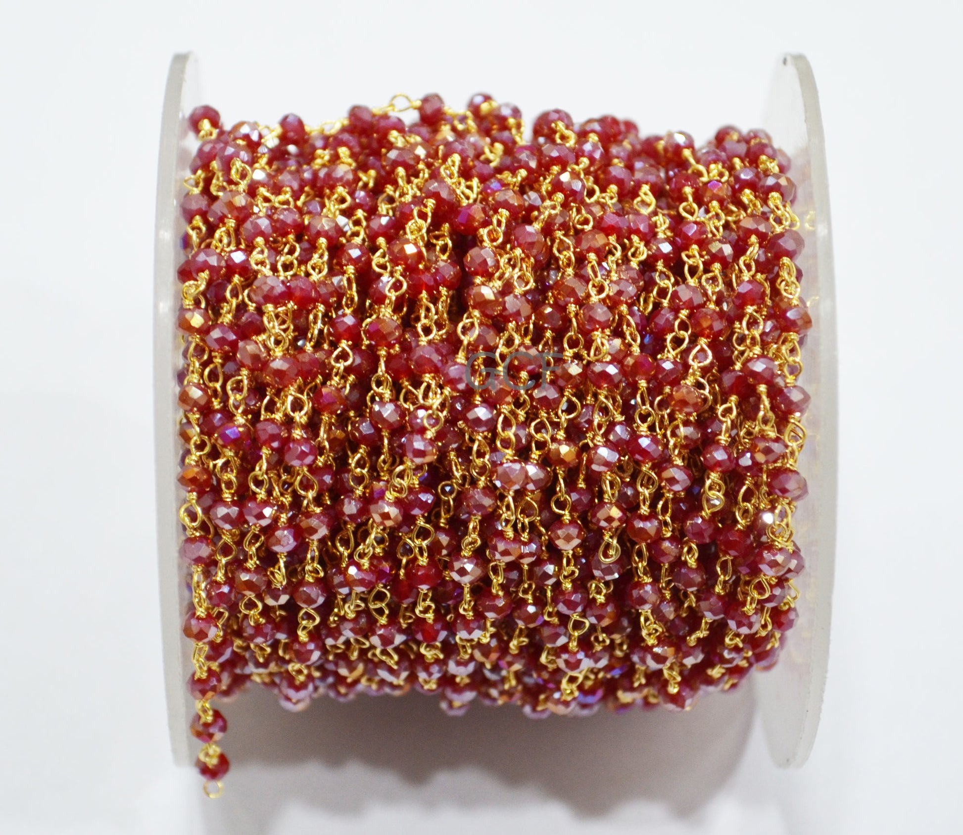 Mystic AB Coated Ruby Hydro Glass Faceted Rondelle Rosary Beaded Chain , Ruby Quartz Wire Wrapped ChainΒ , 3 - 3.50 mm , 6869