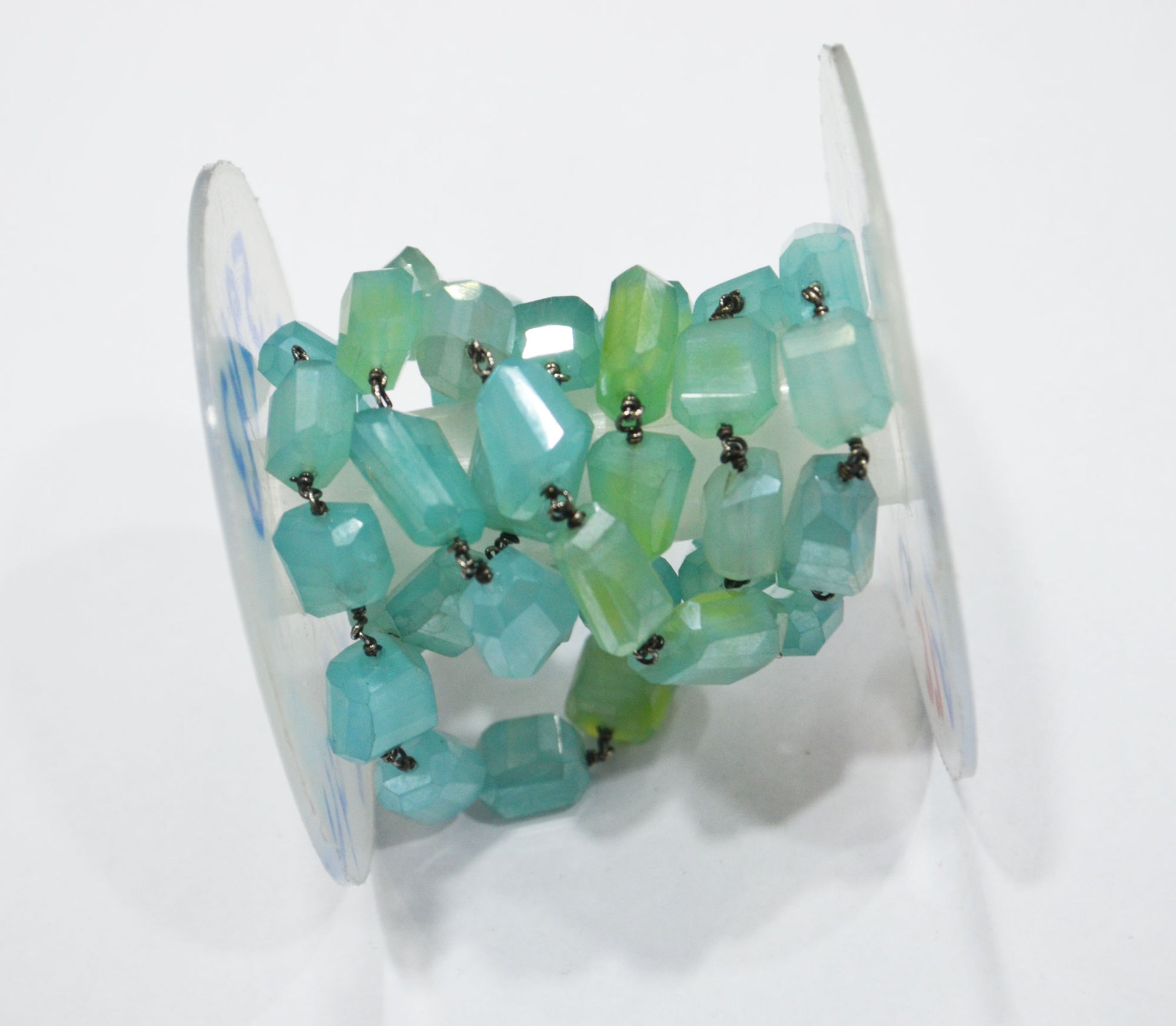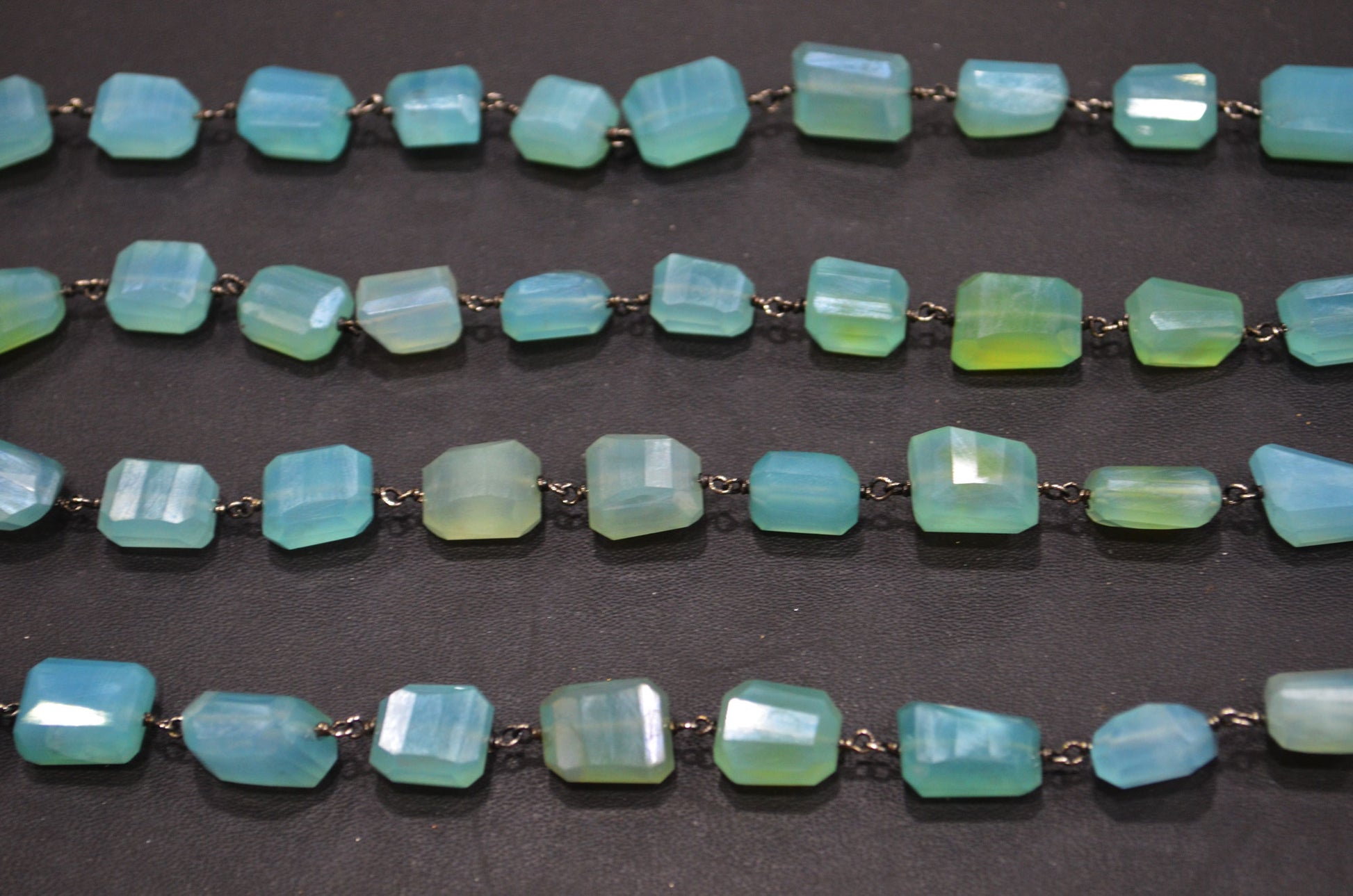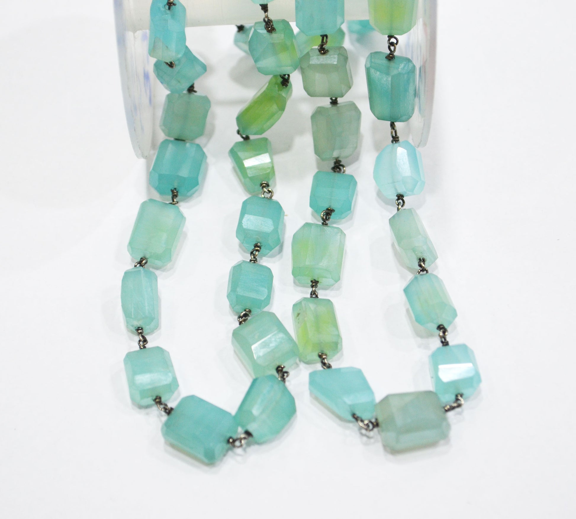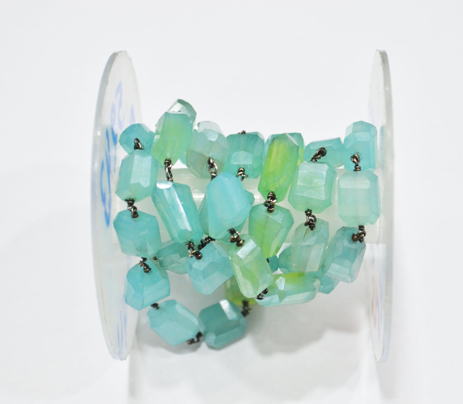 Mystic Aqua Chalcedony Laser Cut Nuggets Shape Rosary Beaded Chain , Mystic Aqua Chalcedony Wire Wrapped Chain , 7 - 12 mm , RB-6362