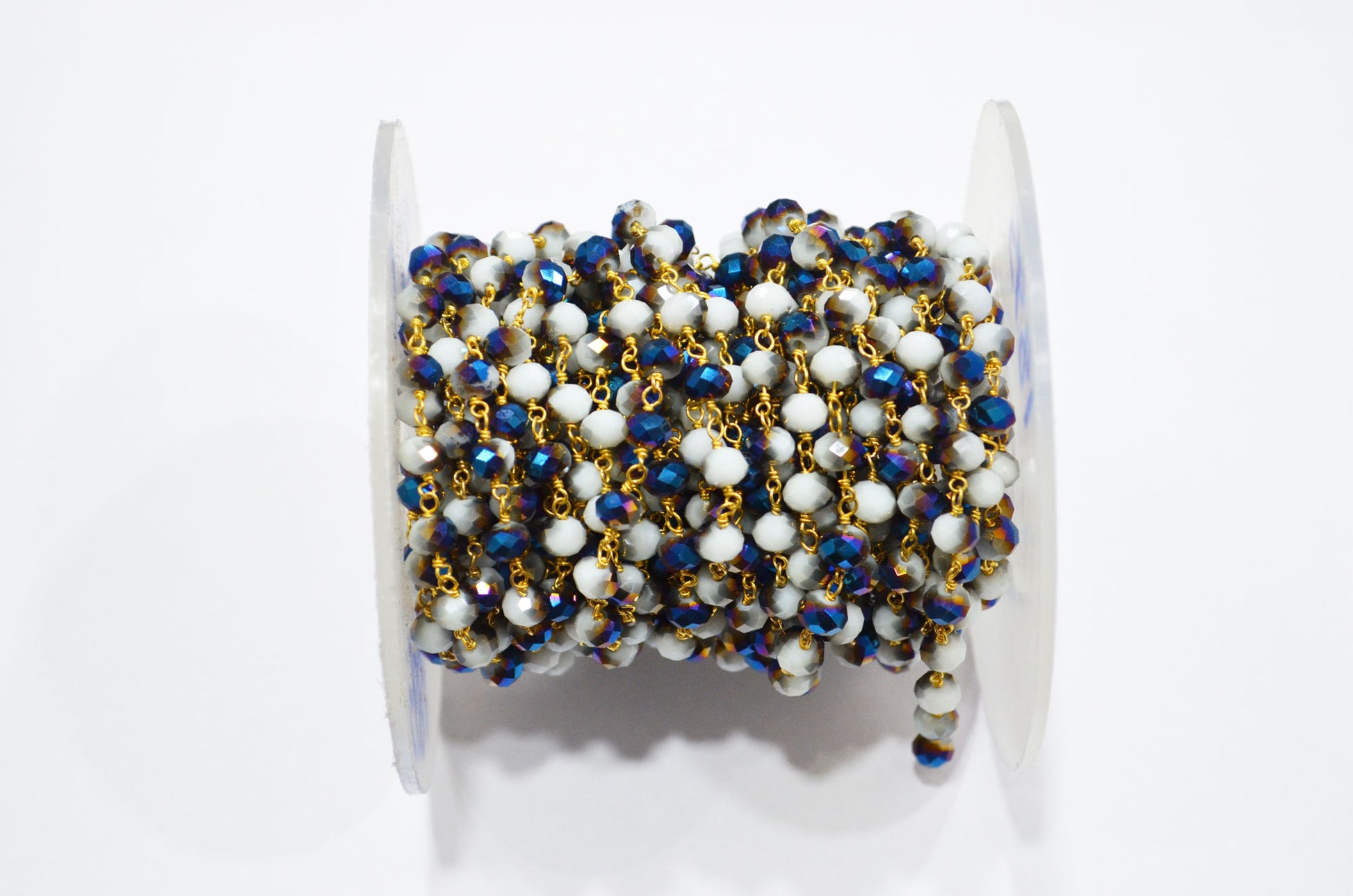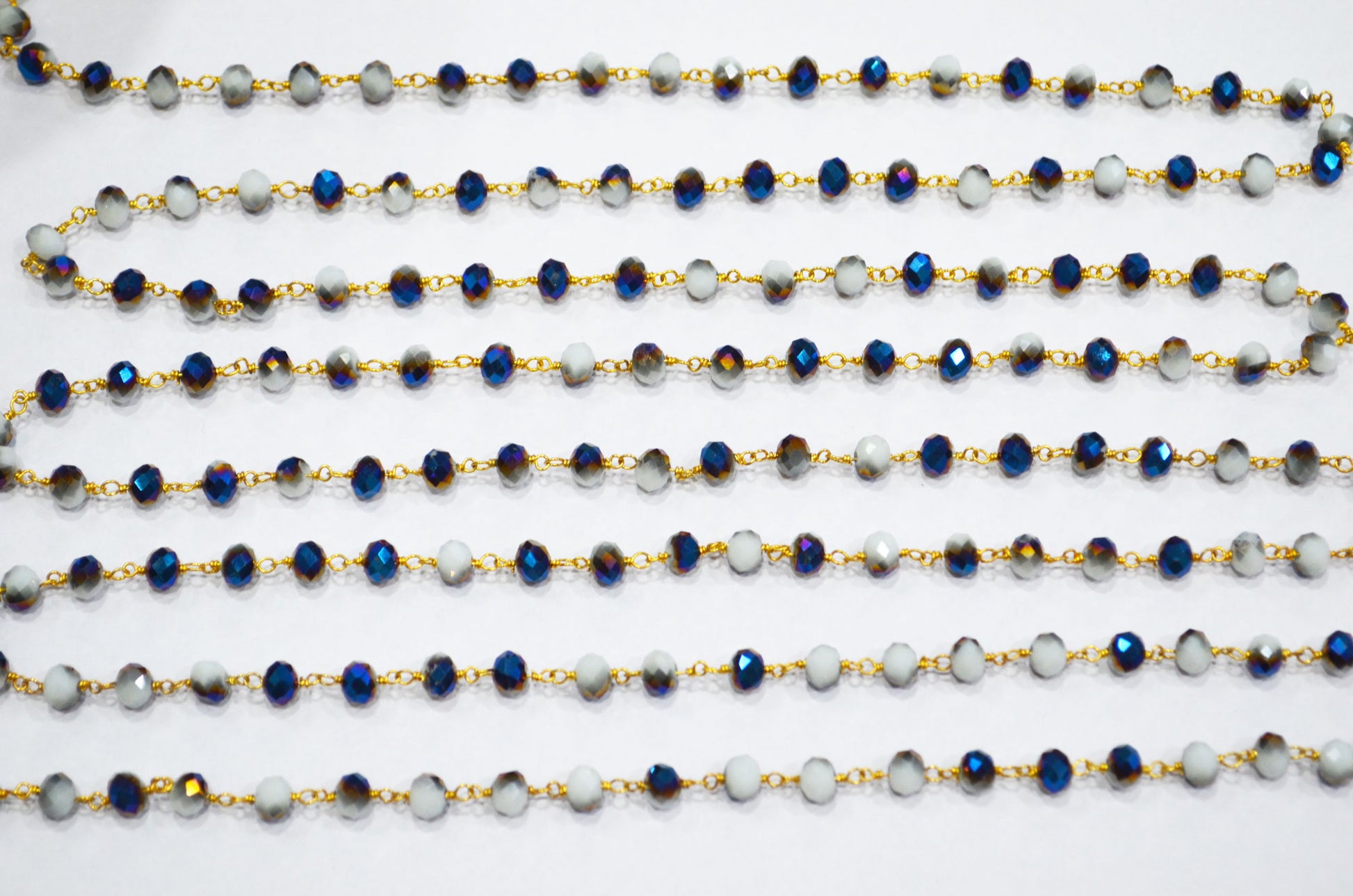 Mystic Blue White Hydro Quartz Rondelle Shape Rosary Beaded Chain , Mystic Blue White Hydro Quartz Faceted Wire Wrapped Chain , 5.50 - 6 mm , RB-5681
