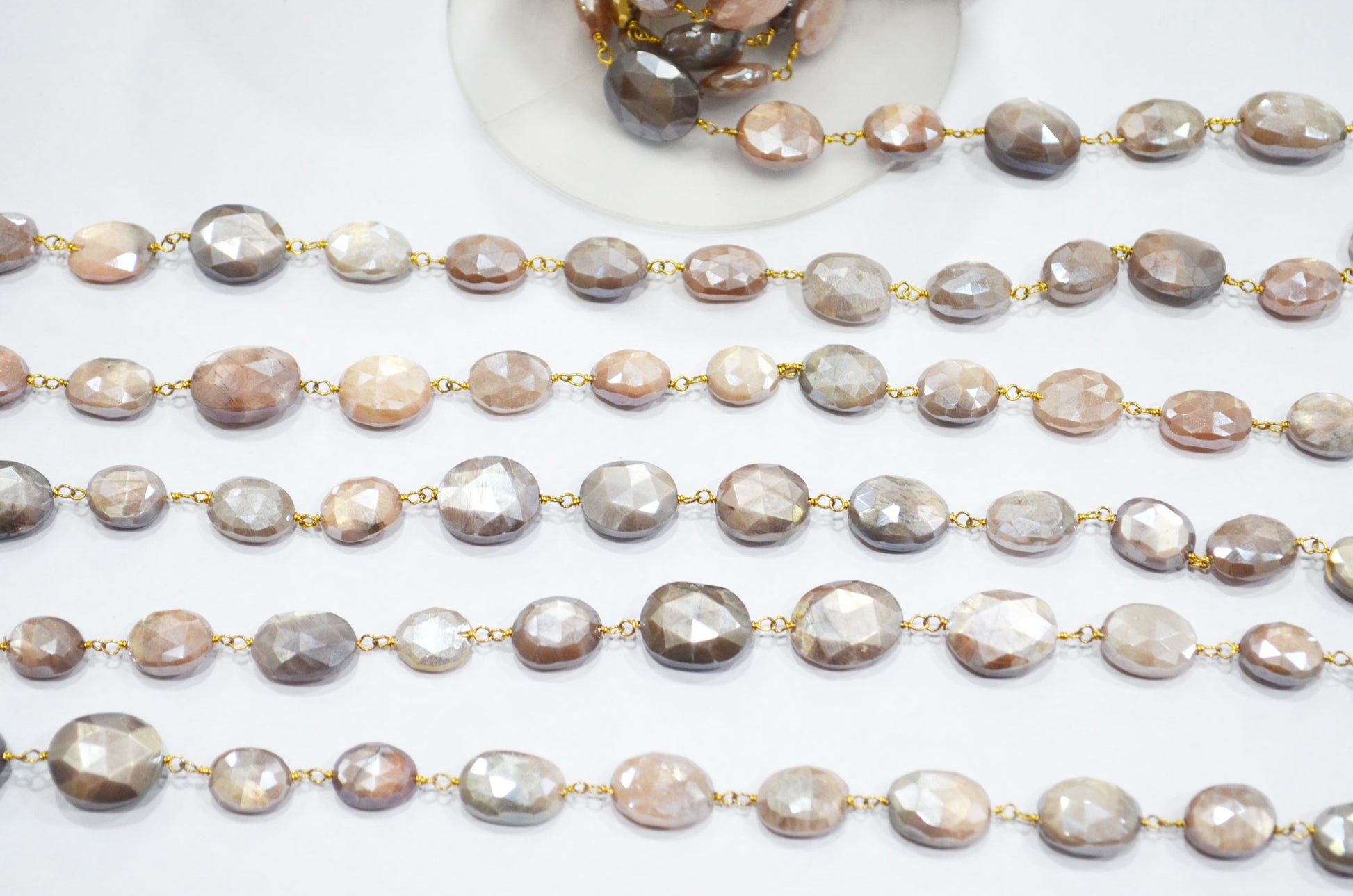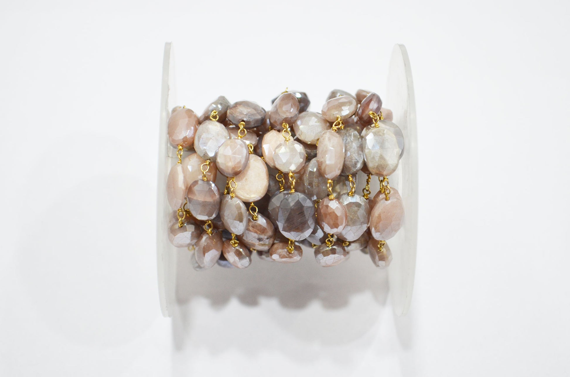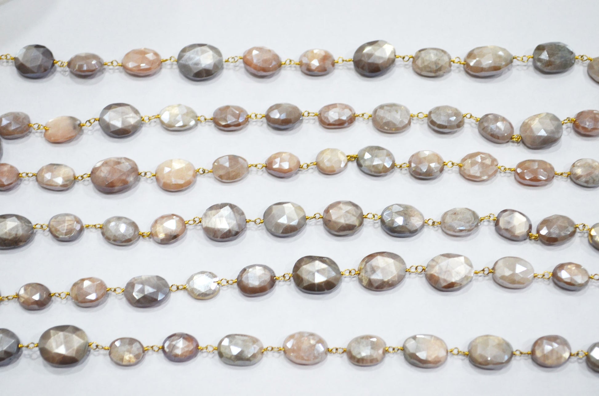 Mystic Chocolate Moonstone Faceted Oval Shape Rosary Beaded Chain , Mystic Chocolate Moonstone Wire Wrapped Chain , 9 - 11 mm , RB-5777