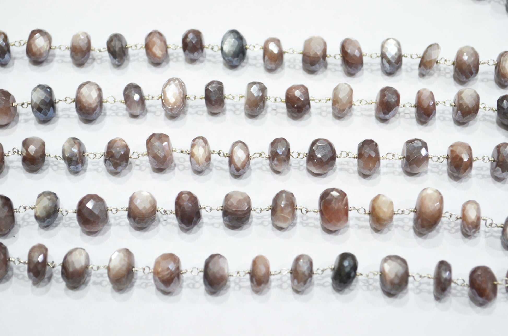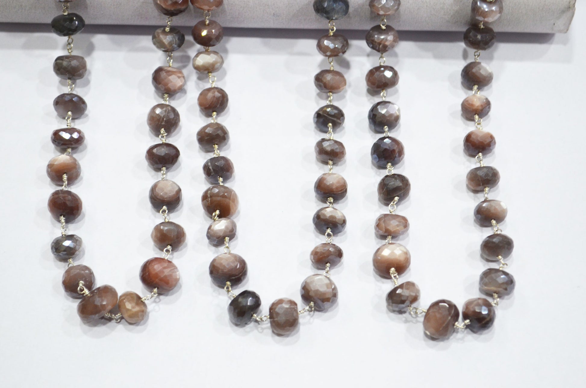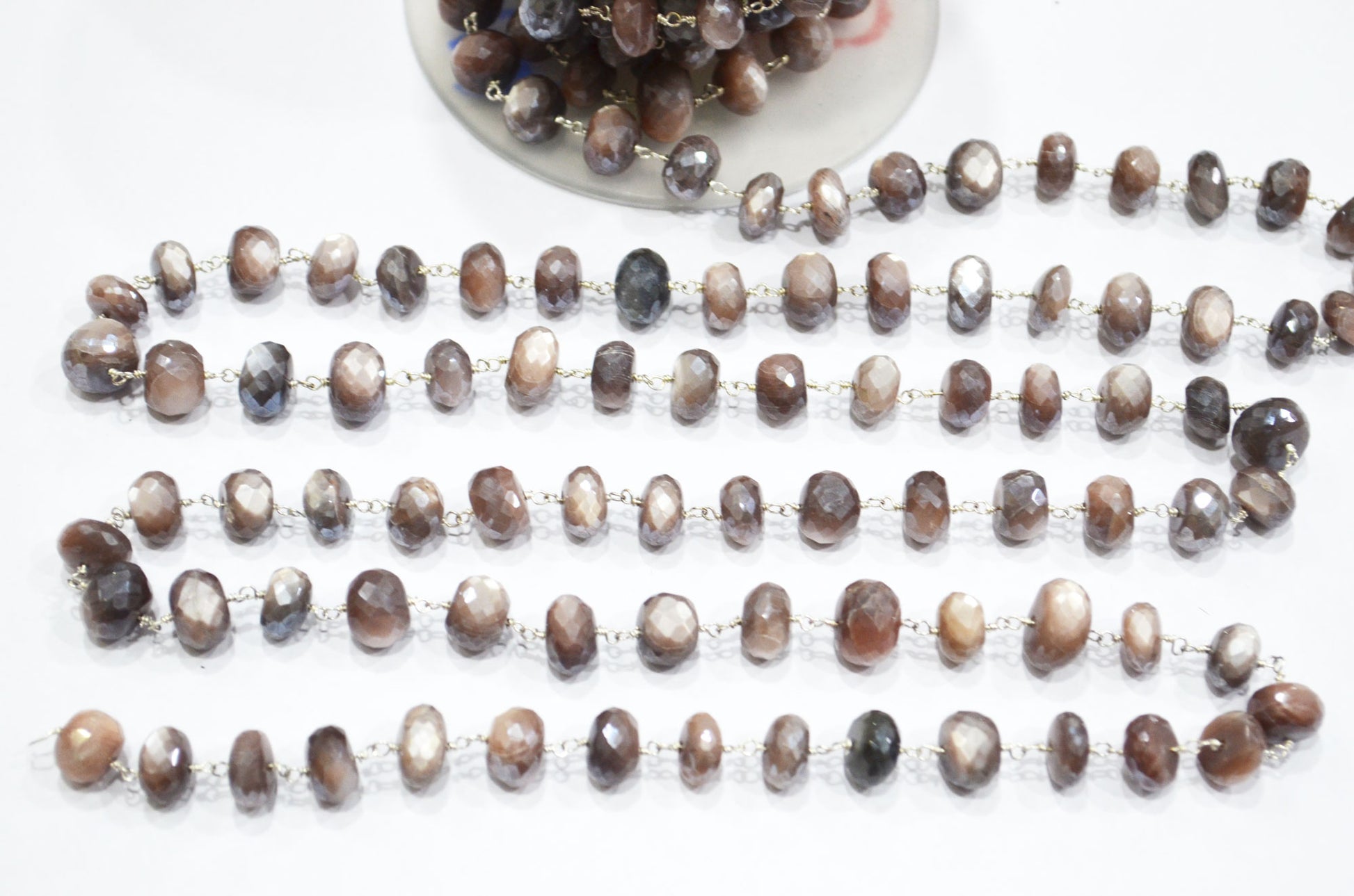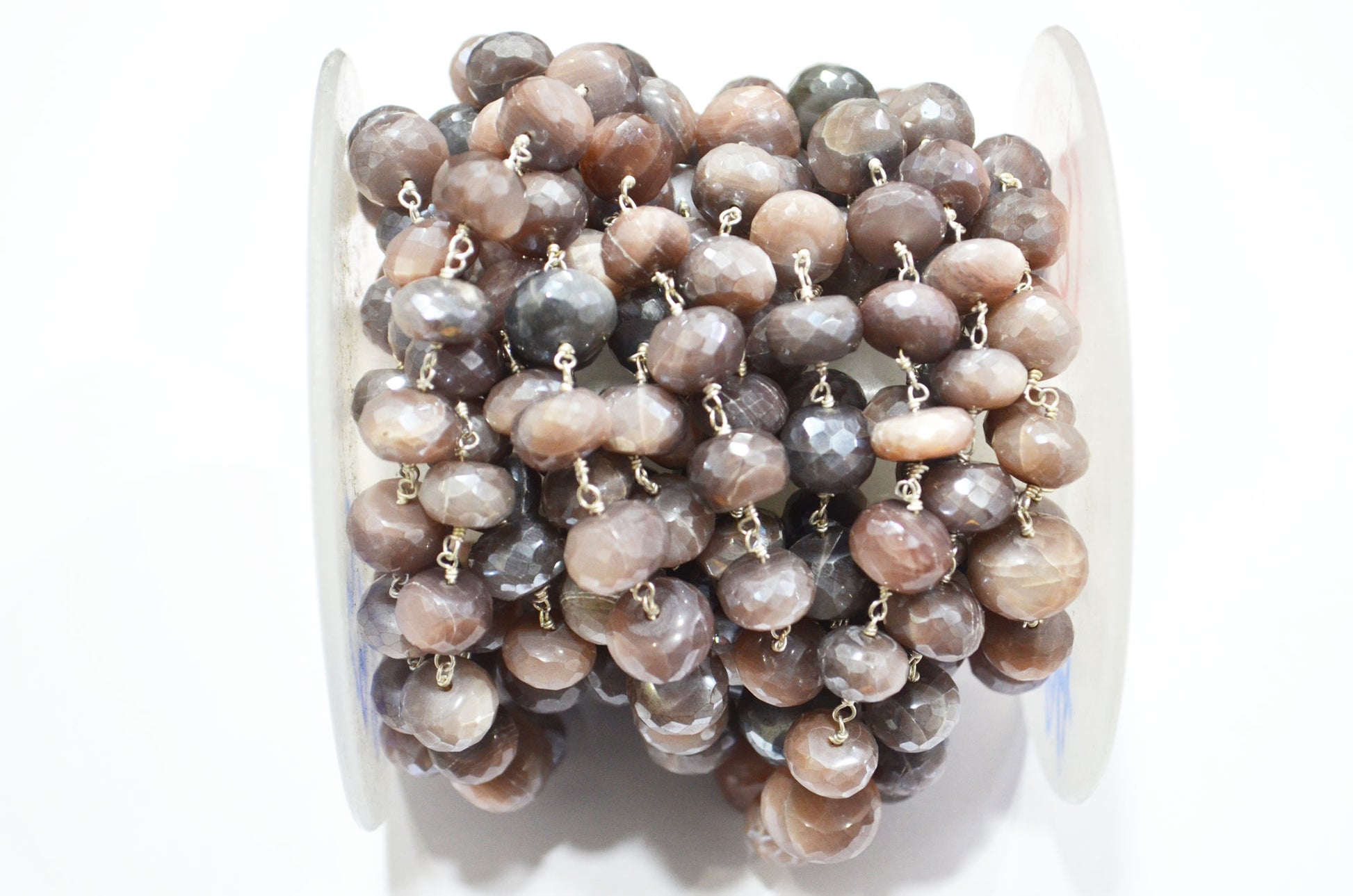 Mystic Chocolate Moonstone Faceted Rondelle Shape Rosary Beaded Chain , Mystic Chocolate Moonstone Wire Wrapped Chain , 9.50 - 10 mm , RB-5994