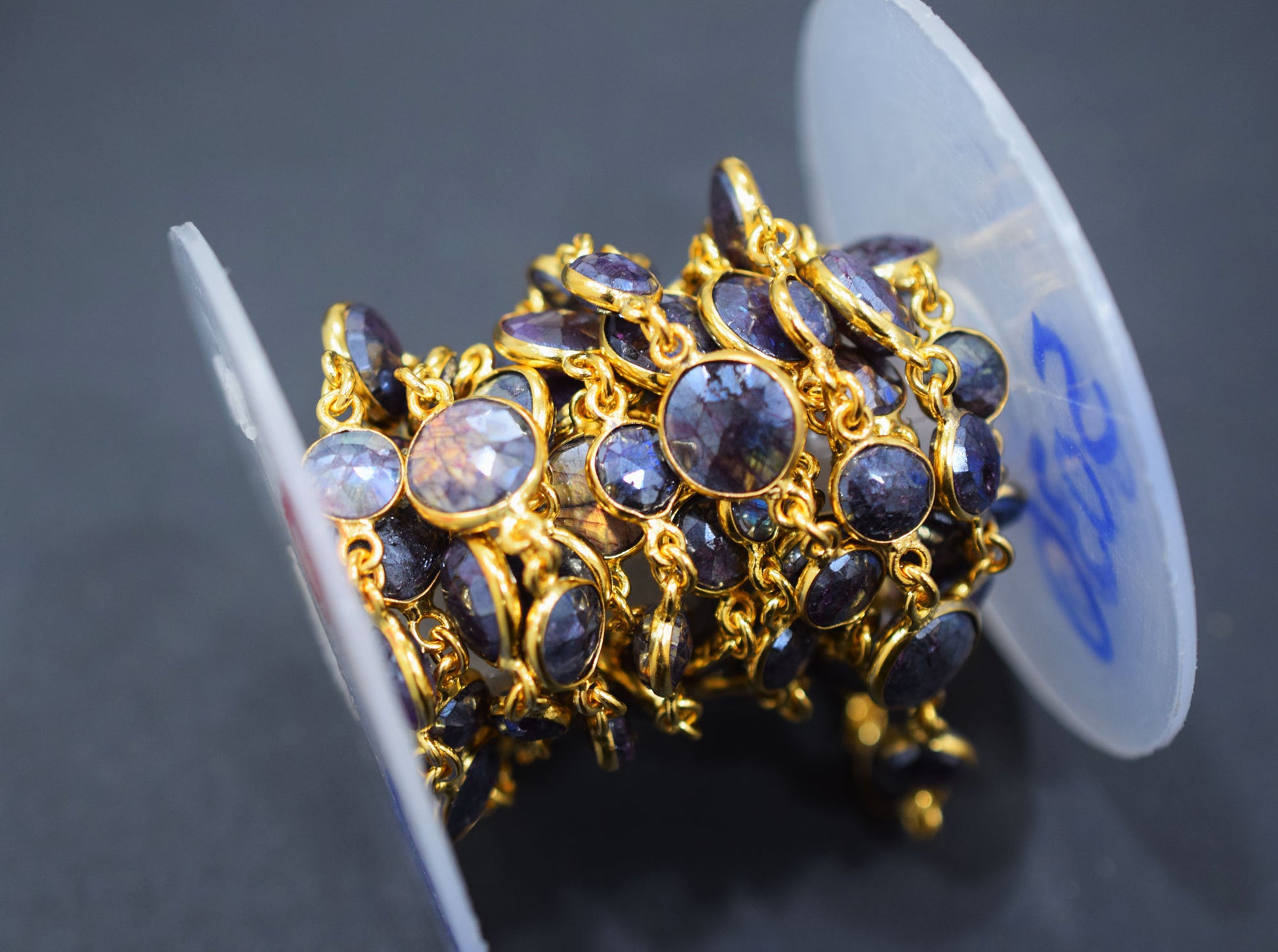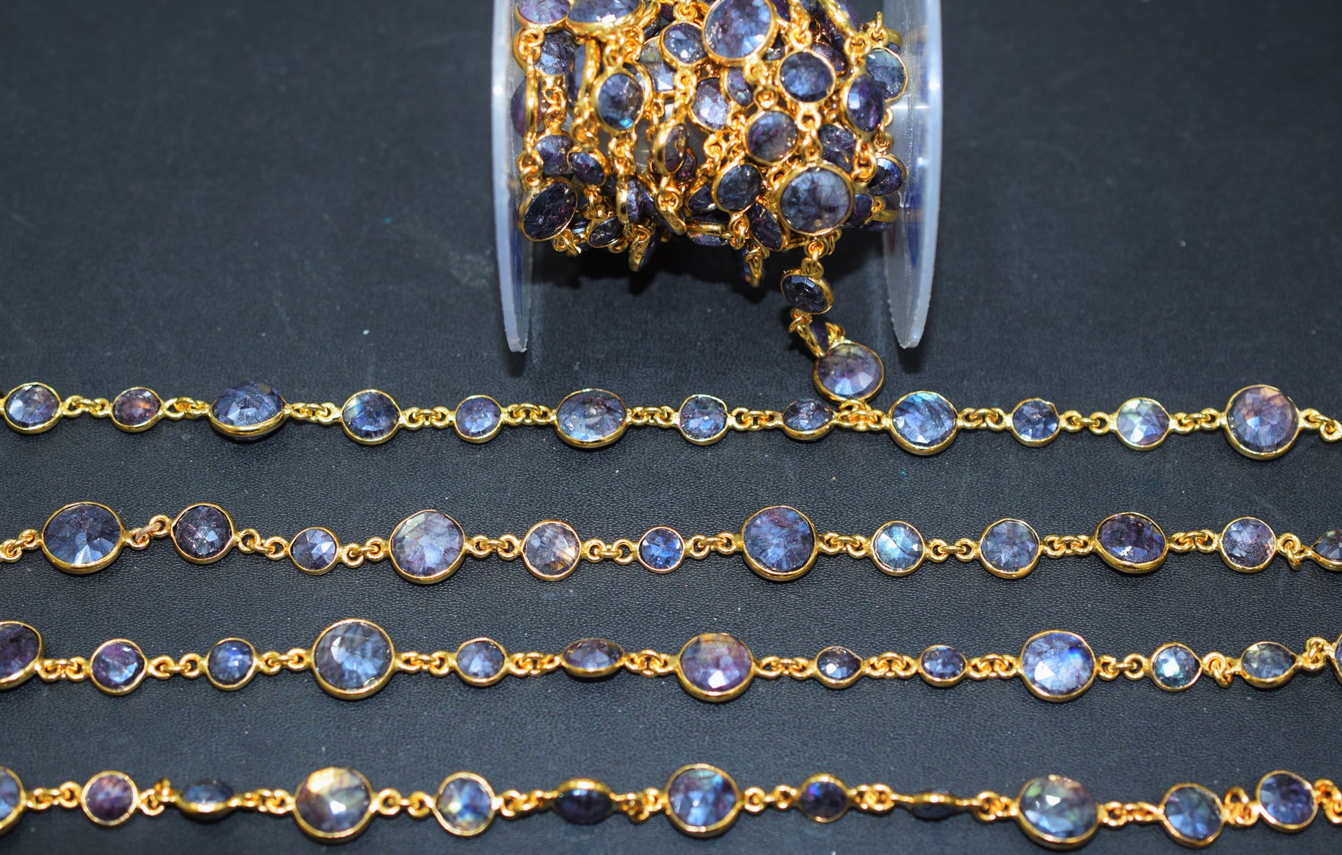 Mystic Coated Purple Labradorite Faceted Coin Shape Connector Chain , Mystic Coated Purple Labradorite Bezel Link Chain , 7 - 11 mm , RB-6582