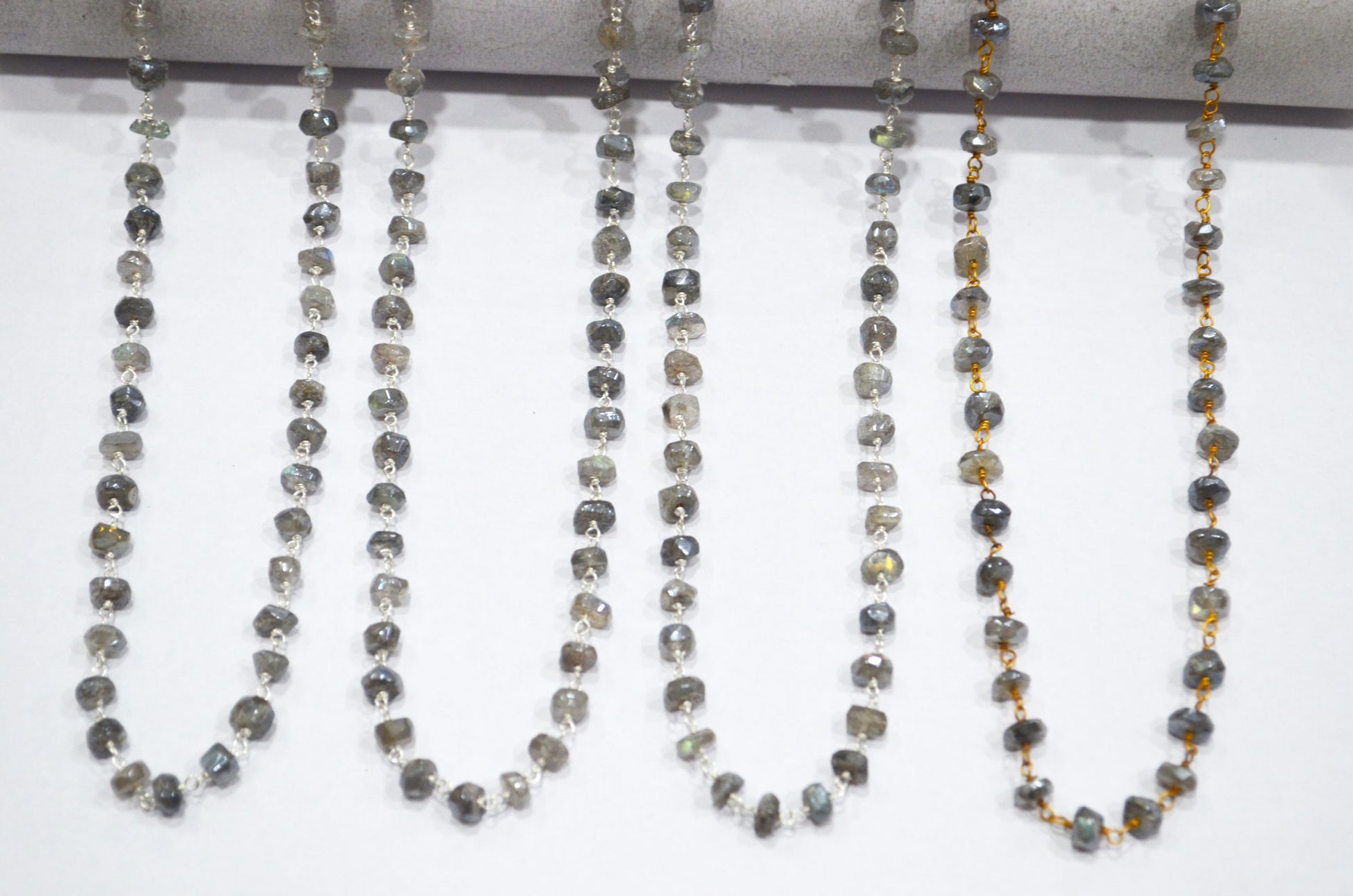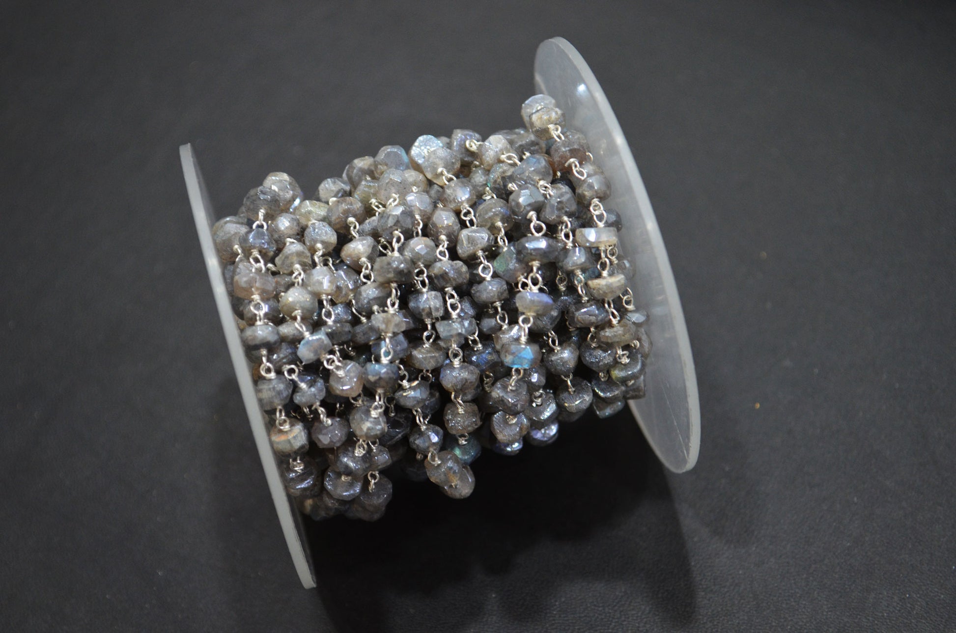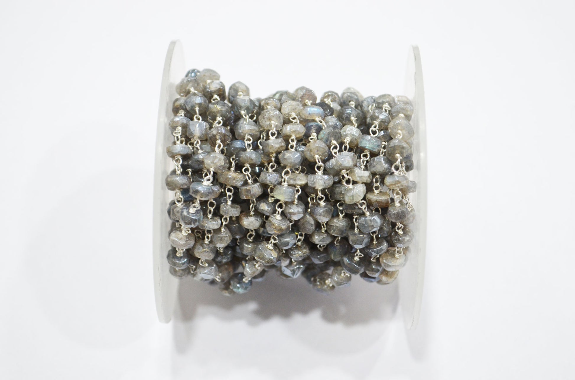 Mystic Labradorite Rondelle Shape Rosary Beaded Chain , Labradorite AB Silver Coated Faceted Wire Wrapped Chain , 5 - 5.50 mm , RB-5785