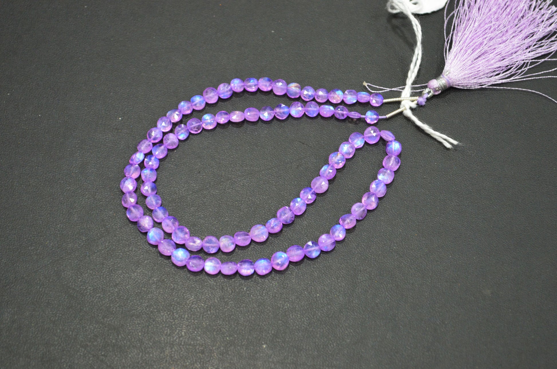 Mystic Lavender Coated Rainbow Moonstone Coin Shape Beads , Mystic Lavender Moonstone Faceted Beads , 16 Inches , 4 - 5 mm , 32371