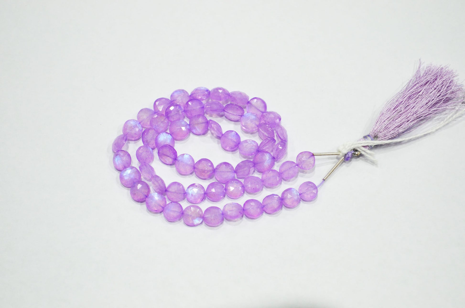 Mystic Lavender Coated Rainbow Moonstone Coin Shape Beads , Mystic Lavender Moonstone Faceted Beads , 16 Inches , 7 - 7.25 mm , 32370
