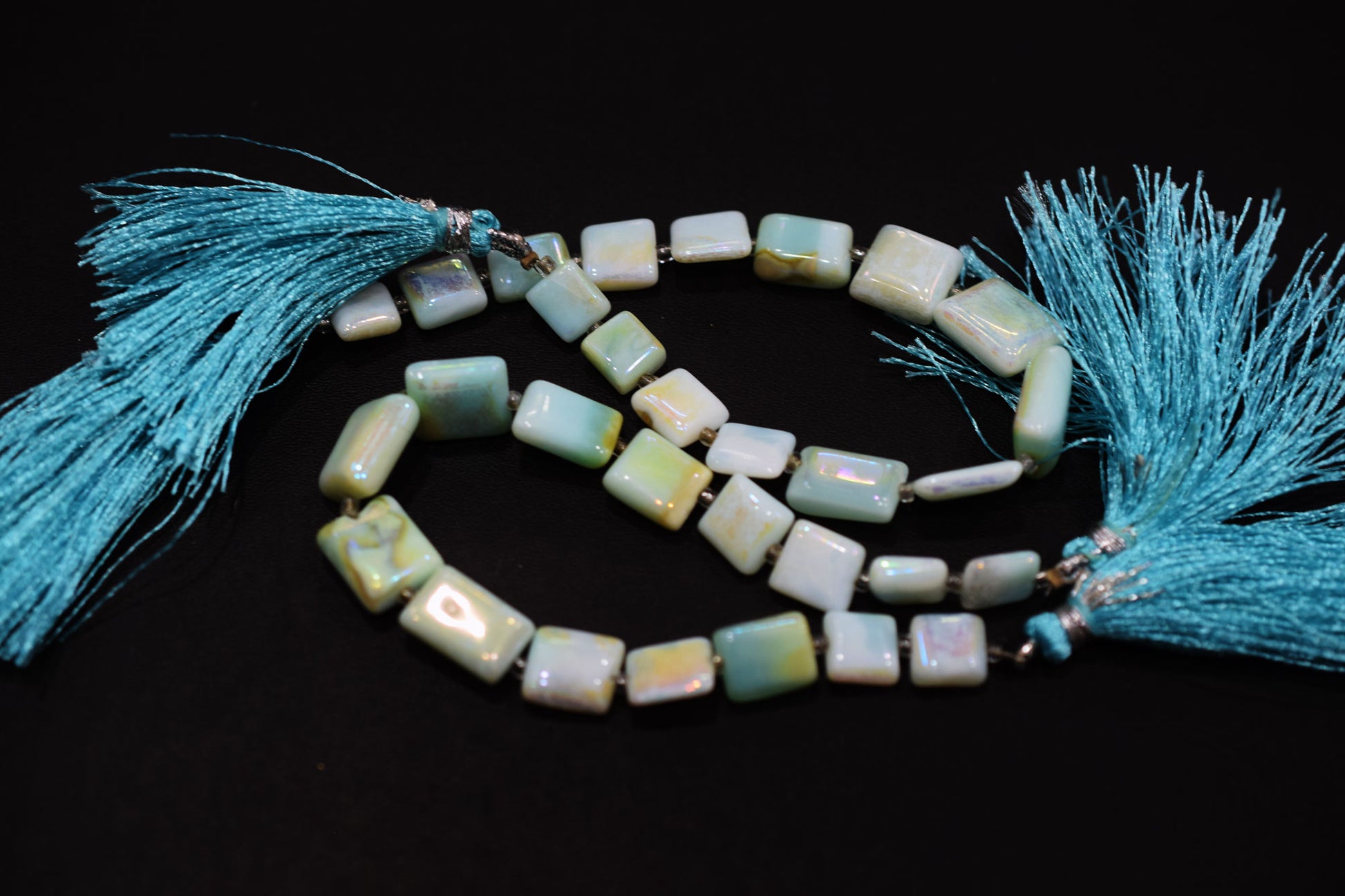Mystic Metallic Coated Peruvian Blue Opal smooth Beads , Metallic Coated Peruvian Blue Opal Uneven Square Shape Beads , Sold By Strand , 6x7 - 11x15 mm , 7" , 20376