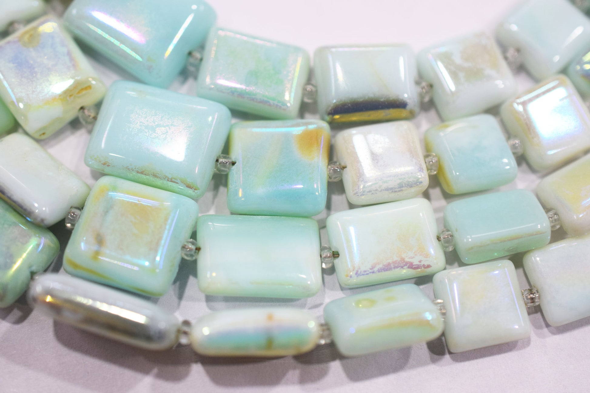 Mystic Metallic Coated Peruvian Blue Opal smooth Beads , Metallic Coated Peruvian Blue Opal Uneven Square Shape Beads , Sold By Strand , 7x8 - 12x15 mm , 7" , 20378