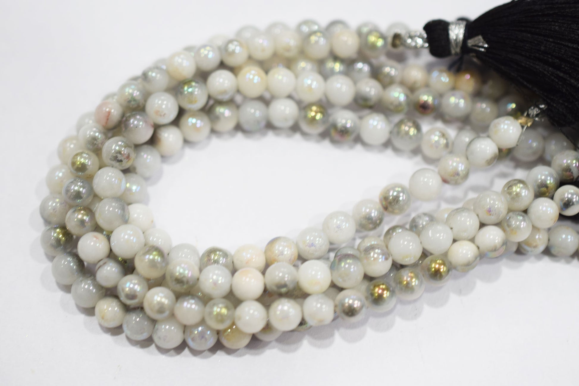 Mystic Metallic Coated White Agate smooth Beads , White Agate Metallic Coated Round Shape Beads , Sold By Strand , 5 mm , 7" , Β 20380