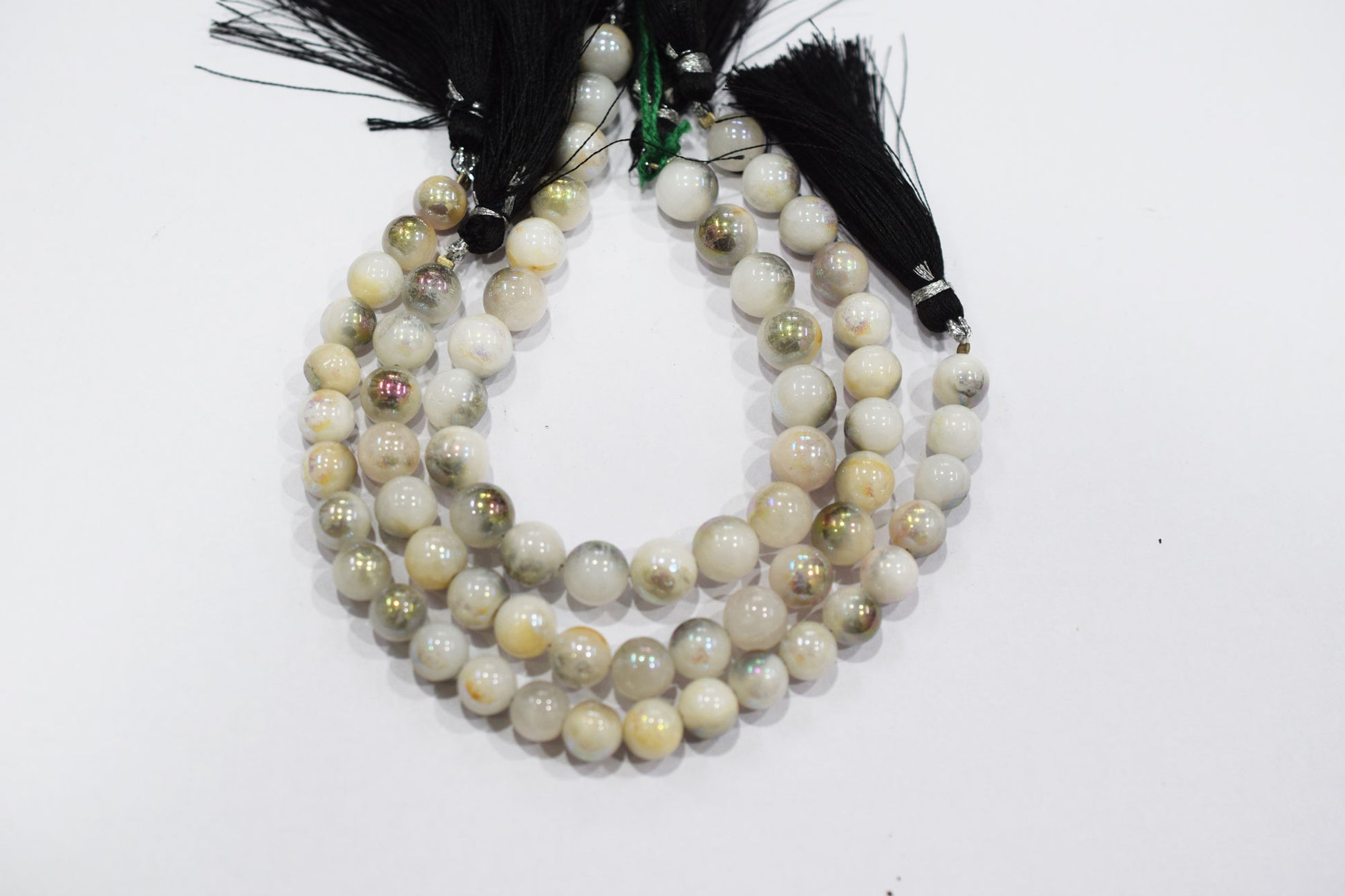 Mystic Metallic Coated White Agate smooth Beads , White Agate Metallic Coated Round Shape Beads , Sold By Strand , 7.50 - 8 mm , 7" , 20383