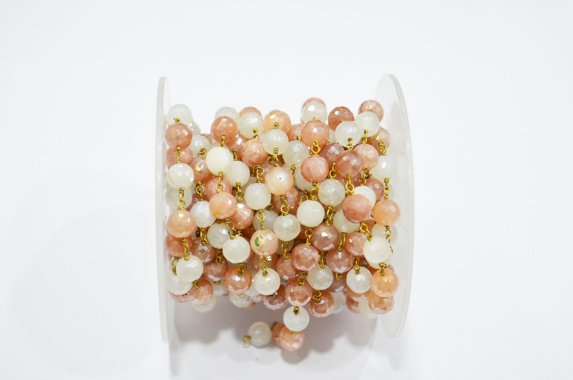 Mystic Multi Moonstone Faceted Round Shape Rosary Beaded Chain , Mystic Multi Moonstone Wire Wrapped Chain , 6.75 - 7.25 mm , RB-5817