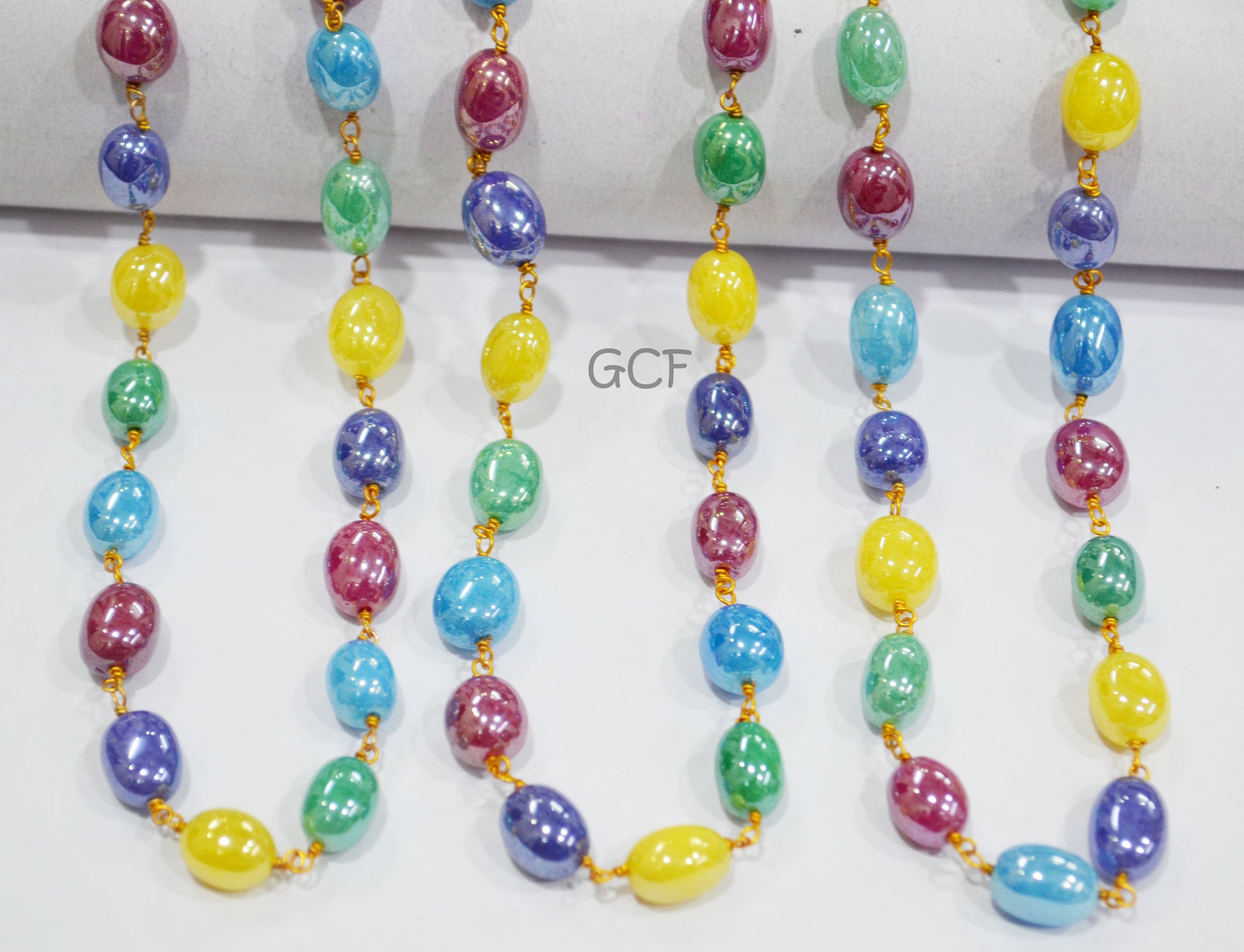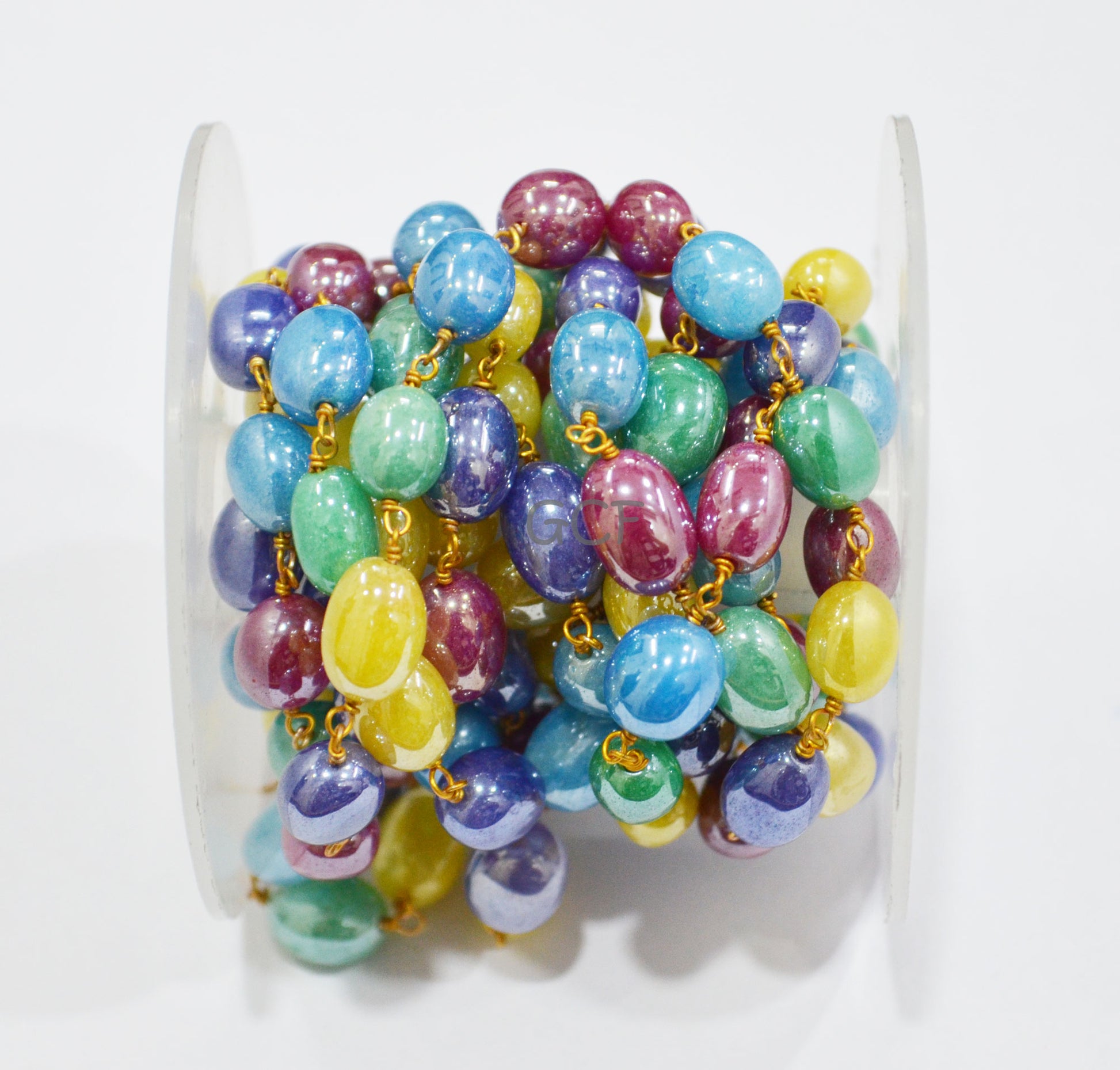 Mystic Multi Natural Quartz Oval Shape Rosary Chain , Dyed Natural Quartz Smooth Wire Wrapped ChainΒ  , 8x9 - 9x12 mm , 7004