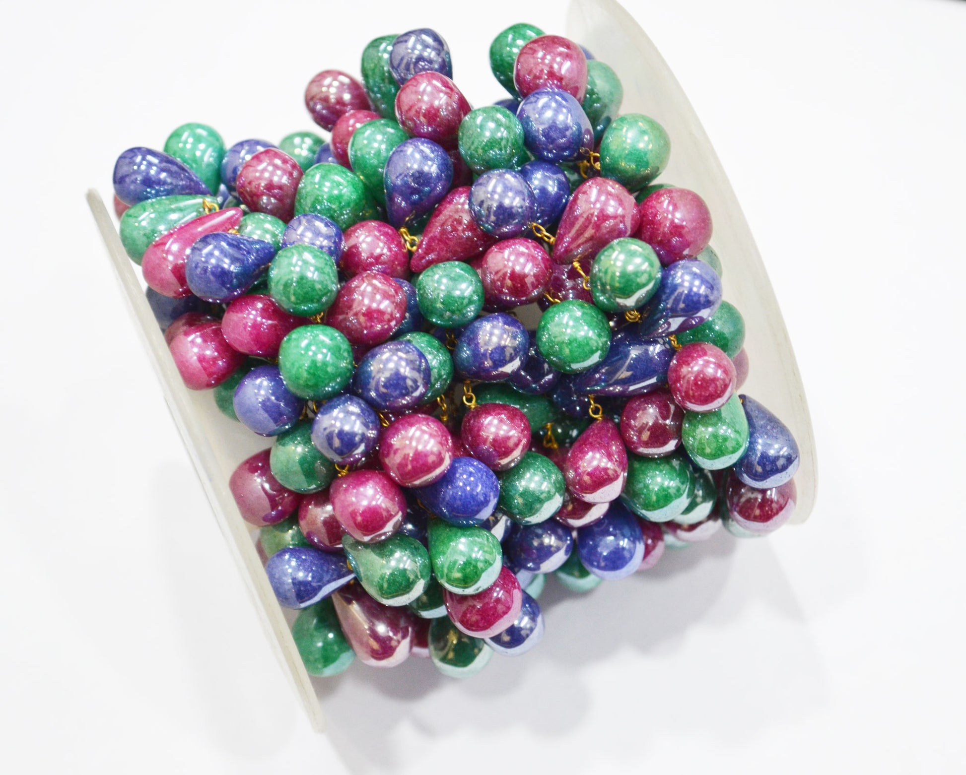 Mystic Multi Precious Quartz Tear Drops Shape Rosary Beaded Chain , 9x15 - 10x17 mm , RB-7415