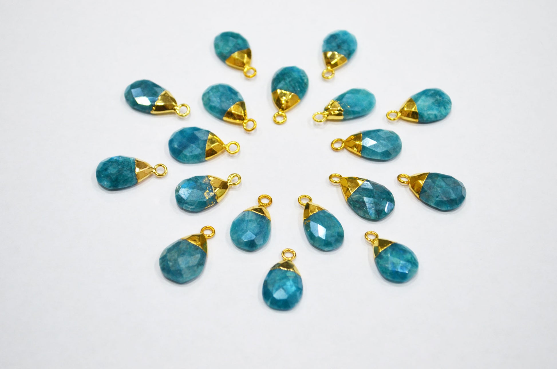 Mystic Ocean Green Rainbow Moonstone Electroplated Pear Shape Pendant Β , Mystic Ocean Green Rainbow Moonstone Faceted Connector Charm , Sold By Piece , 9x16 - 11x18 mm , RB-7313